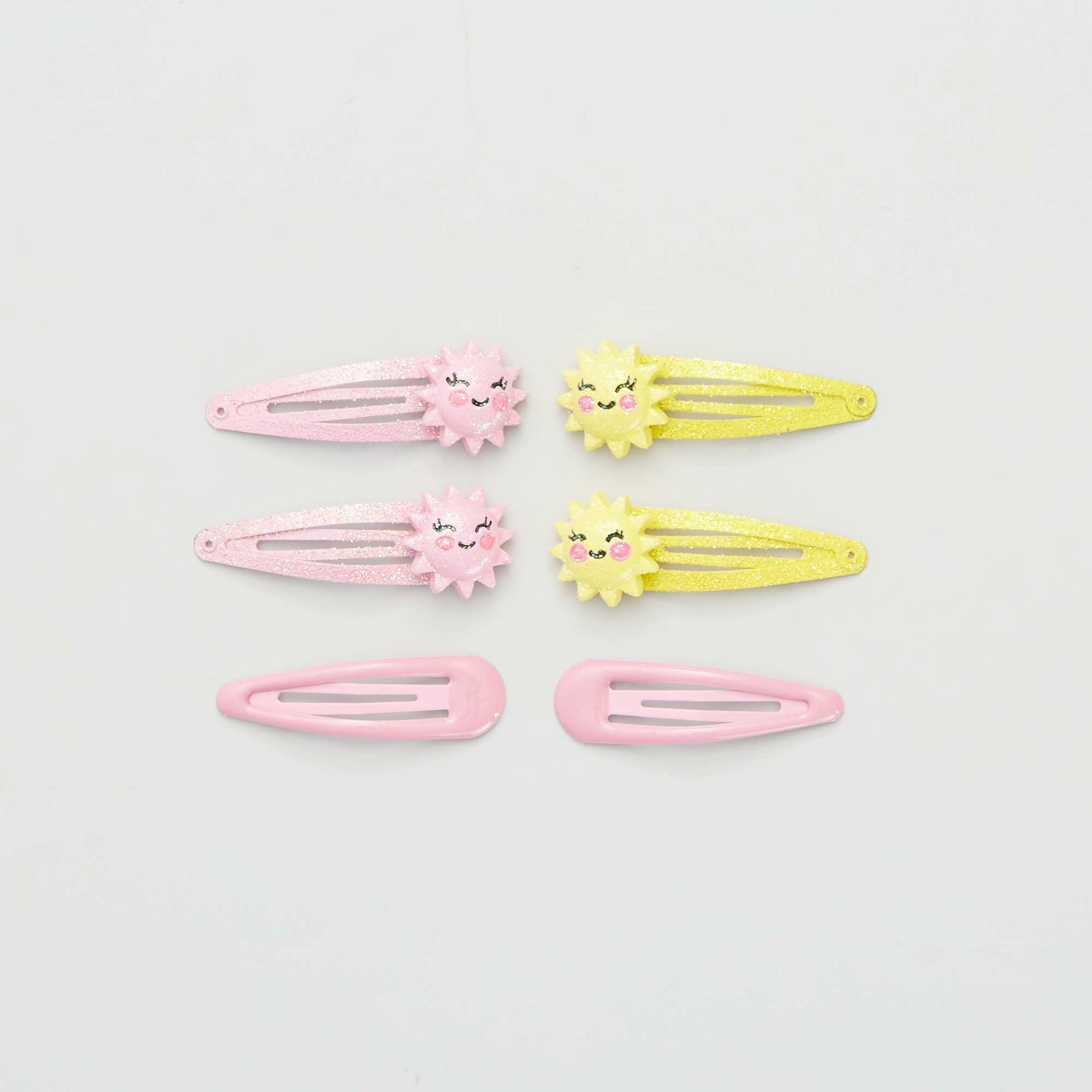 De jolies pinces pour accessoiriser le look de votre enfant. - 6 pinces clic clac - 4 pinces brillantes - 2 pinces unies