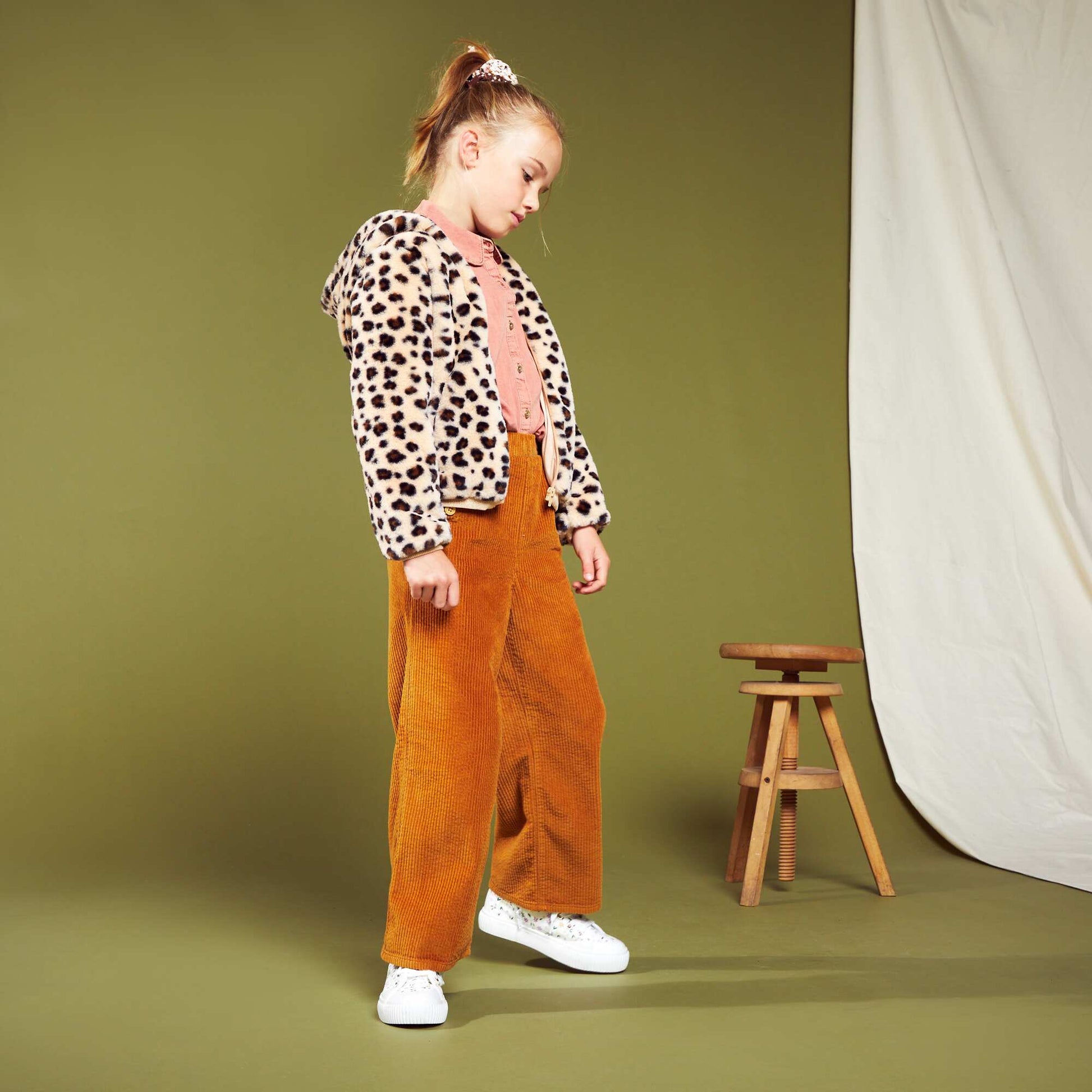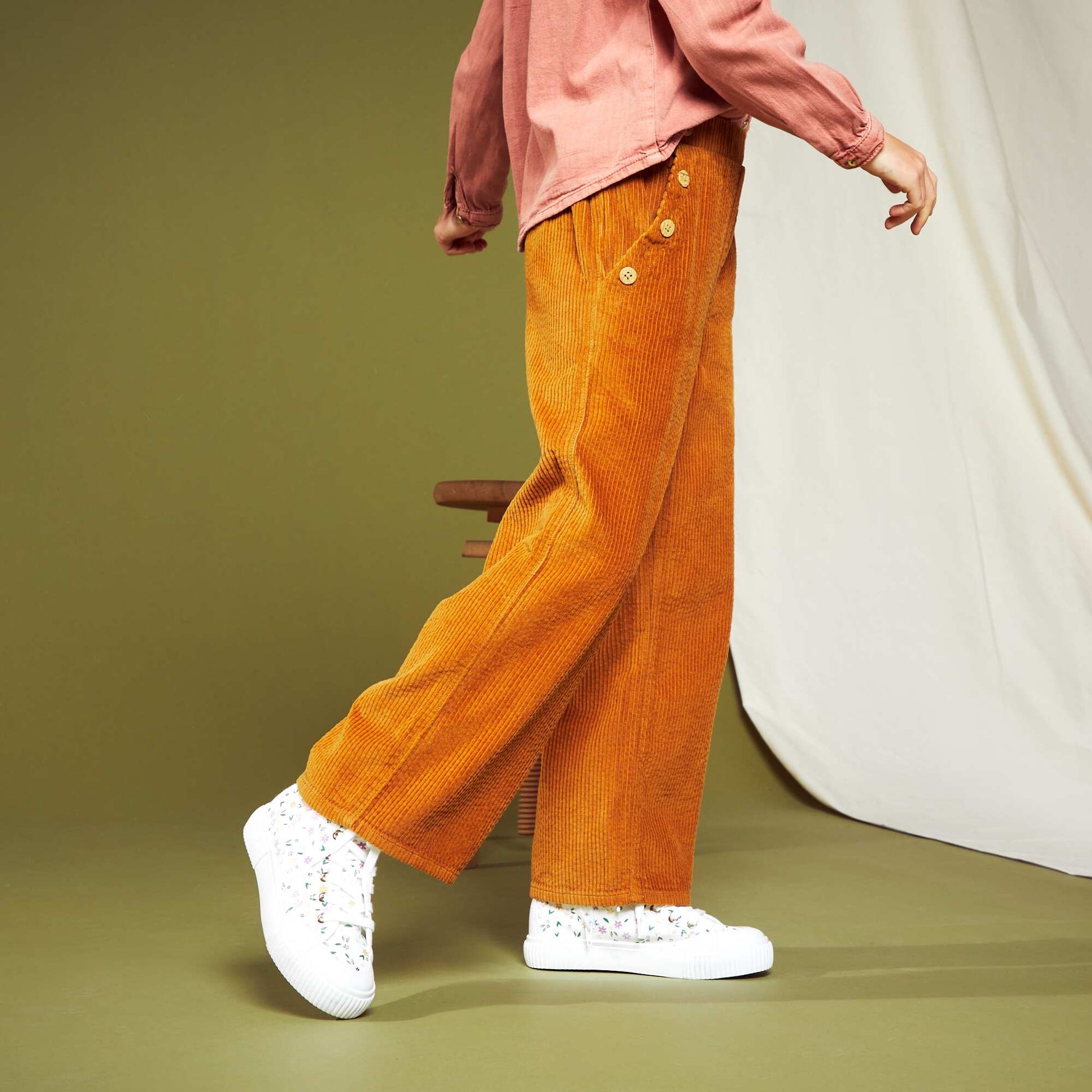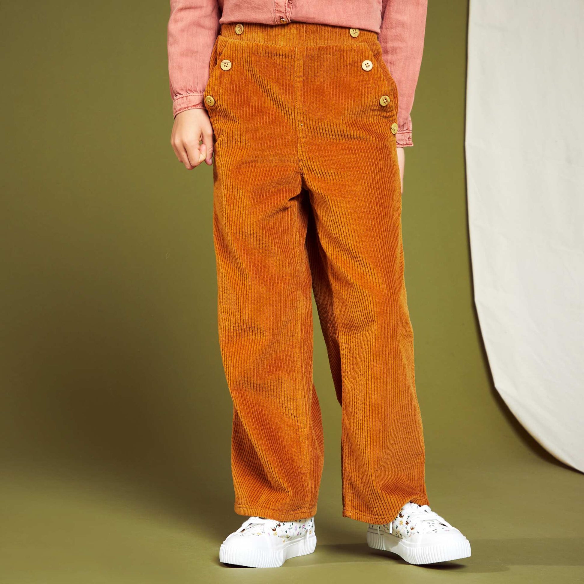 Pour un style chic et l gant optez pour votre petite fille ce joli pantalon en velours ! - Pantalon en velours c tel - Coupe large - Taille lastiqu e - Boutons contrastants devant - 2 poches devant - Couleur unie