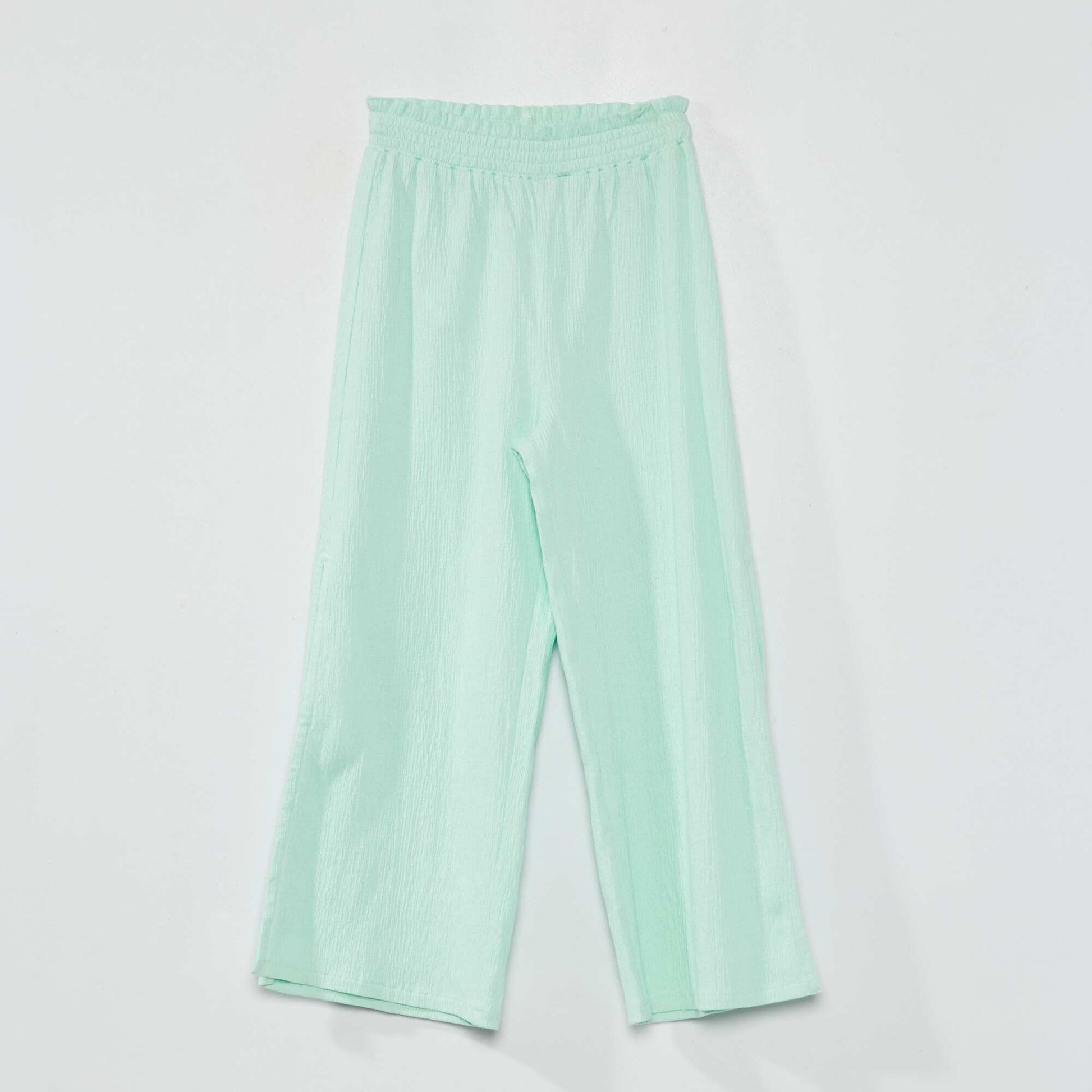 Pantalon large en maille gaufr e avec fentes Vert menthe