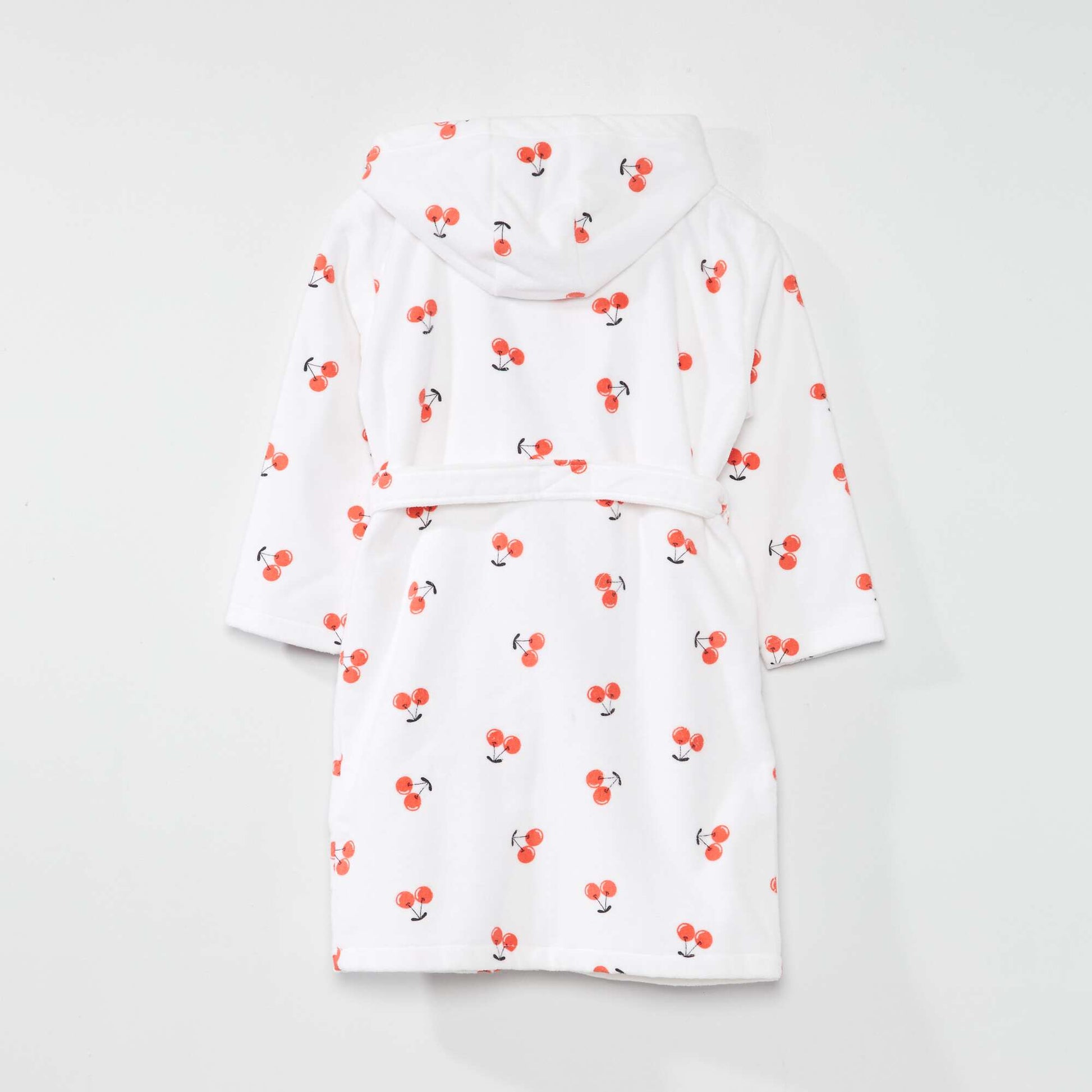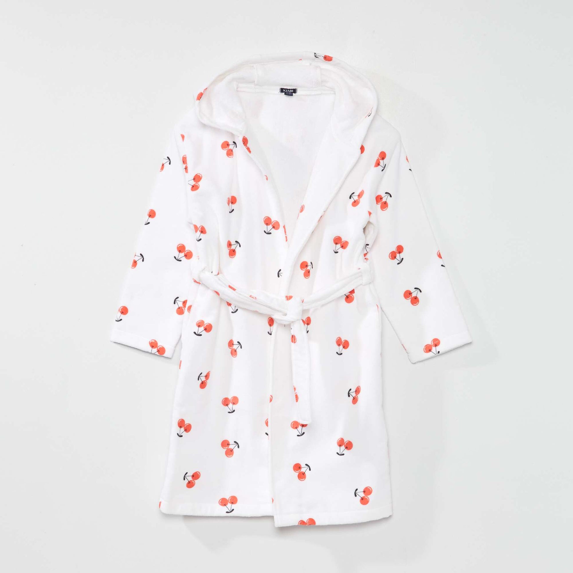 Un peignoir de bain avec des oiseaux imprim s dessus ! - Peignoir ponge 'cerises' - Capuche - Ceinture nouer sous passant - Motif 'Cerises' all over