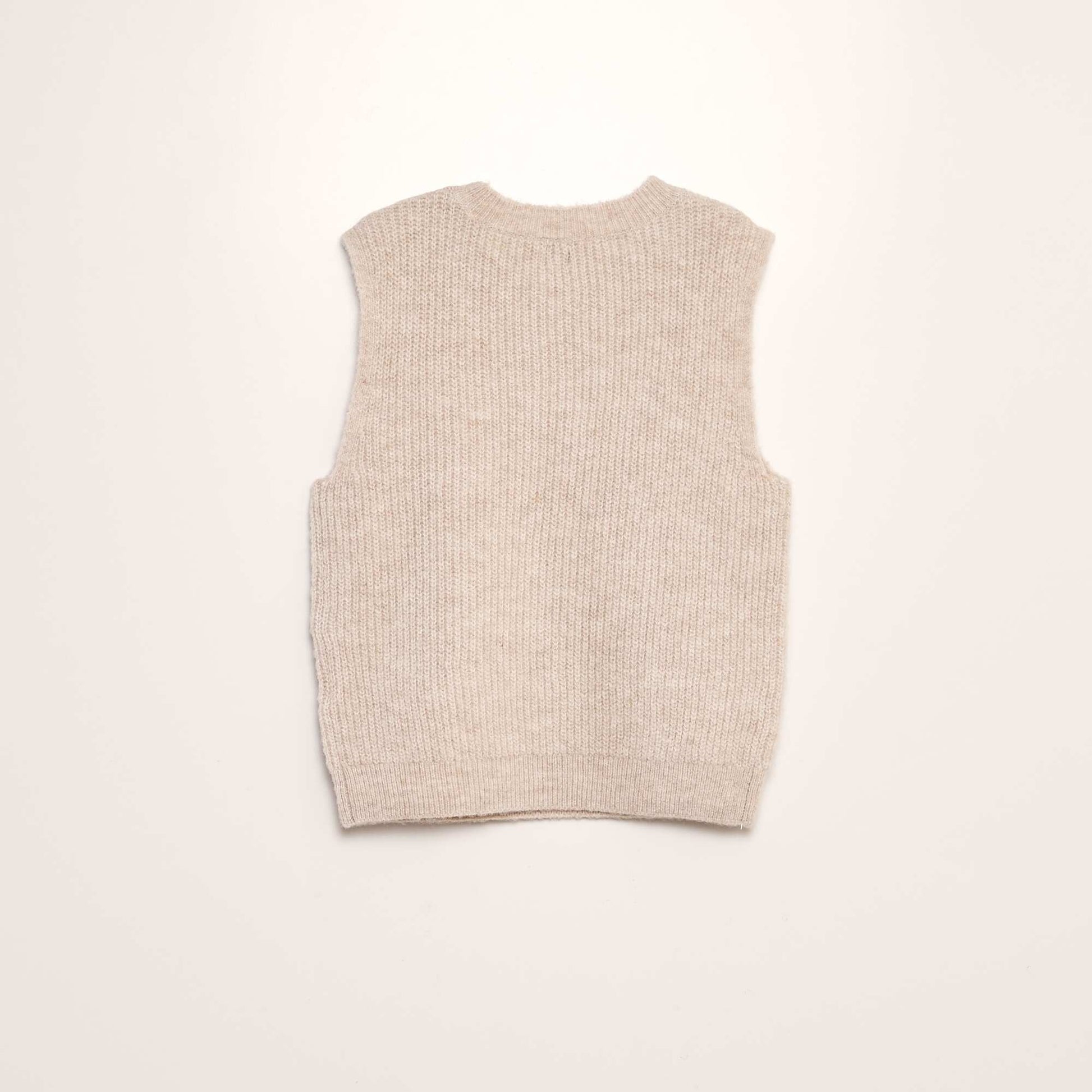 Ce pull sera id al pour la mi-saison ! - Pull en maille - Col rond - Sans manches - Finitions bord-c tes - Couleur unie - Ajour devant