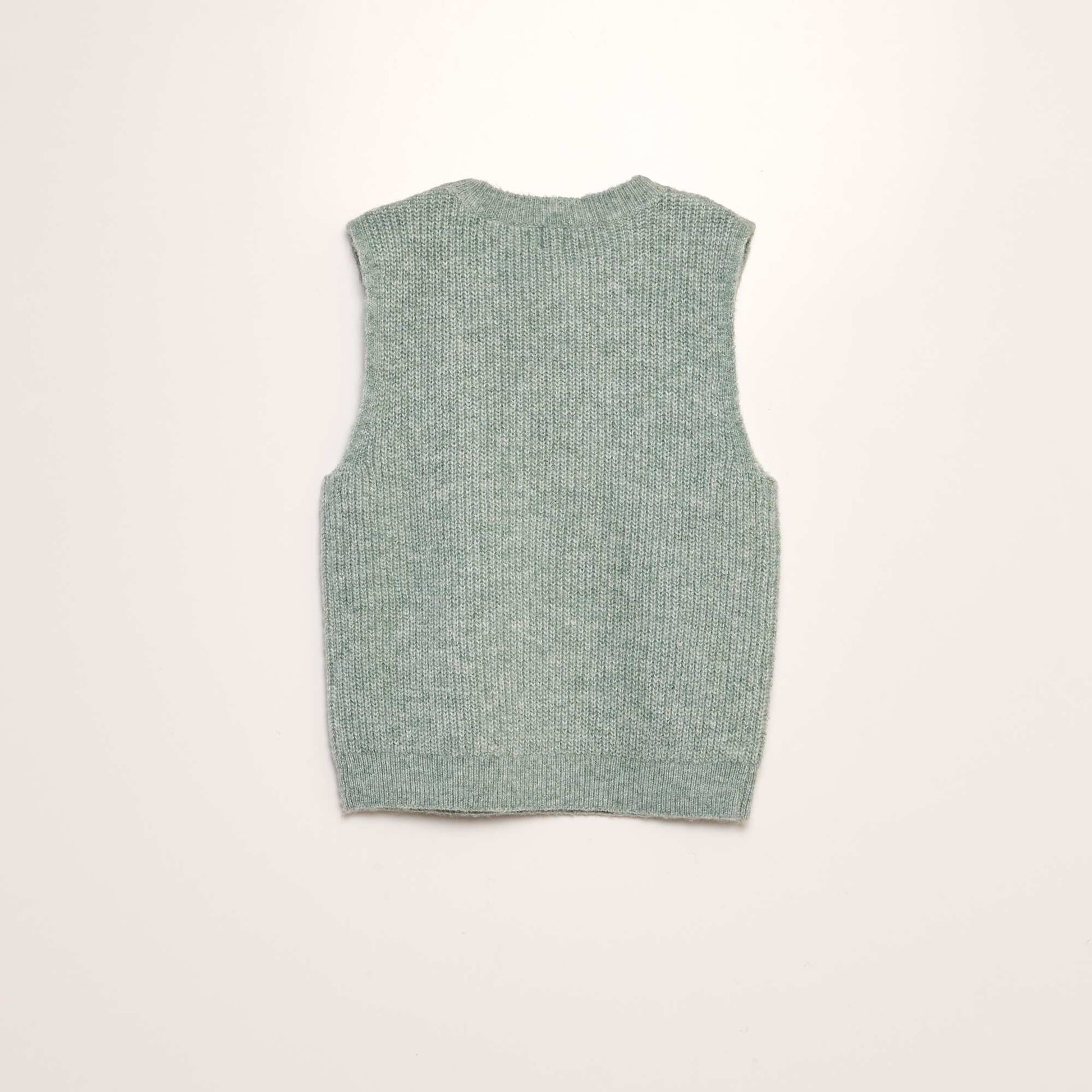 Ce pull sera id al pour la mi-saison ! - Pull en maille - Col rond - Sans manches - Finitions bord-c tes - Couleur unie - Ajour devant