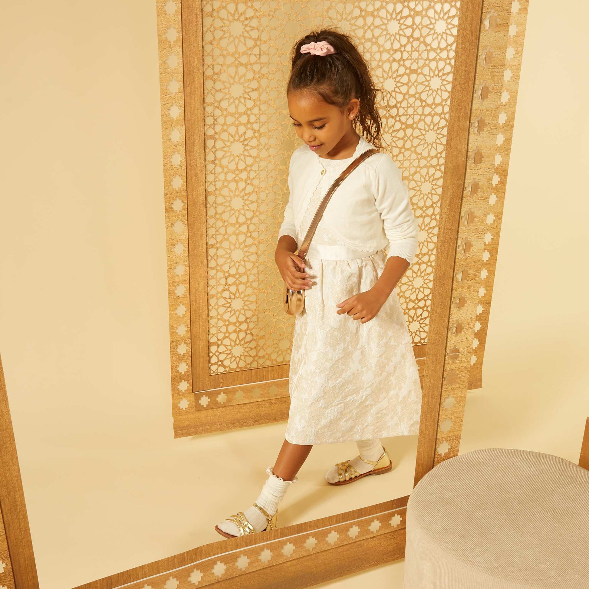 Vous avez trouvé la robe de princesse par excellence ! - Robe en jacquard - Col rond - Sans manches - Taille marquée par un ruban à nouer - Ouverture boutonnée au dos - Coupe légèrement évasée - Motif all over