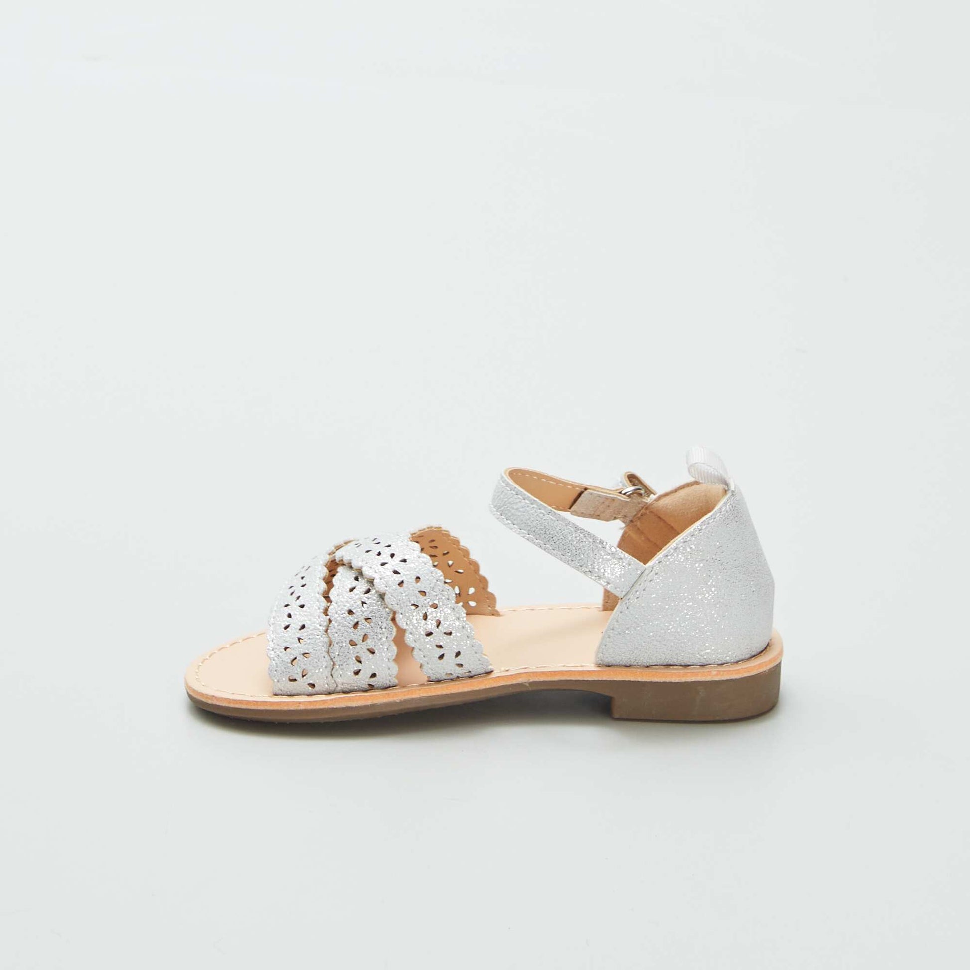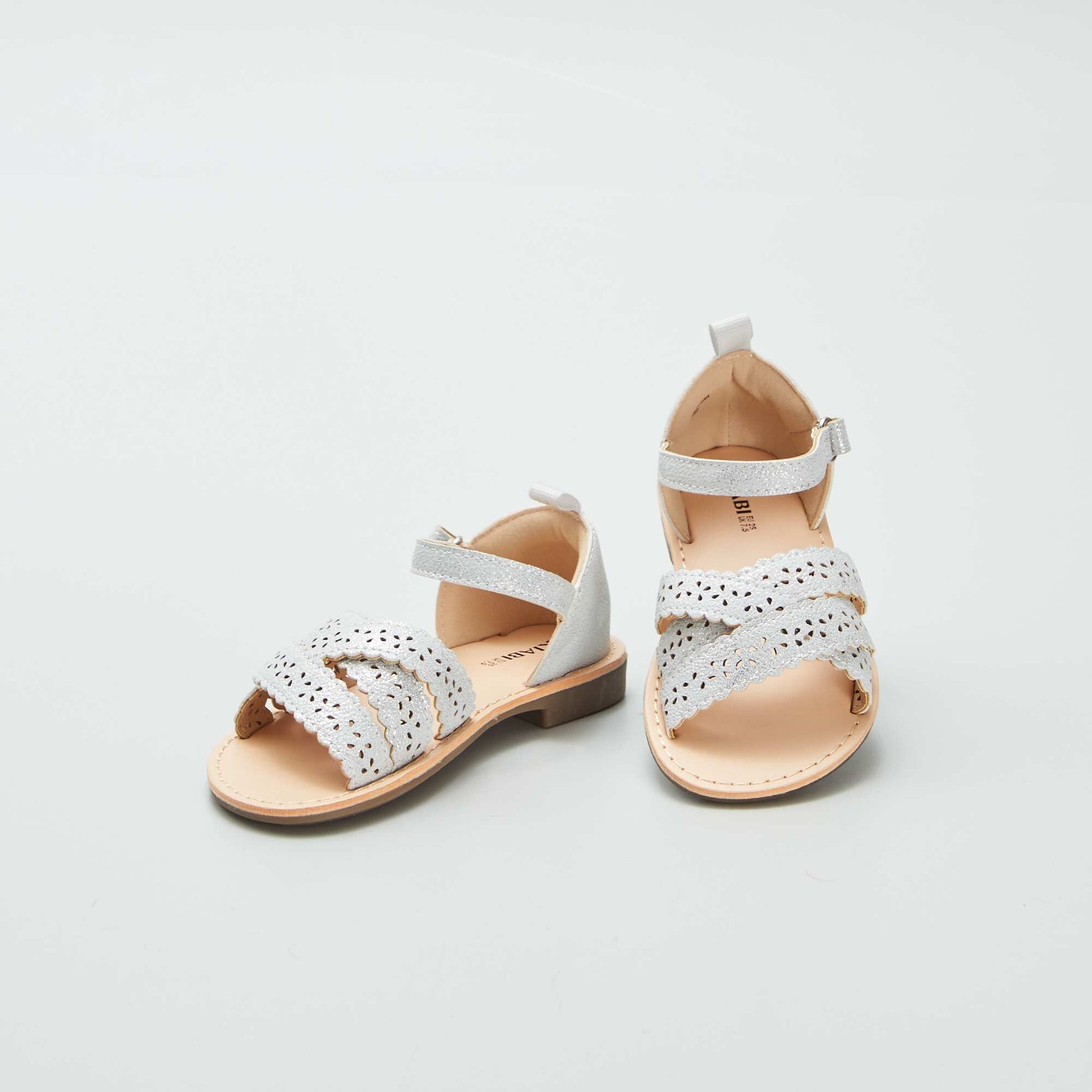 Les sandales habillées pour les tenues de fête printanières. - Sandales irisées - Brides croisées et ajourées - Lichette au dos - Bride ajustable par patte scratchée - Semelle intérieure lisse - Petit talon de 1 cm environ - Semelle d'usure antidérapante