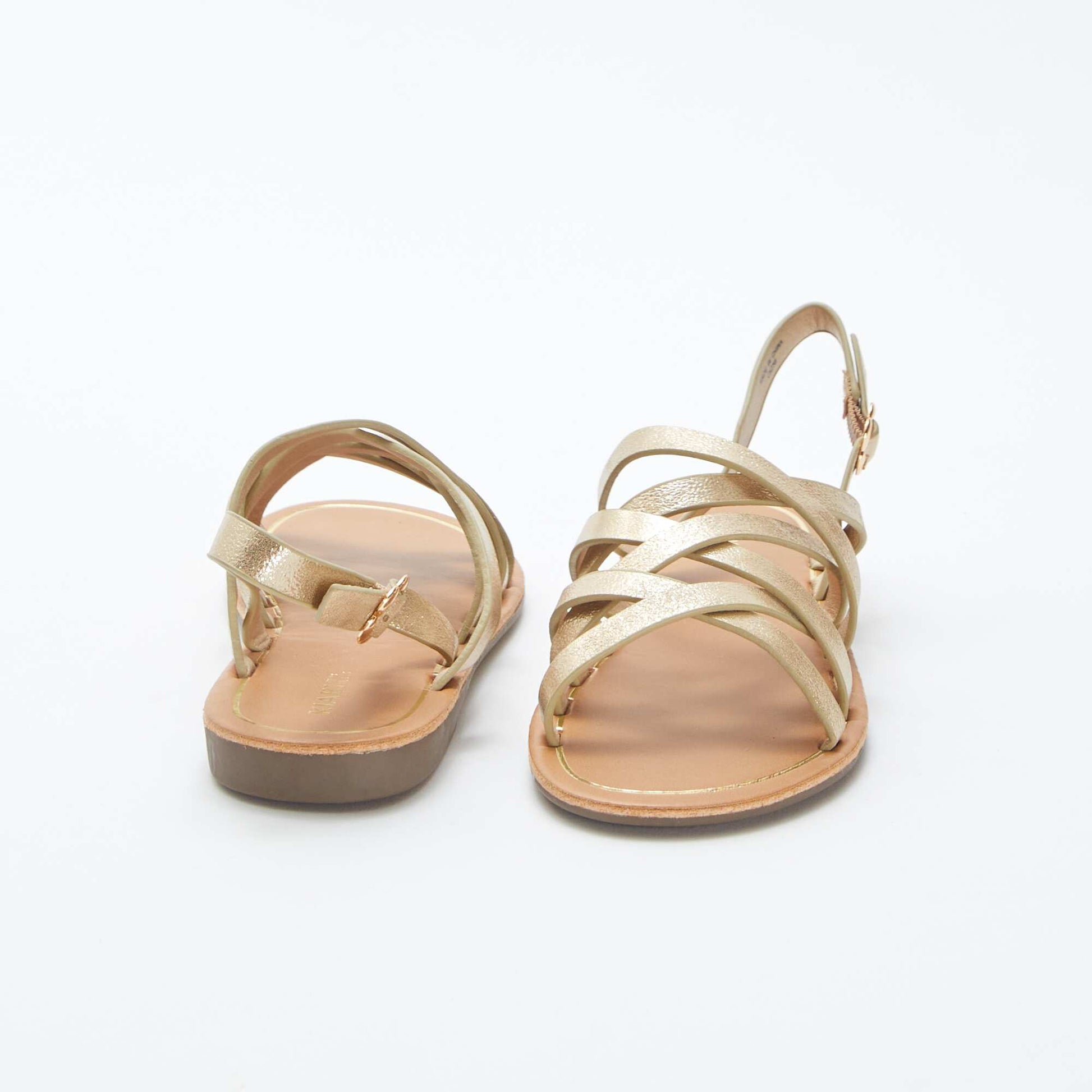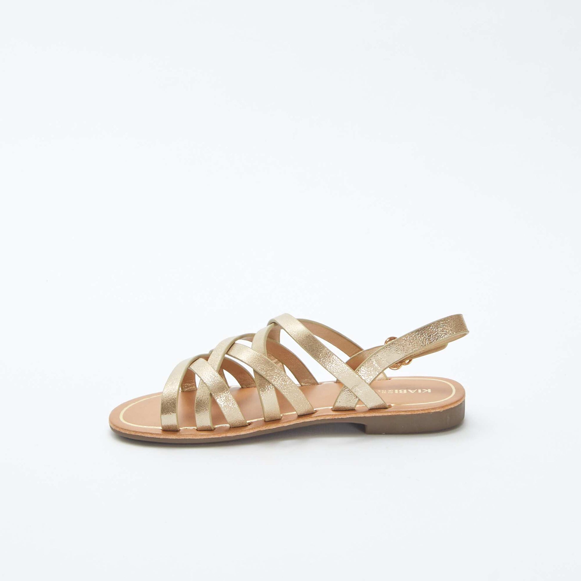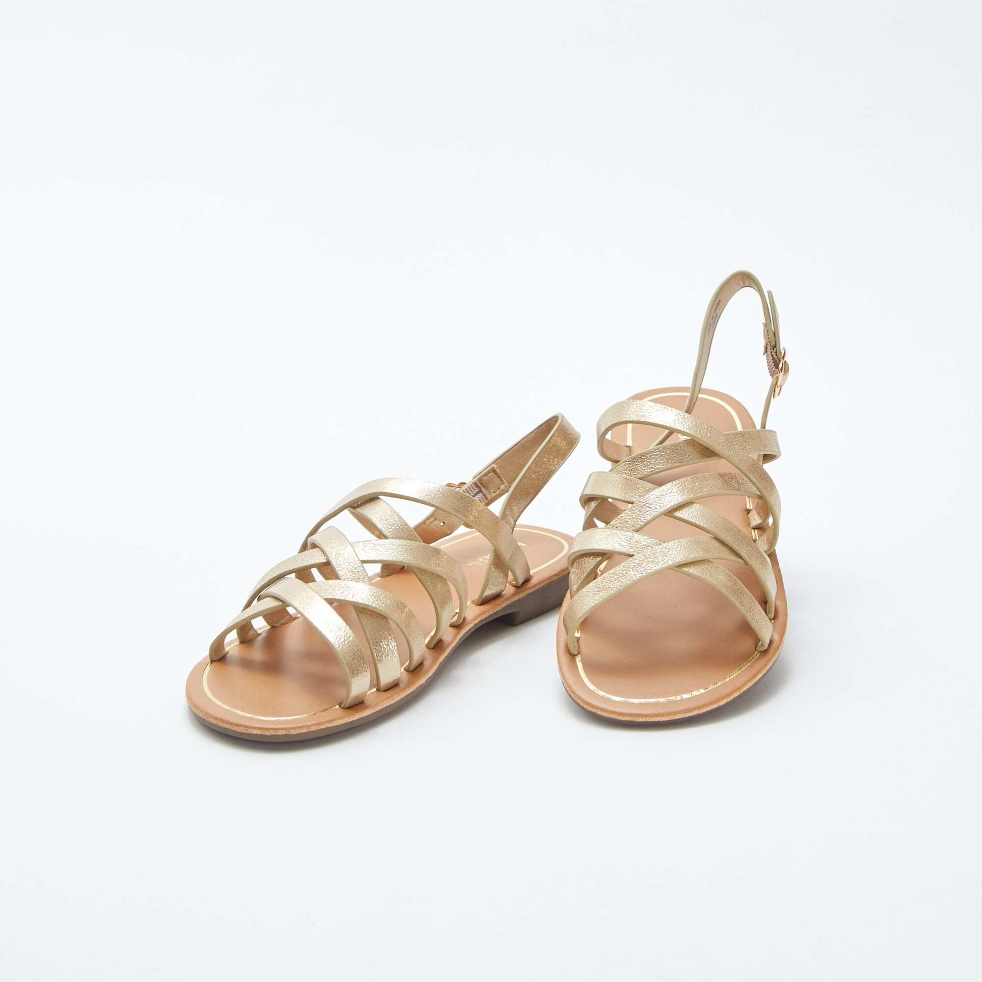 Les sandales multi-brides qui habilleront les tenues printanières de votre choupette. - Sandales plates - Multi-brides croisées - Bout et talon rond - Bride élastique ajustable - Boucle métallique en forme de fleur - Petit talon de 1,5 cm environ - Semelle intérieure en simili - Semelle d'usure antidérapante