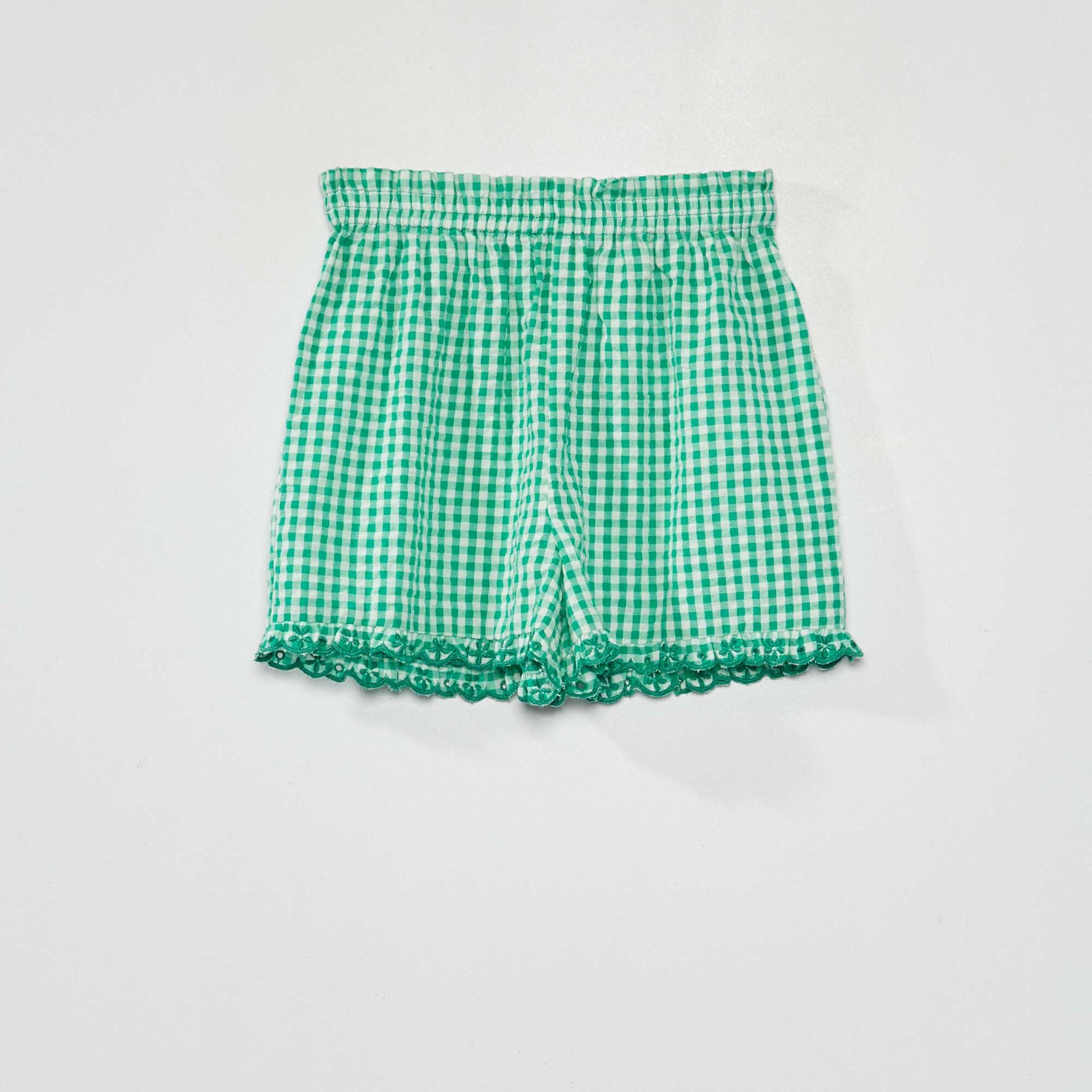 Carreaux vichy, coupe large, bords ondul s : les atouts de ce short ne se d montrent plus ! - Short carreaux - Coupe large - 100% coton - Taille smock e - Motifs vichy - Bords ondul s et ajour s