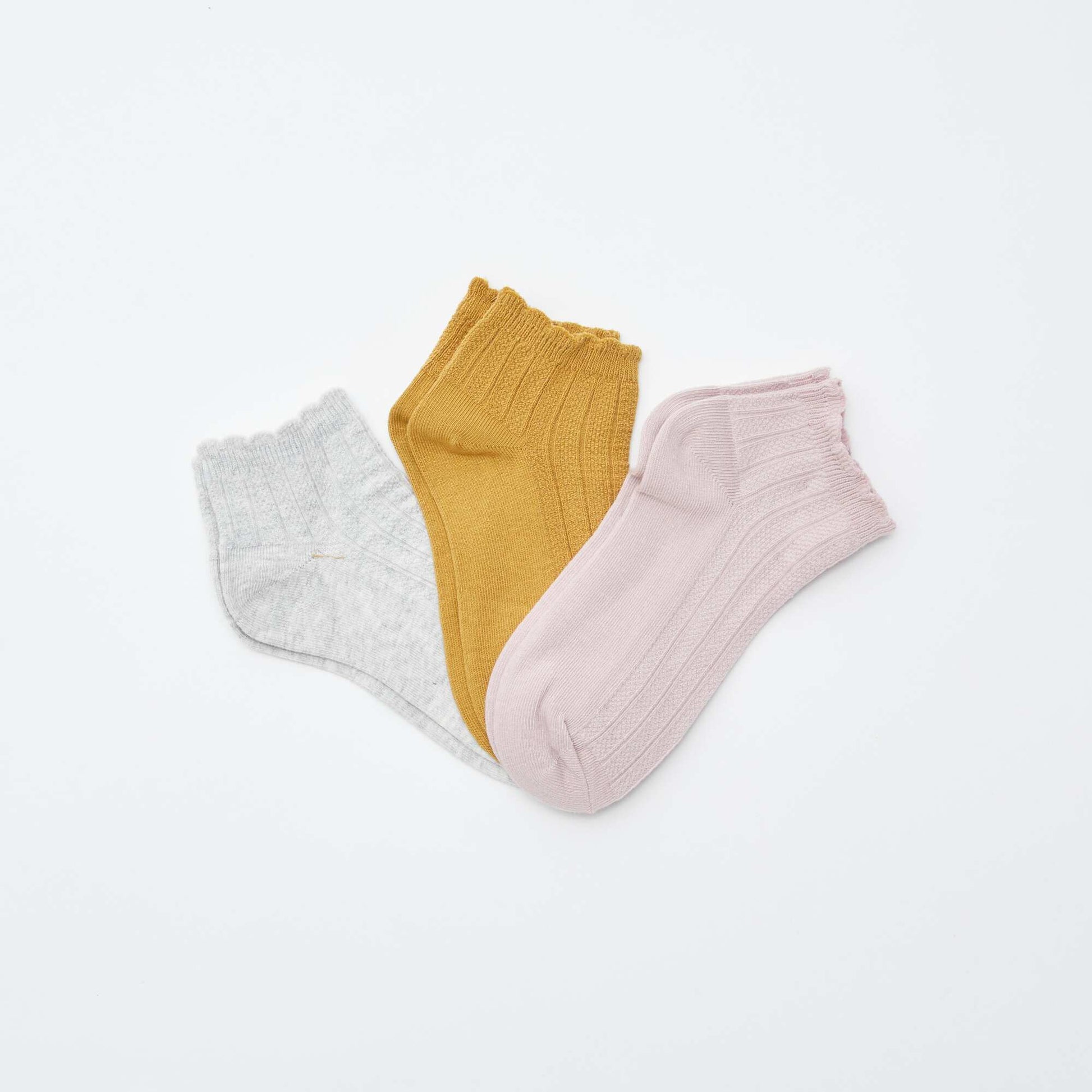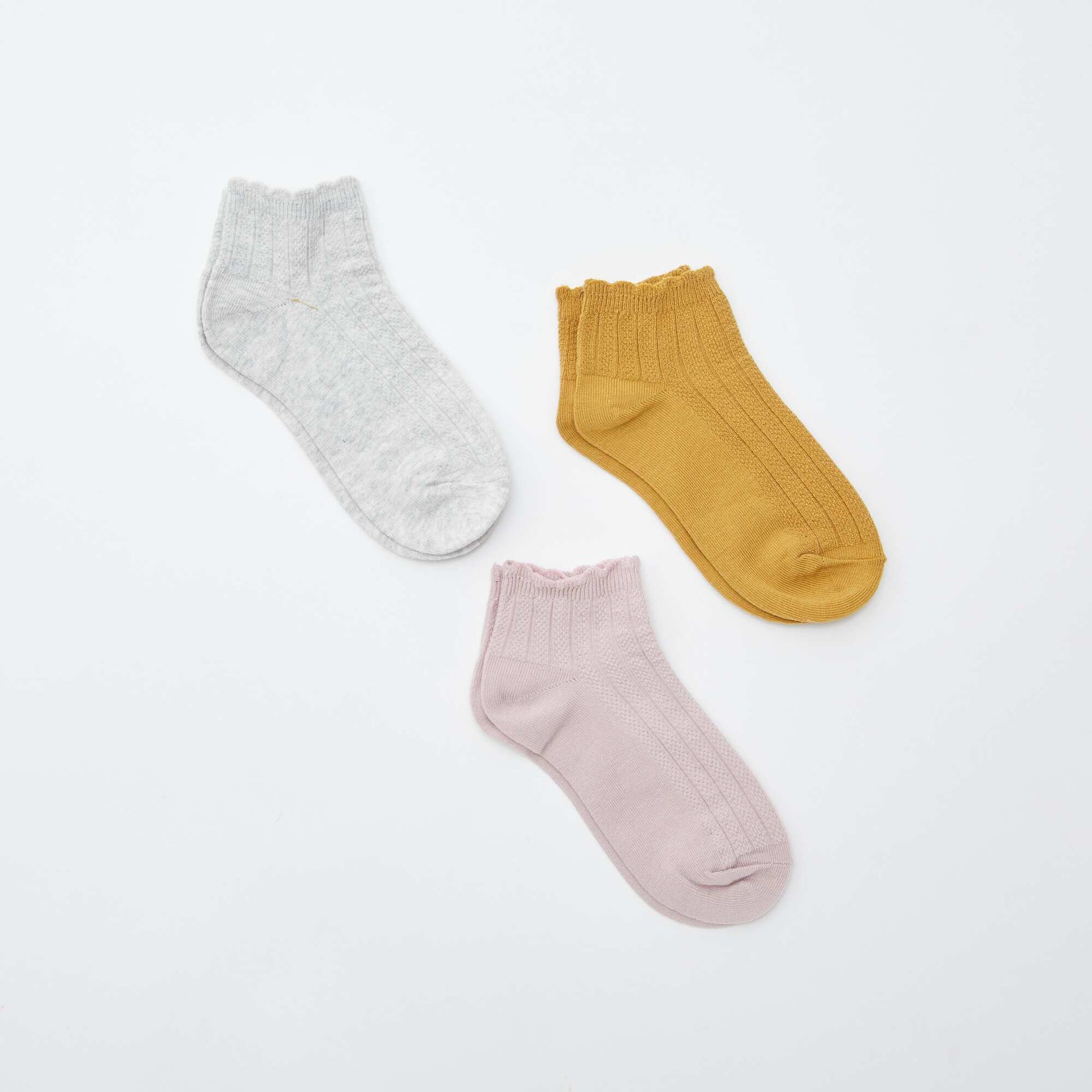 Pratiques et discrètes pour le quotidien ! - Socquettes - Chevilles élastiquées finitions écailles - Maille fantaisie - Unies