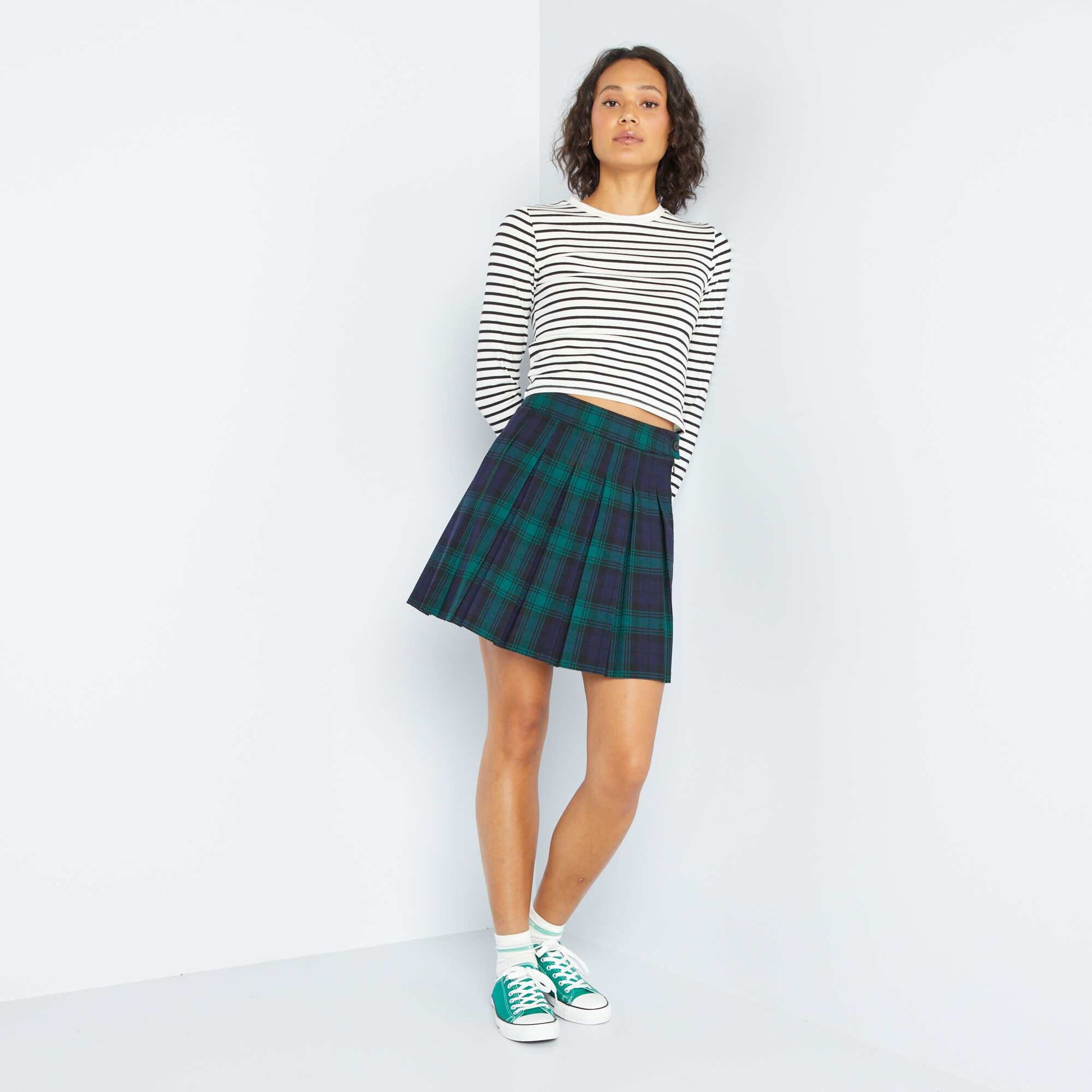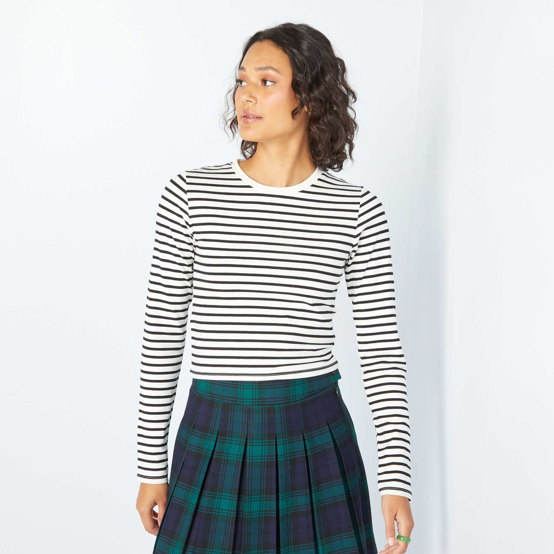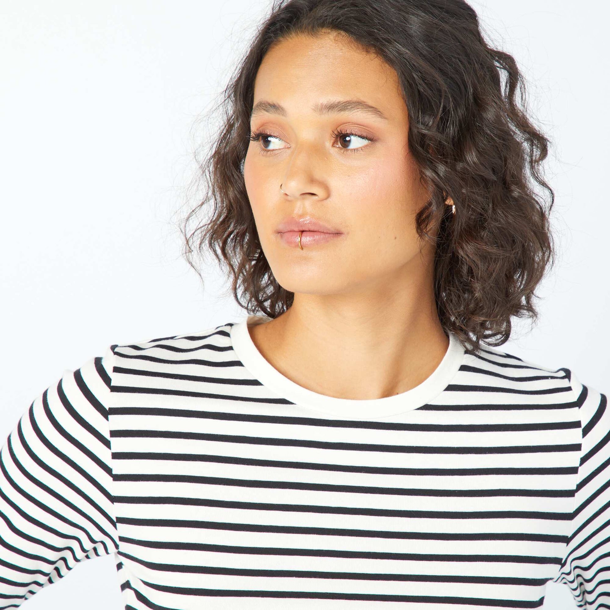 Un t-shirt cropped mod le sport ! - Tee-shirt cropped - Maille jersey stretch - Col rond - Manches longues - Notre mannequin porte une taille M et mesure 1m75