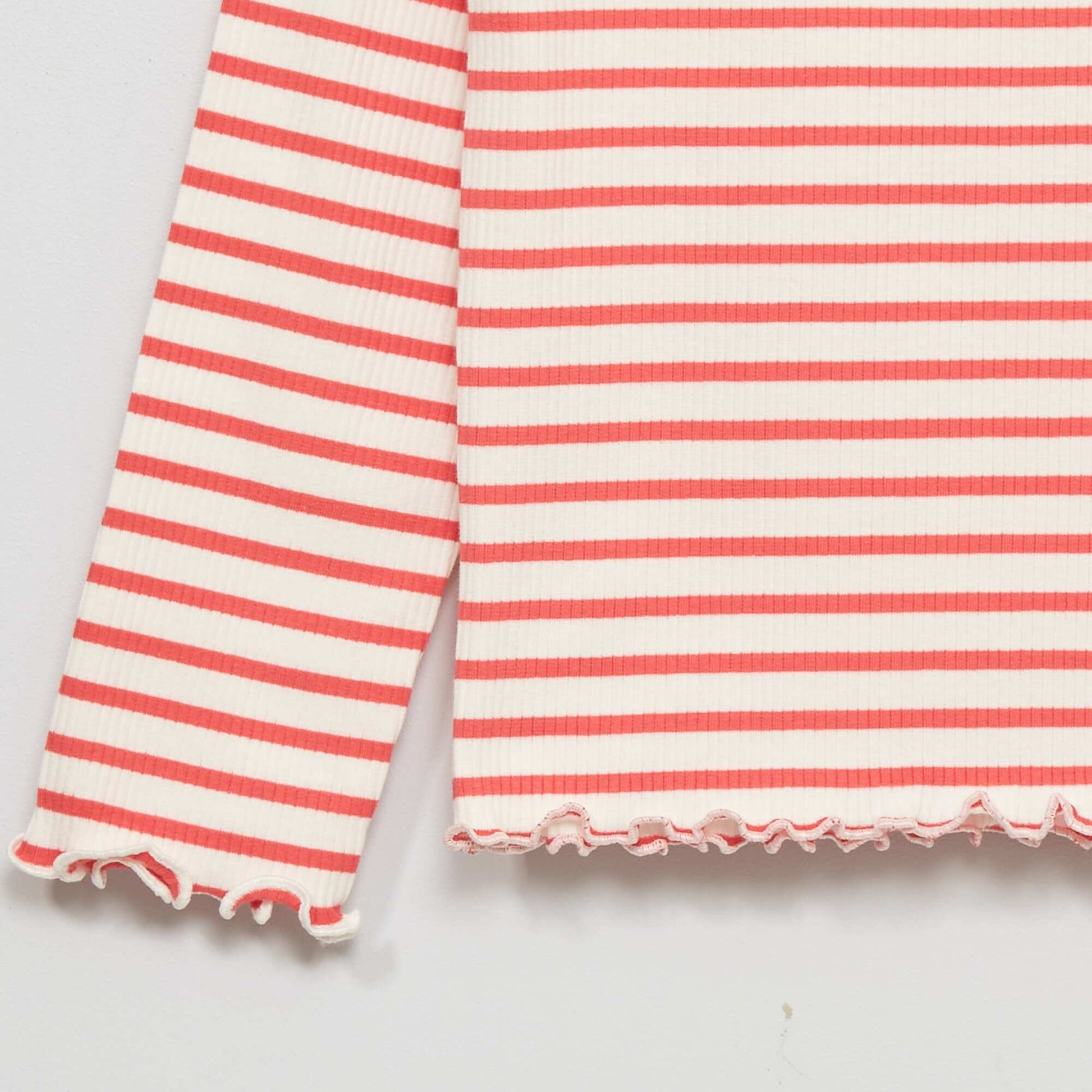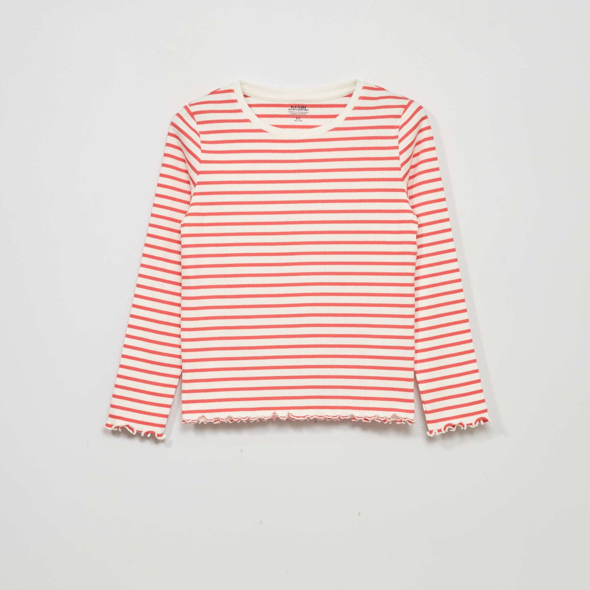 Un tee-shirt l ger manches longues pour la mi-saison. - T-shirt en jersey - En maille c tel e - Col rond - Manches longues - Volant e la base - Imprim rayures all-over