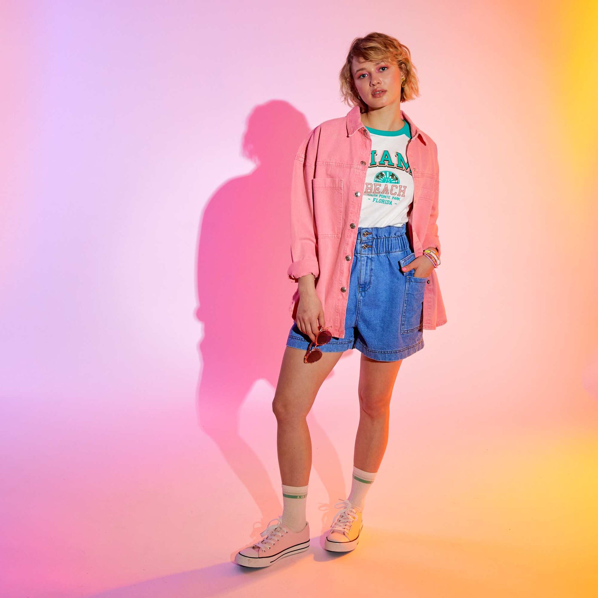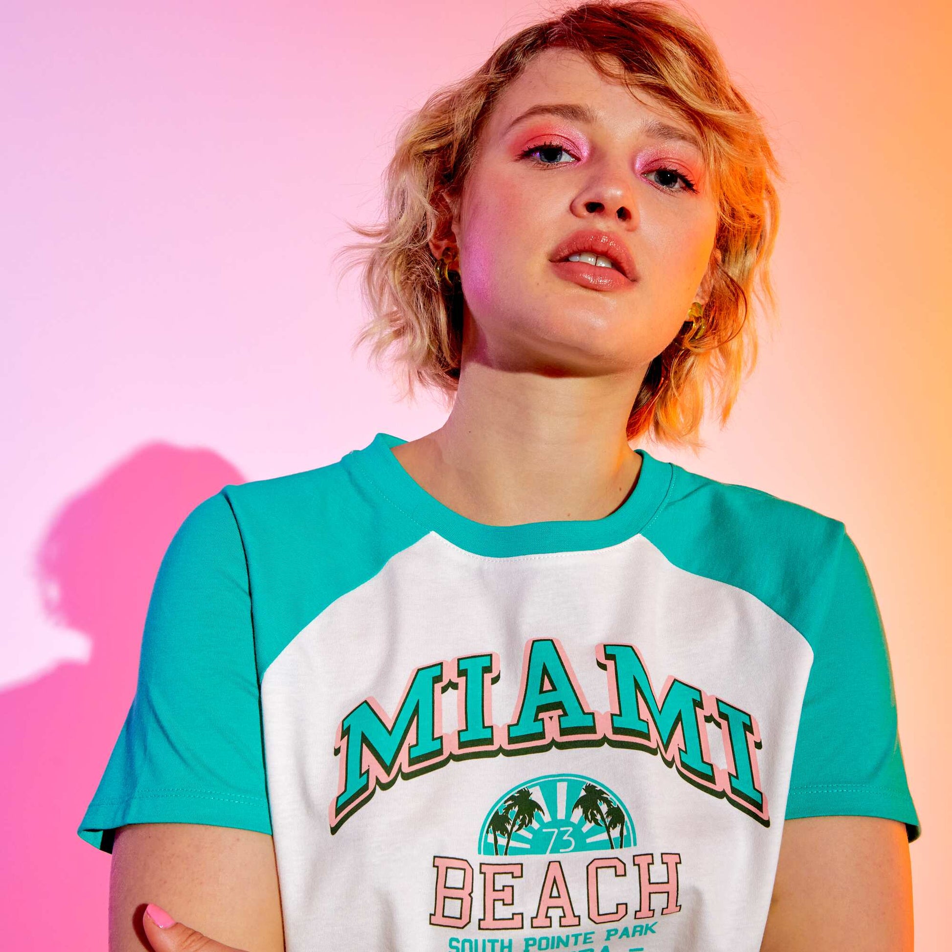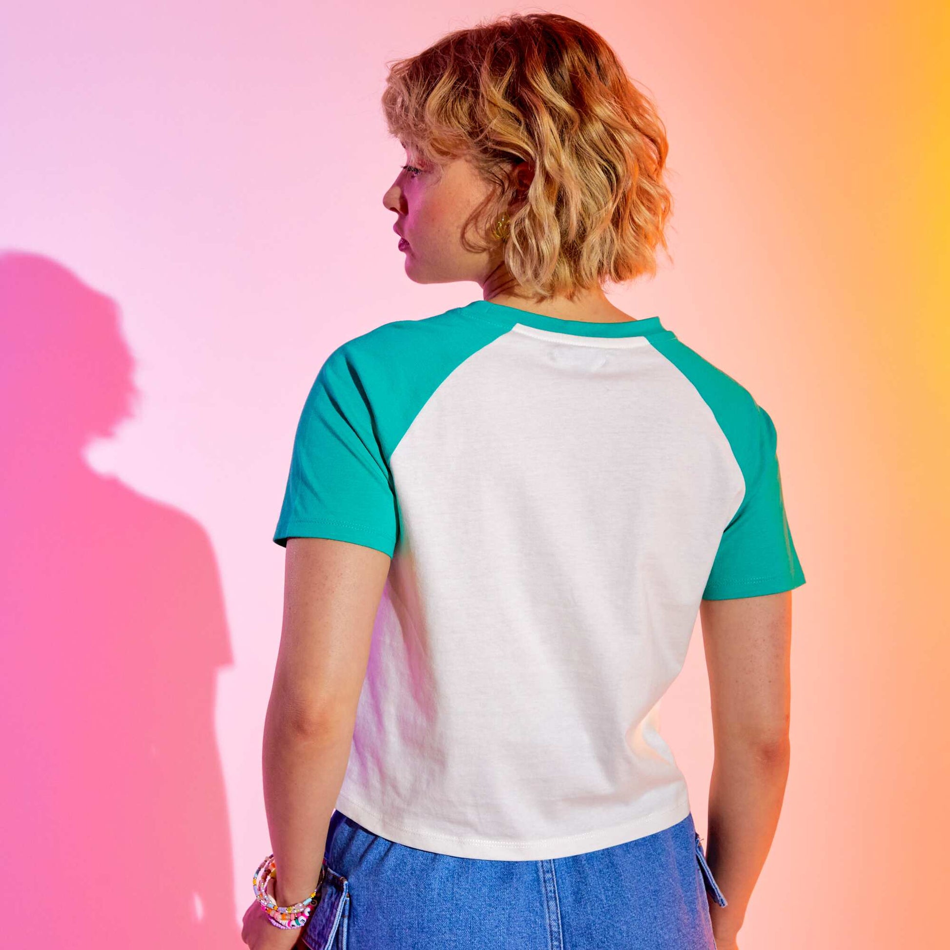Un t-shirt coupe courte avec une inscription devant type américaine ! - Tee-shirt imprimé - 100% coton - Manches courtes raglan - Col rond - Coupe courte - Imprimé à l'avant - Longueur dos : 47 cm environ - Notre mannequin porte une taille M et mesure 1m67