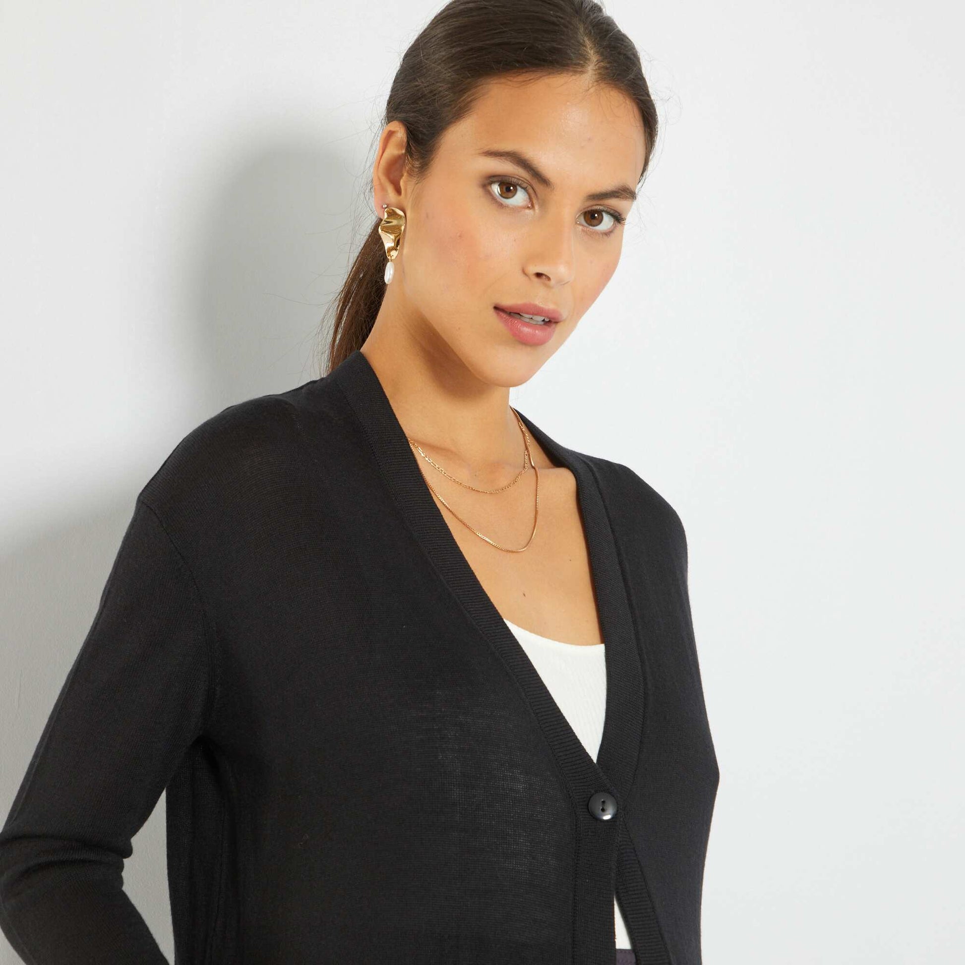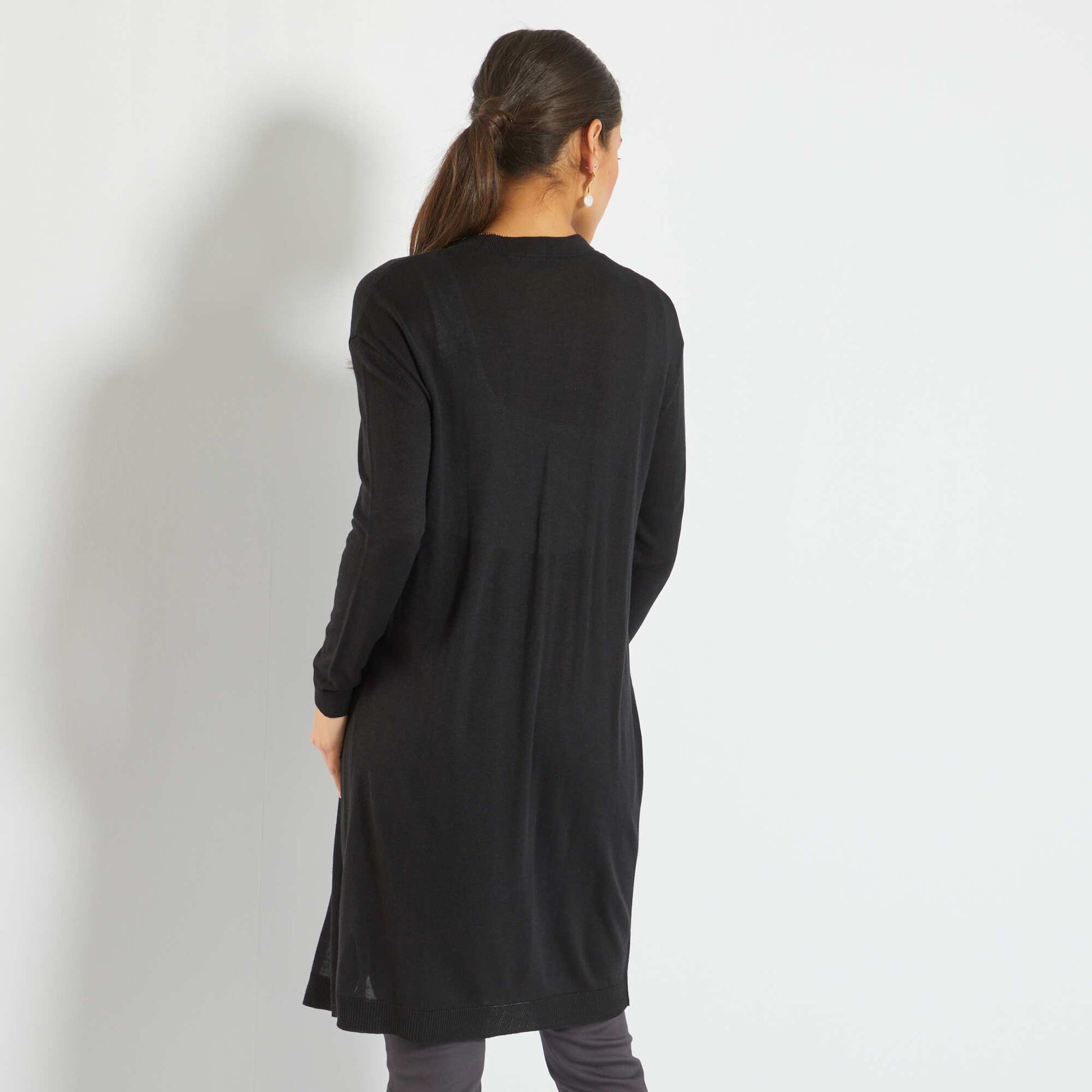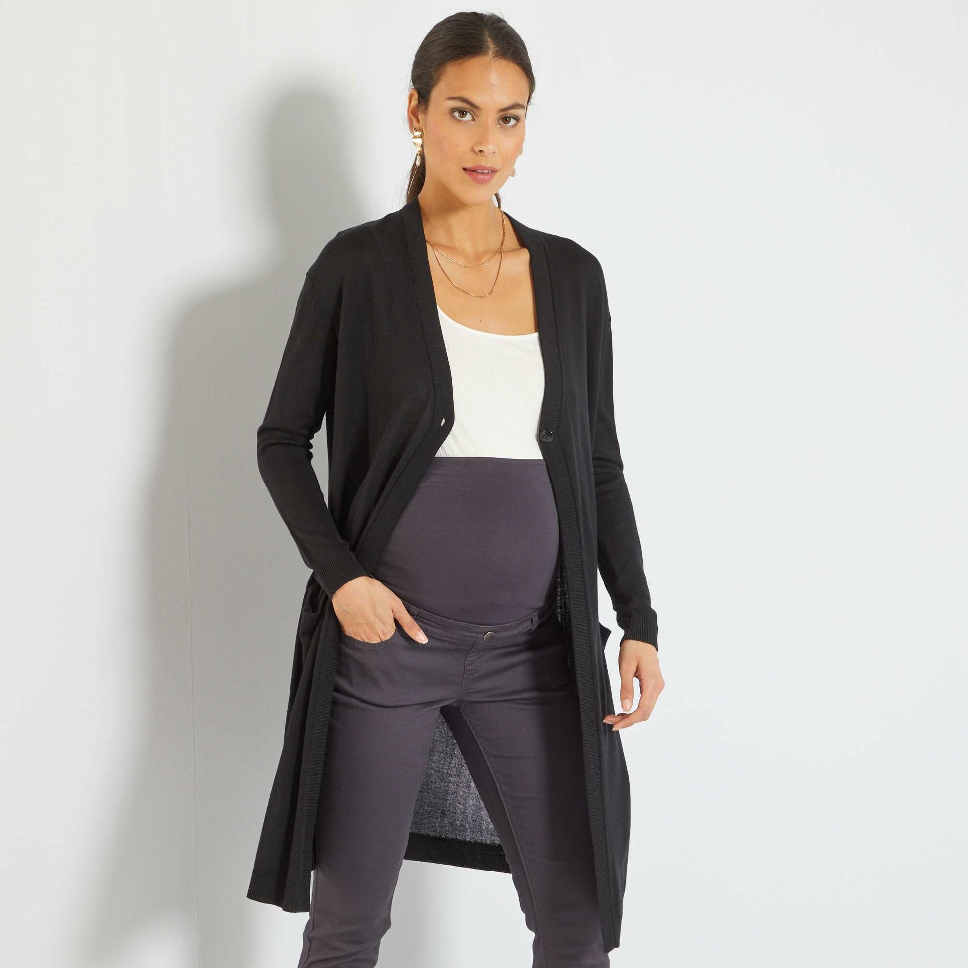 Le gilet mi-long s'associe parfaitement avec un look classique et décontracté. Il peut être porté également avec une jolie robe à motifs. - Gilet de grossesse - Coupe mi-longue - Manches longues - Ouverture boutonnée - 2 poches devant - Finitions rib - Longueur dos : 100 cm environ - Notre mannequin porte une taille S et mesure 1m75