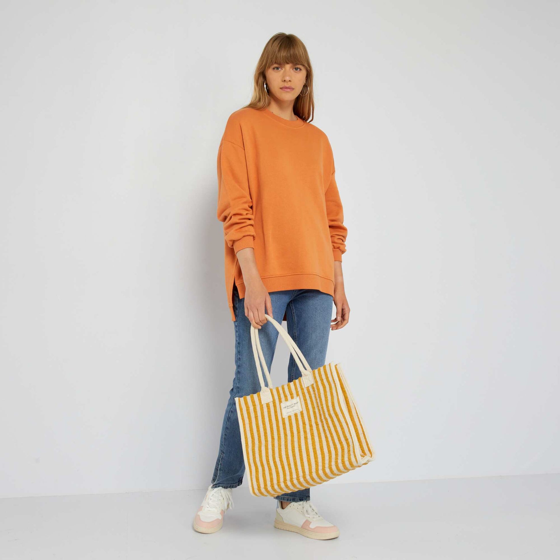 Large sweat pour plus de confort. - Sweat en molleton - Coupe longue au dos - Int rieur non gratt french terry - Col rond - Manches longues - Finition rib - Longueur dos : 76 cm environ - Notre mannequin porte une taille M et mesure 1m77