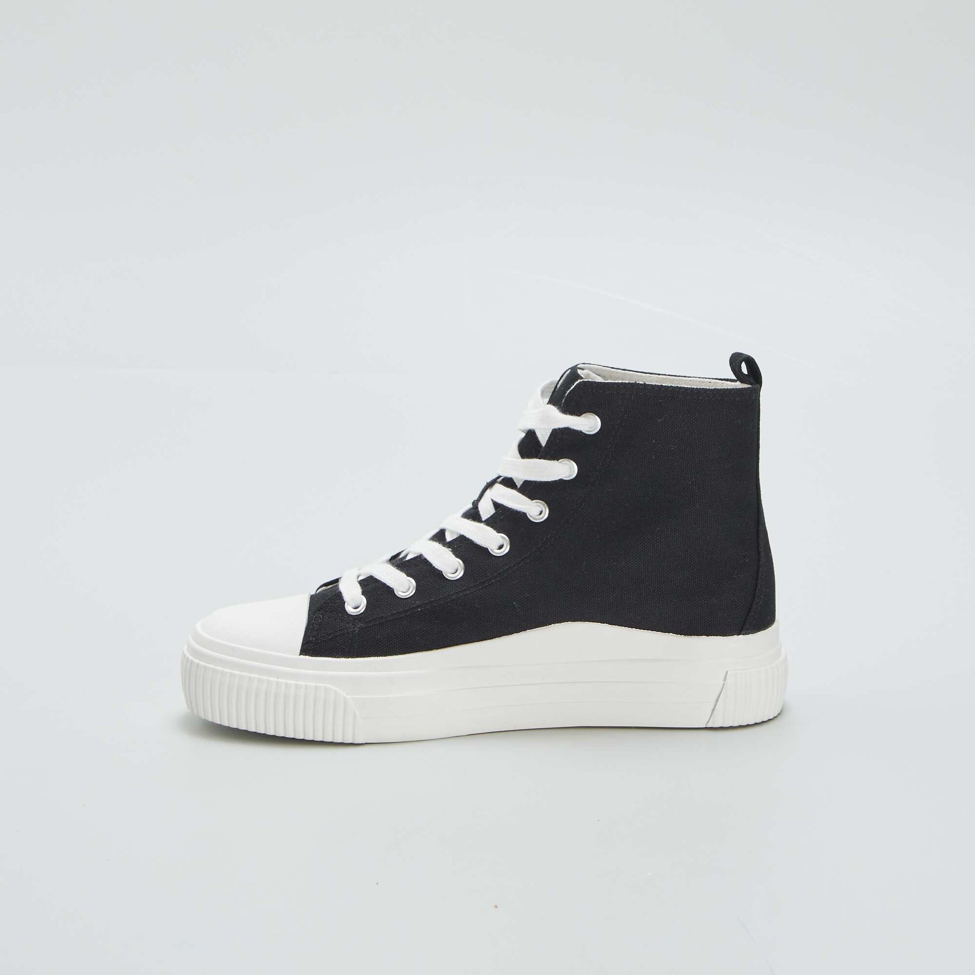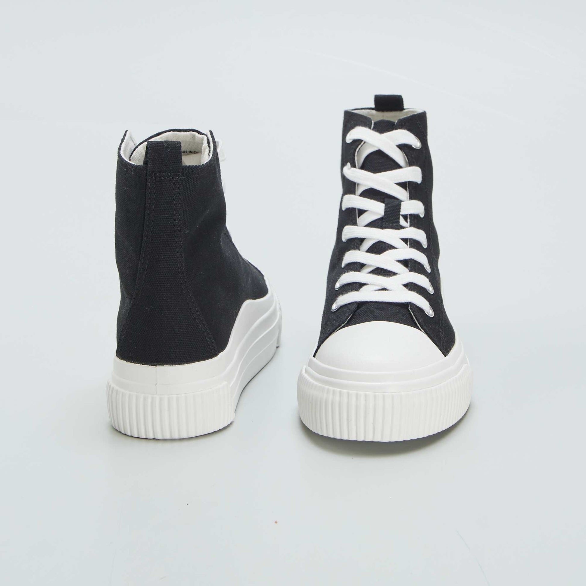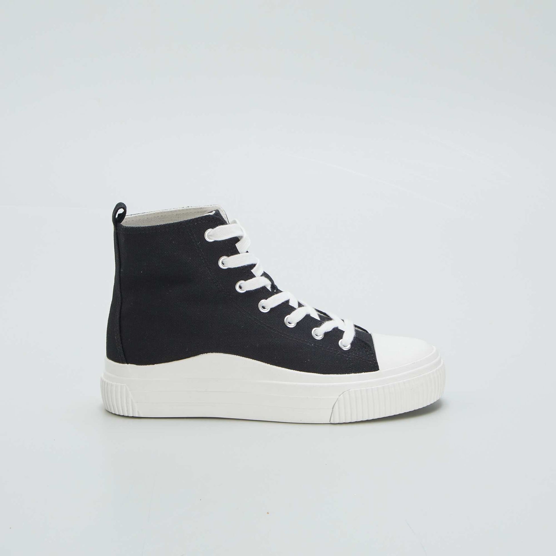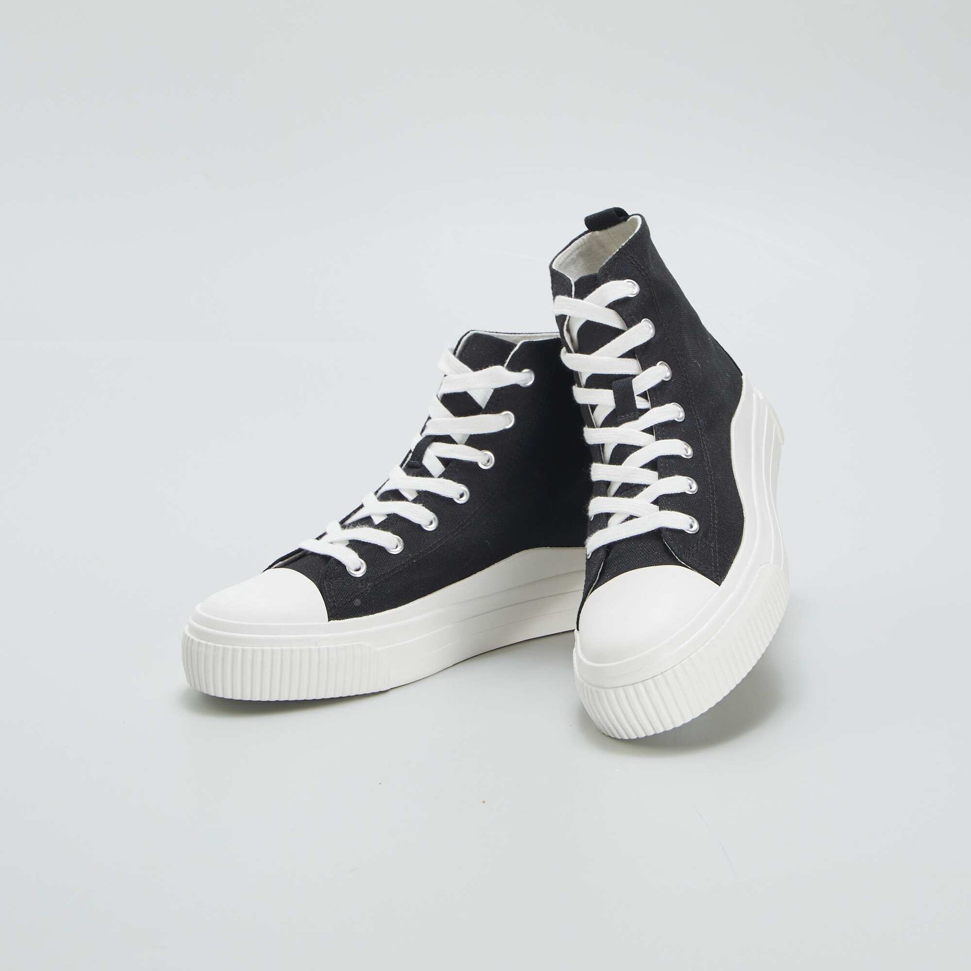Faites une d claration de style avec nos baskets montantes en toile et semelles compens es. - Baskets montantes en toile - La age 7 trous - Lichette au dos - Semelles compens es - Bord de semelle textur s - Hauteur de semelle : 4 cm environ