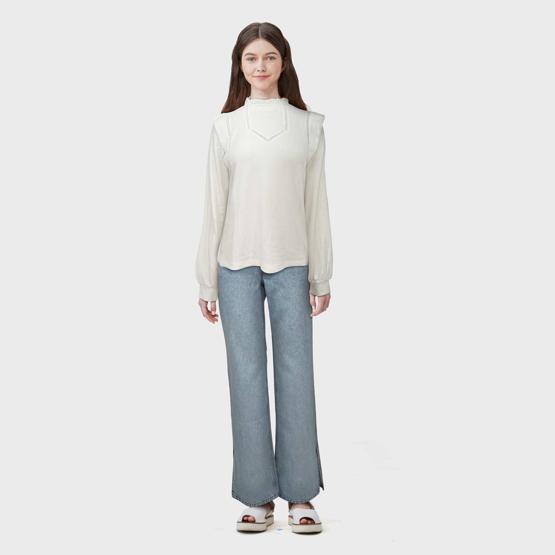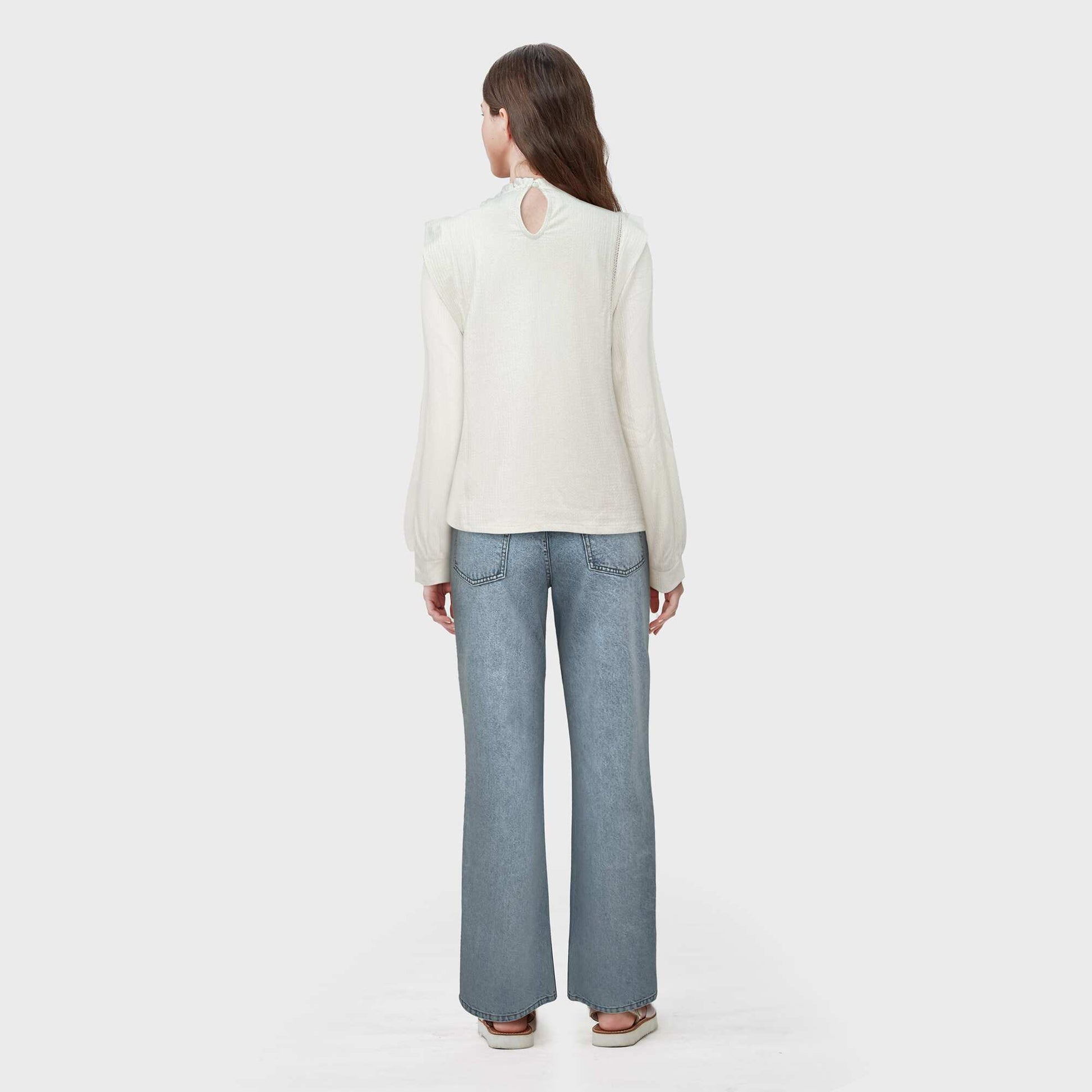 Allier f minit et l gance avec cette ravissante blouse fluide ! - Blouse fluide - Col rond volant - Manches longues - Ouverture goutte d'eau au dos - Bas de manches resserr s - Couleur unie