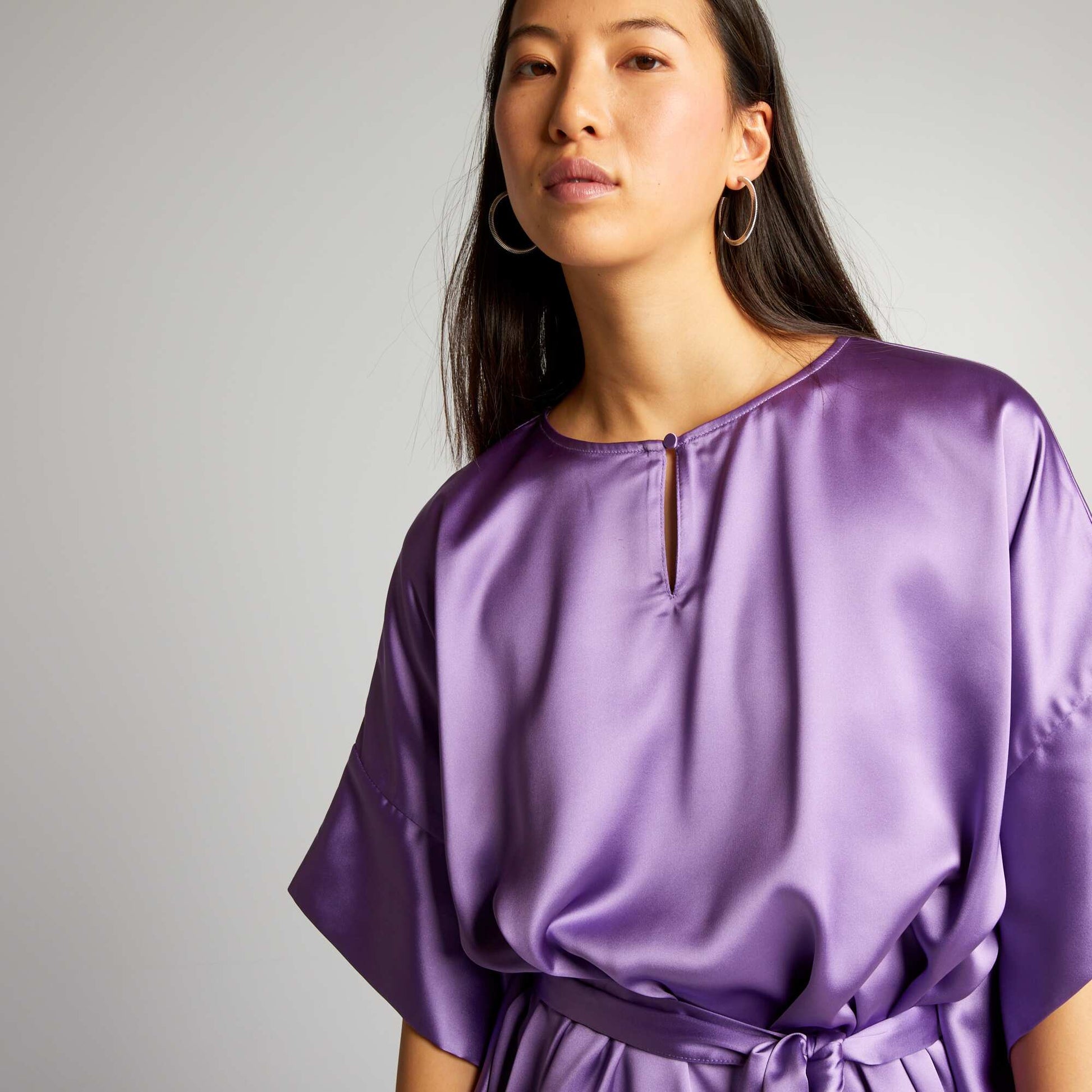 Une blouse sans manches et satin e pour une tenue lumineuse ! - Blouse unie - Mati re satin e - Col rond - Sans manches - Ouverture goutte d'eau au dos - Longueur dos : 66 cm environ - Notre mannequin porte une taille M et mesure 1m75