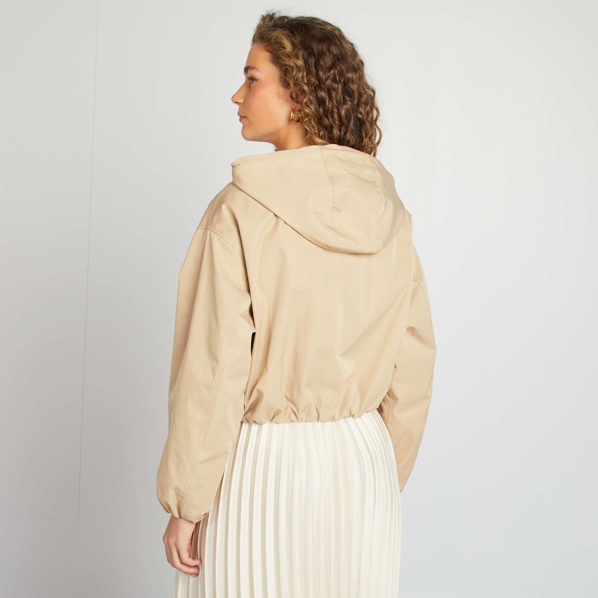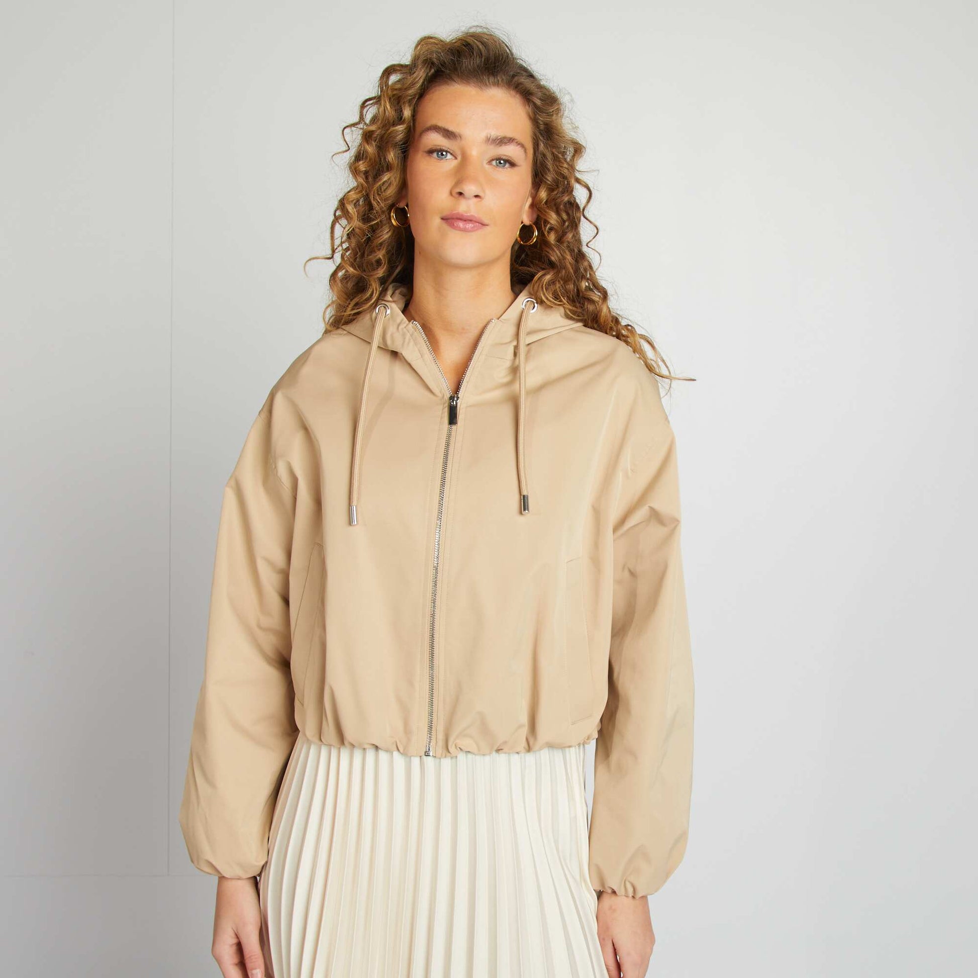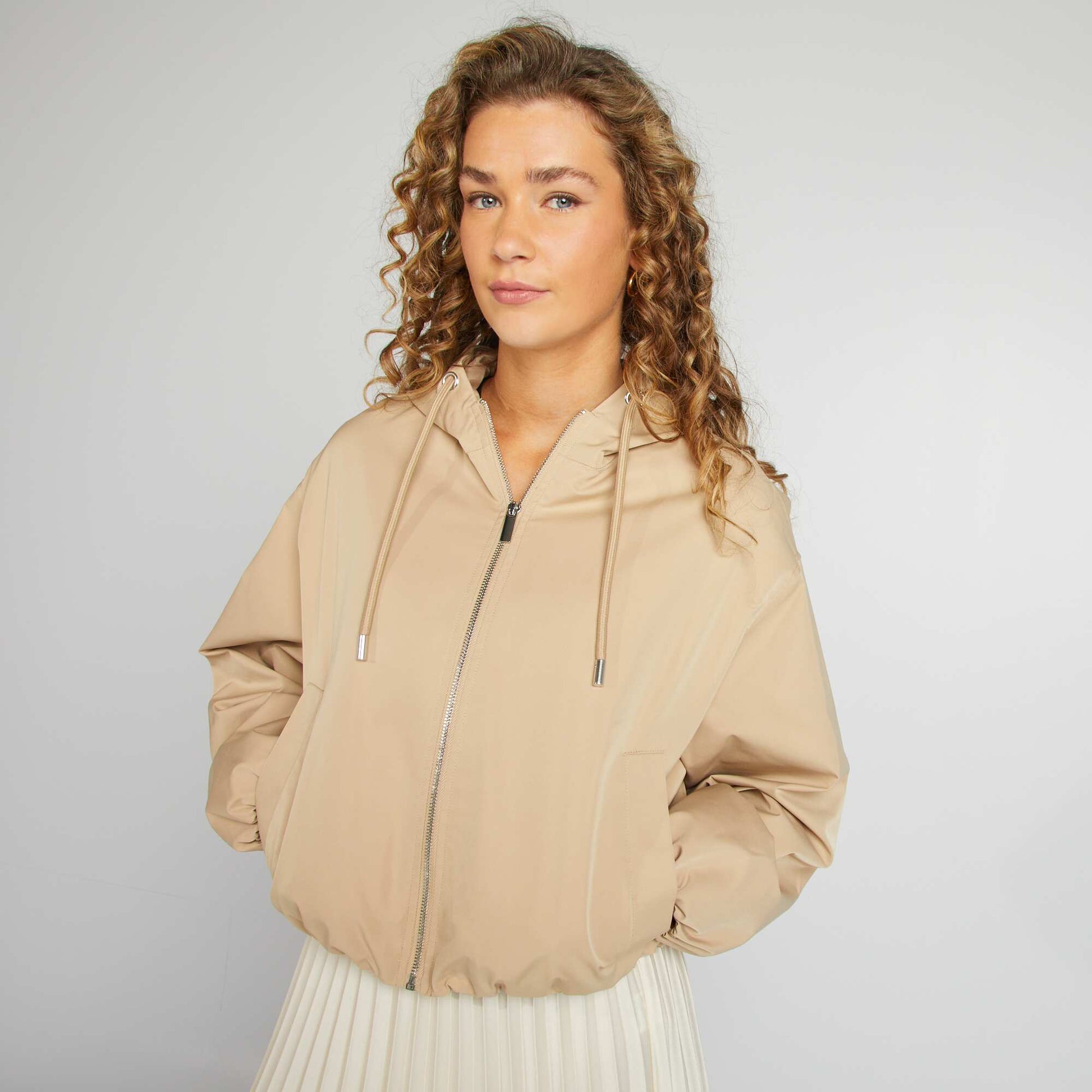 Une pièce tendance et polyvalente qui apporte une touche de style décontracté à n'importe quelle tenue. - Blouson court oversize - Avec capuche - Déperlant - Cordons - Ouverture zippée - Bas élastiqué - Détails argentés - Longueur du dos : 48 cm - Notre mannequin porte une taille 36 et mesure 1m75