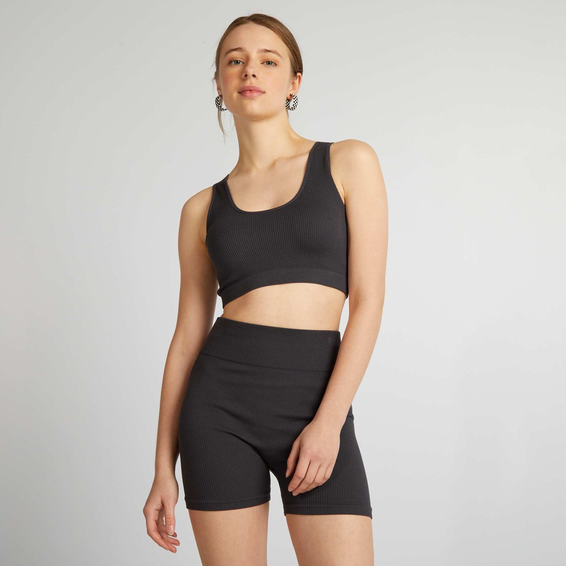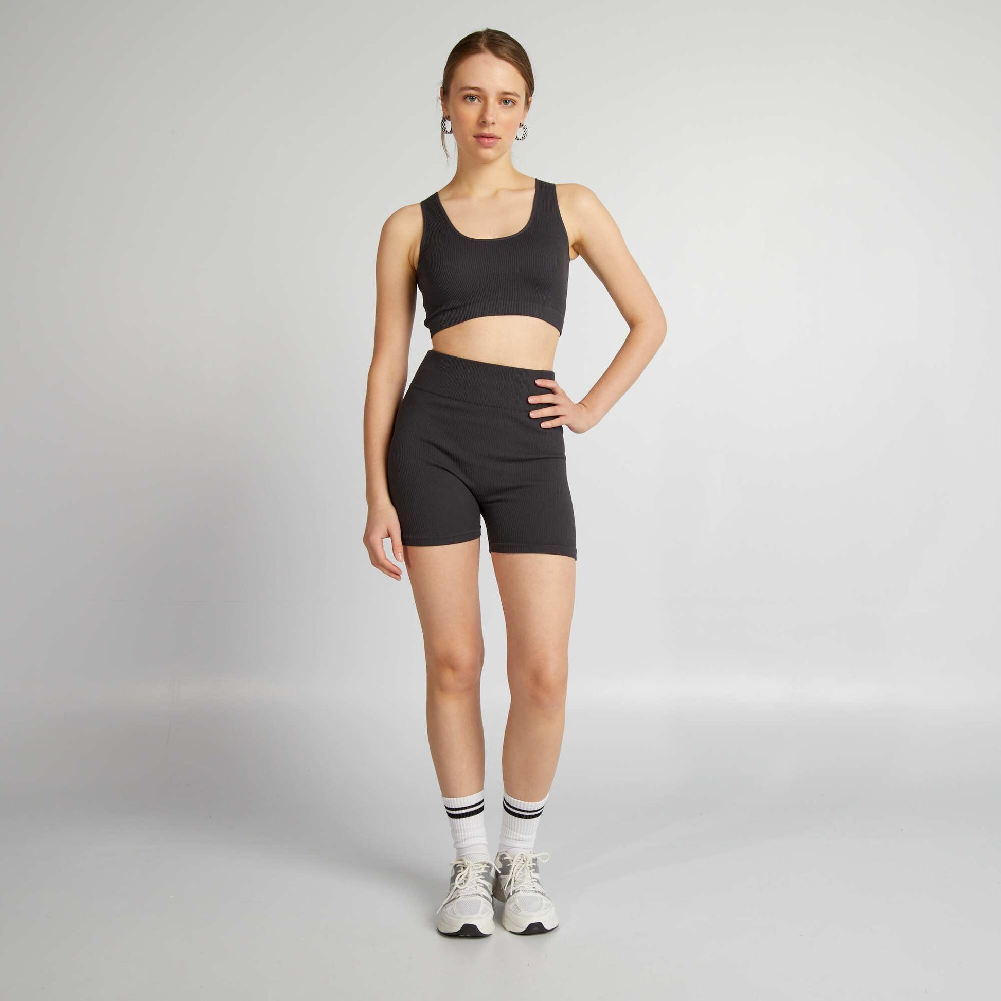 Con ue pour le confort et le soutien, cette brassi re de sport te permettra de rester l'aise tout en te surpassant avec style ! - Brassi re unie - En maille c tel e - Mati re stretch - Encolure ronde (avant et dos) - Larges bretelles - Poitrine lastique - Longueur dos : 33 cm environ - Notre mannequin porte une taille M et mesure 1m75