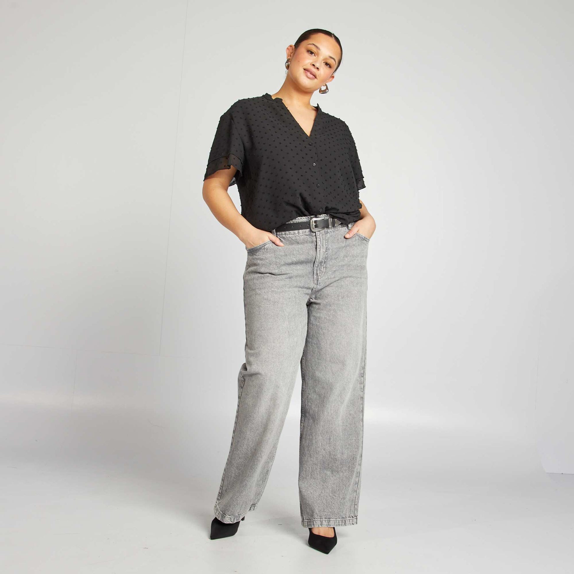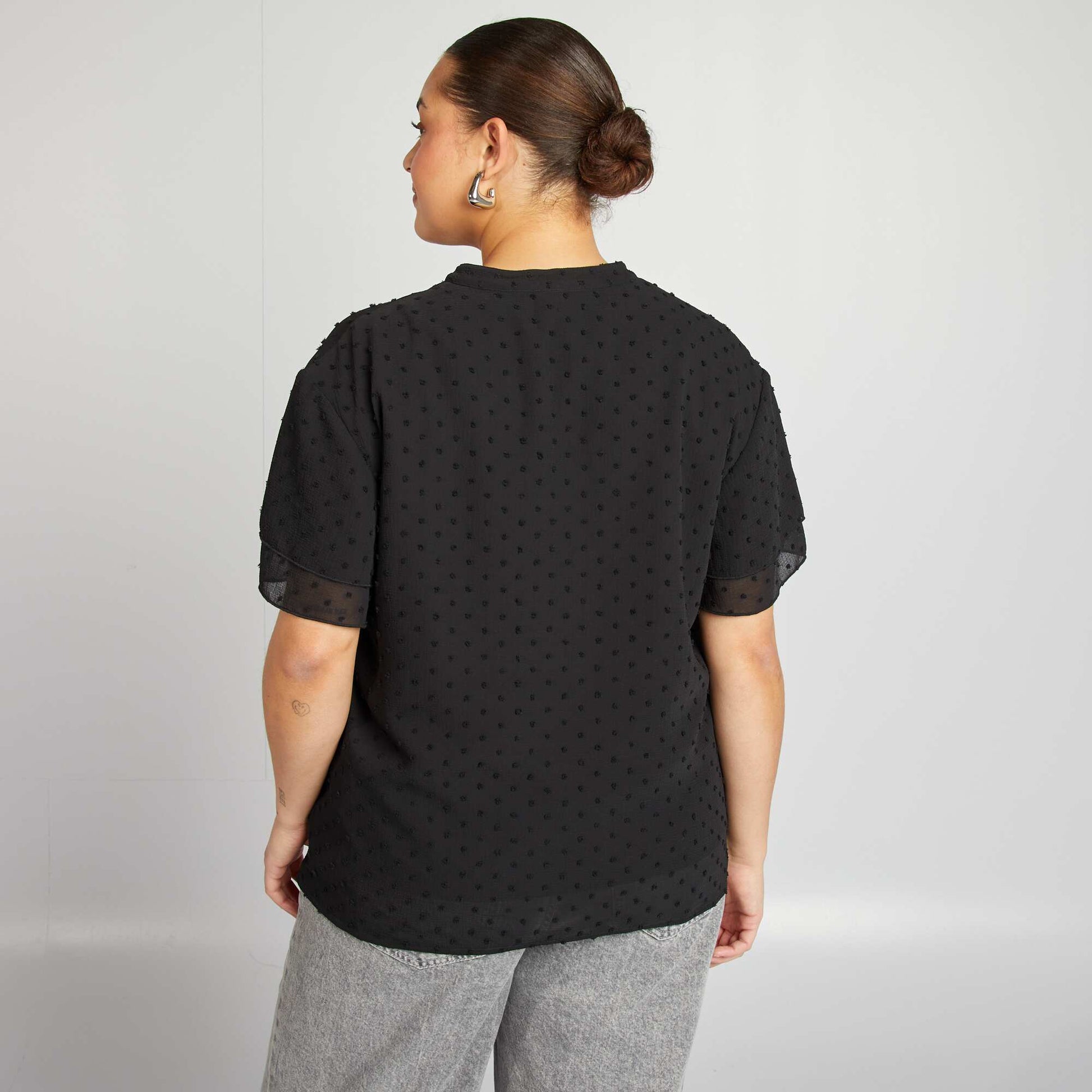 Ajoutez de la texture à votre tenue avec ce chemisier en plumetis. Légèreté et élégance assurées ! - Chemisier fluide - En plumetis - Manches courtes volantées - Encolure en V - Ouverture boutonnée - Doublure intérieure satinée - Longueur dos : 68 cm environ - Notre mannequin porte une taille XL et mesure 1m75