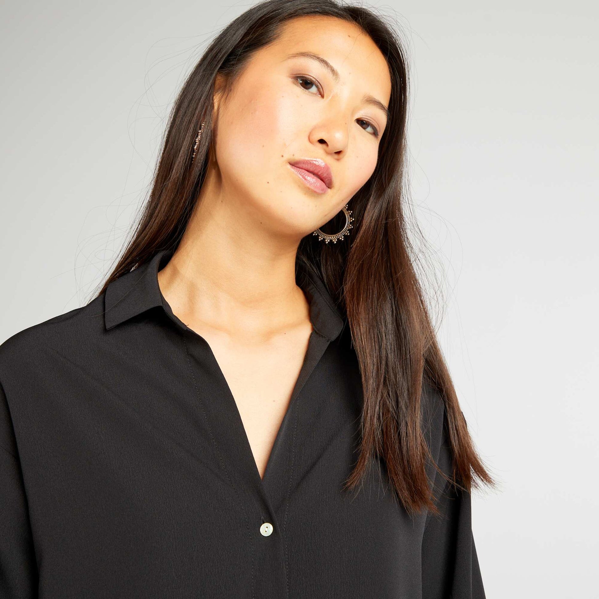 Associez-le avec un jean ou une jupe pour un look d contract et tendance. - Chemisier fluide - En maille cr pe - Col chemise - Ouverture boutonn e - Poignets boutonn s - Longueur dos : 63 cm environ - Notre mannequin porte une taille S et mesure 1m75