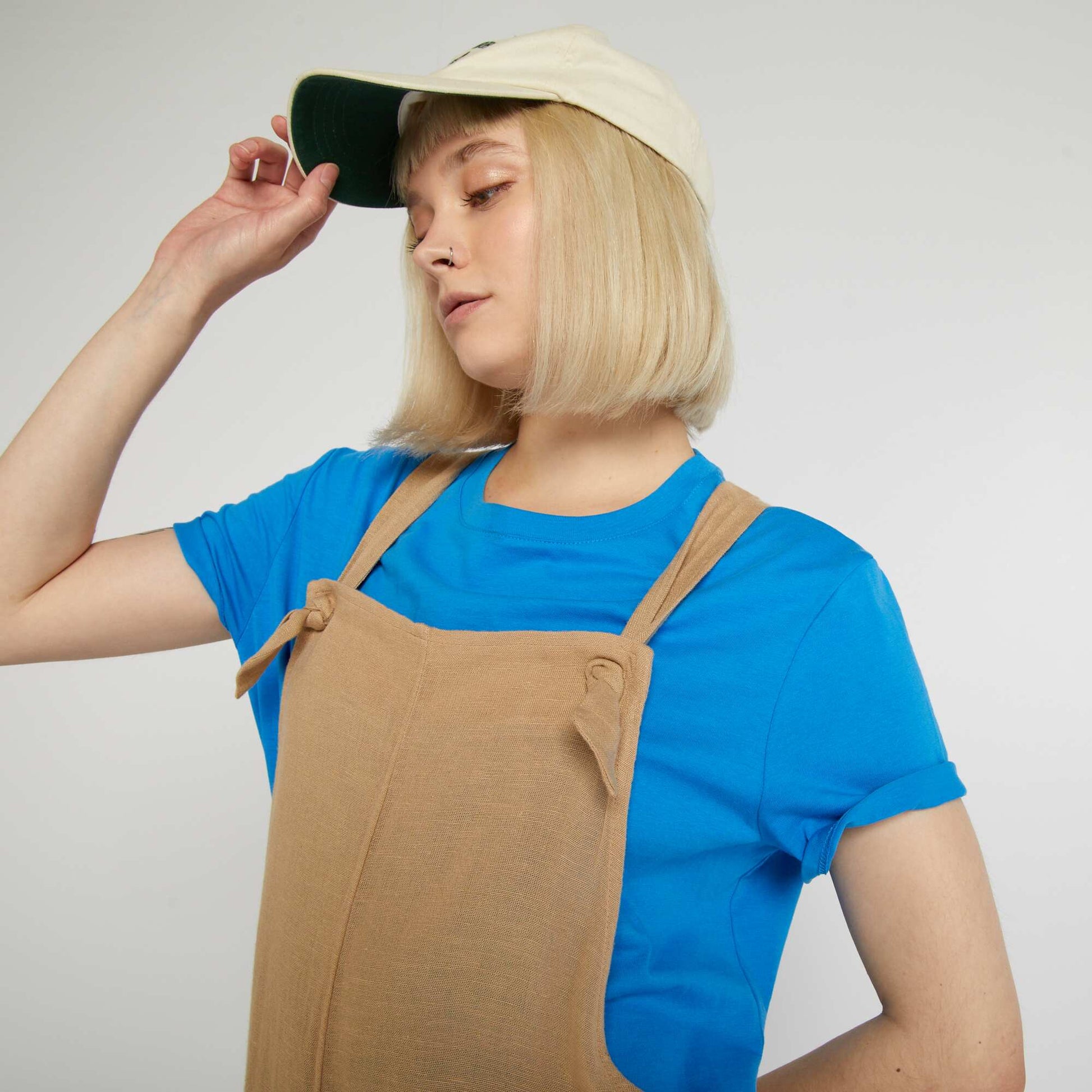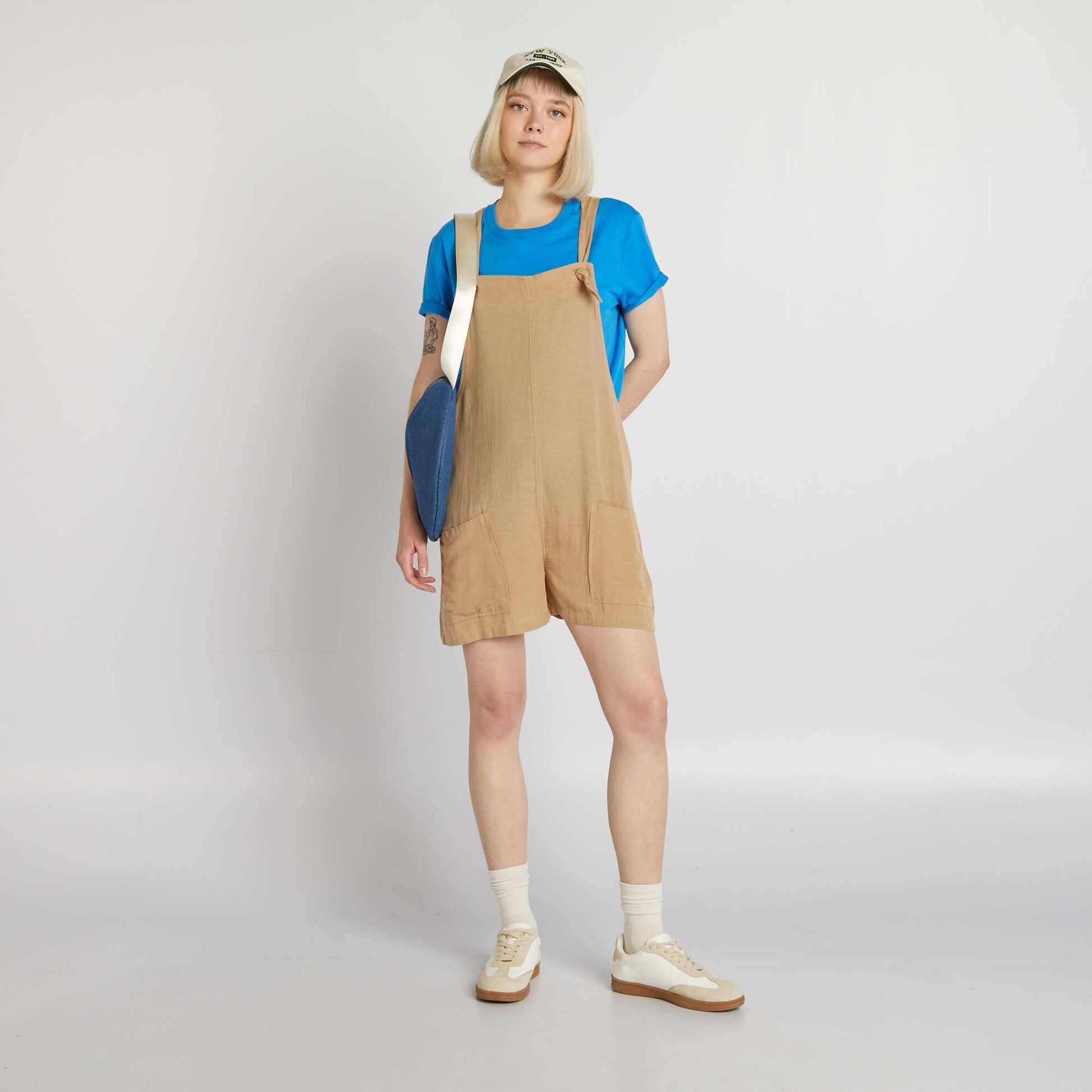 Pour un look ultra d tente ! - Combishort en lin - Mati re fluide - Style salopette - Bretelles nouer - 2 poches - Couleur unie - Notre mannequin porte une taille S et mesure 1m75