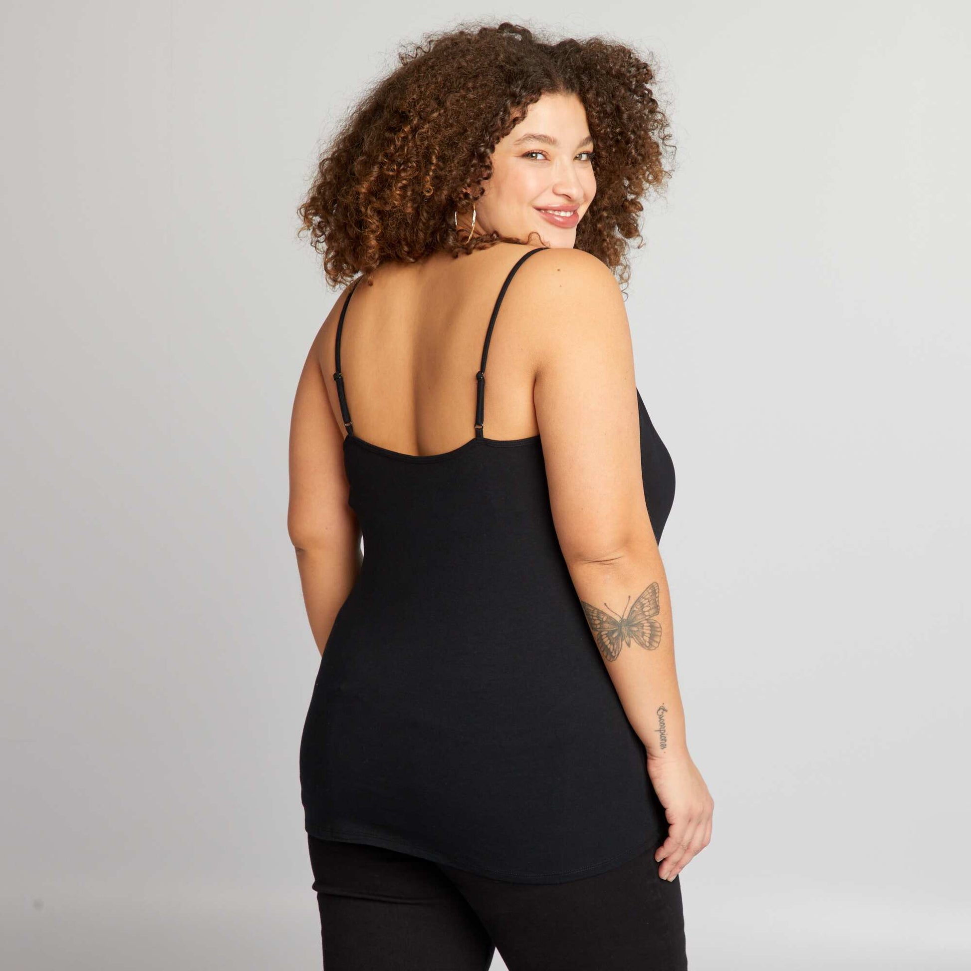 Ce d bardeur est tr s utile enfiler sous un chemisier transparent. Un basique indispensable ! - D bardeur fines bretelles - En jersey - Col V - Bretelles ajustables - Longueur du dos : 64 cm - Notre mannequin porte une taille XL et mesure 1m77