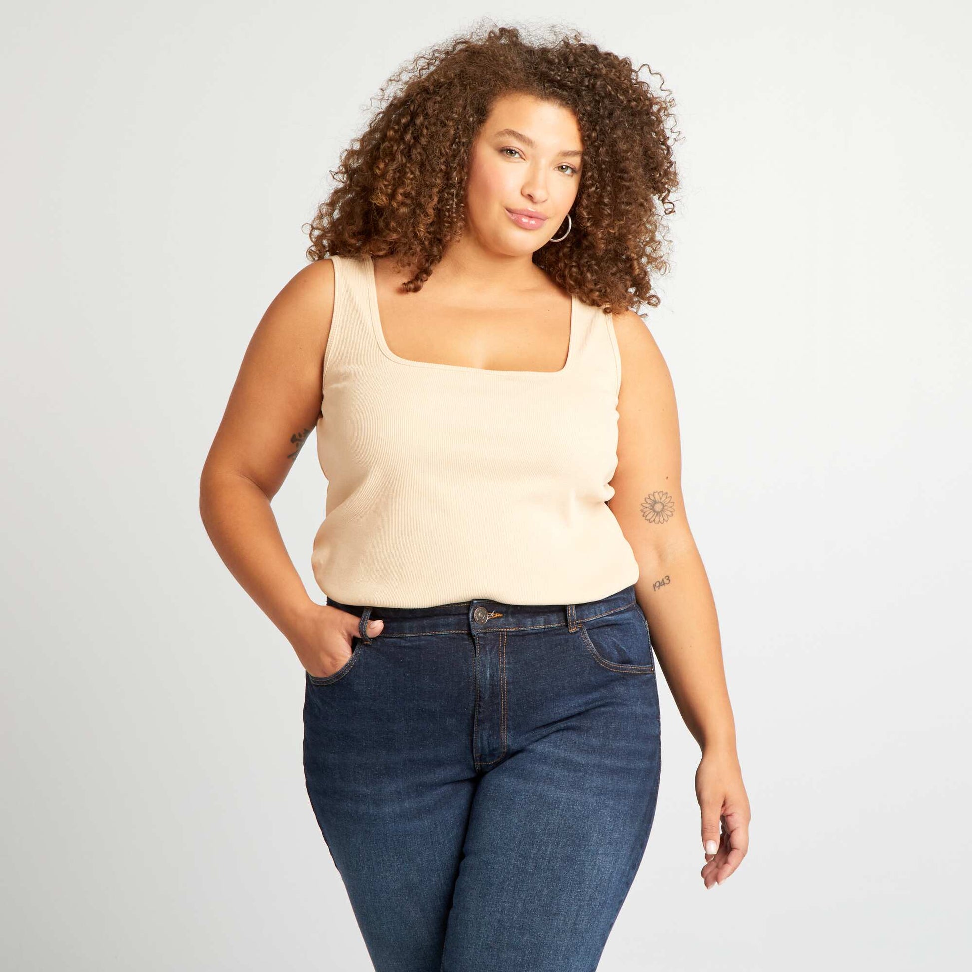 Red finissez vos basiques avec ce d bardeur au col carr ! - D bardeur c tel - Maille ultra-stretch - Encolure carr e - Larges bretelles - Longueur dos : 65 cm environ - Notre mannequin porte une taille XL et mesure 1m75