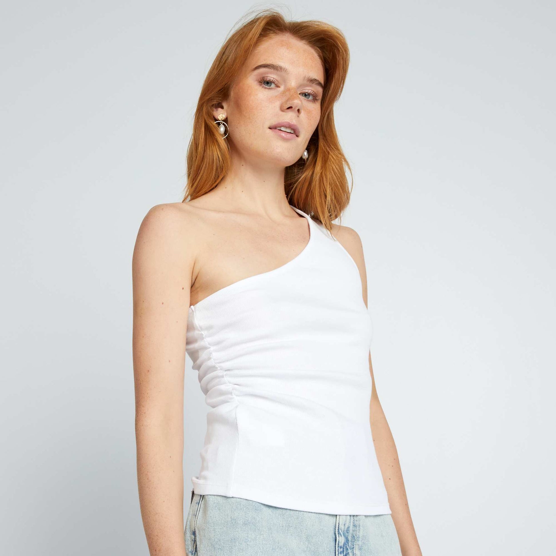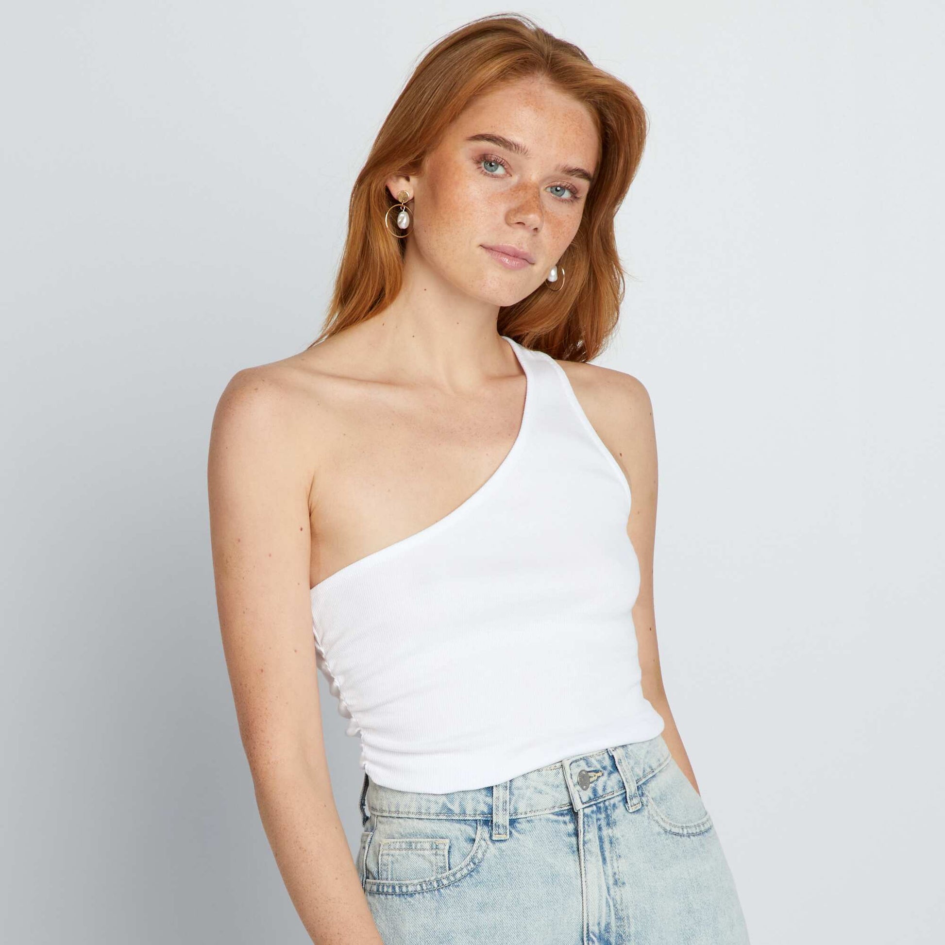 Un d bardeur qui se d marque par sa bretelle asym trique ! - D bardeur c tel - Coton majoritaire - 1 large bretelle - Couleur unie - Longueur dos : 52 cm environ - Notre mannequin porte une taille S et mesure 1m74