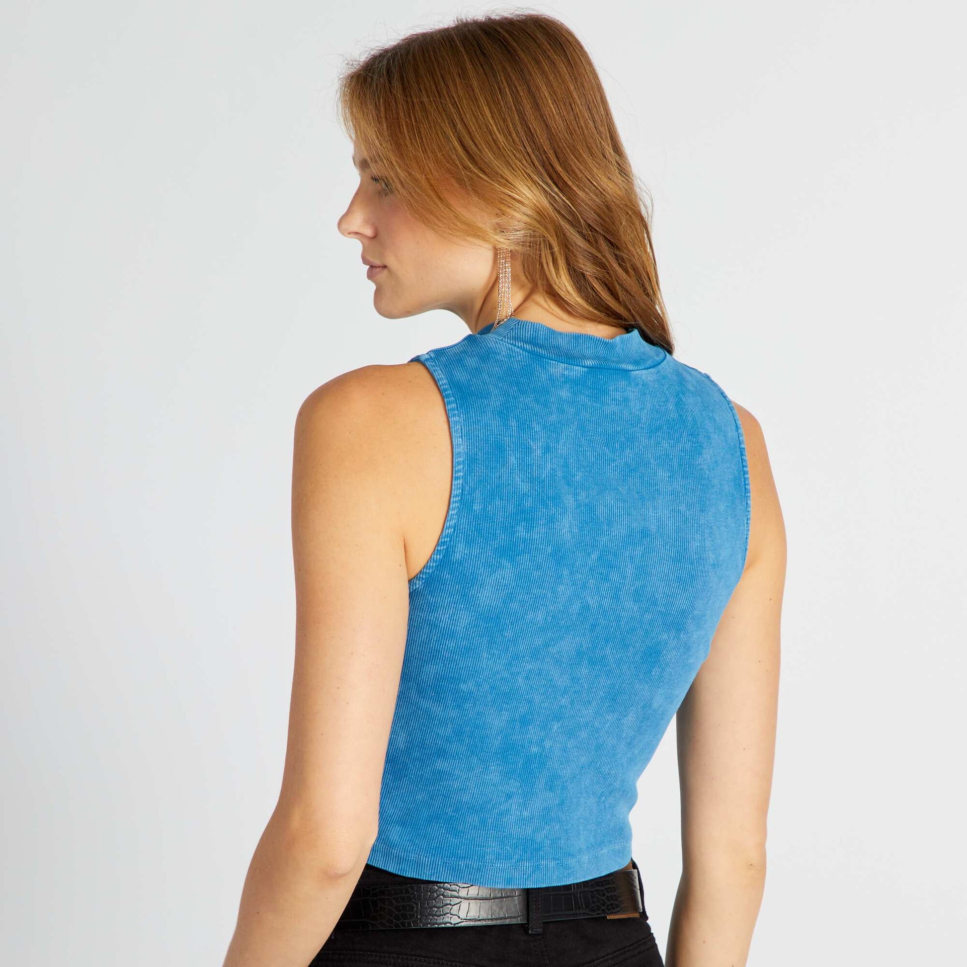 Ce d bardeur est revisit en mode crop top pour un look street ! - D bardeur crop top - En maille c tel e - Col montant - Sans manches - Emmanchures larges - Longueur dos : 45 cm environ - Notre mannequin porte une taille M et mesure 1m75