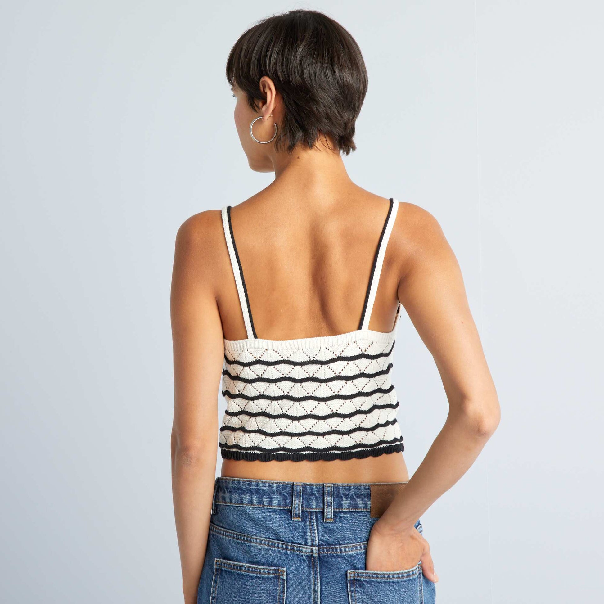 Le d bardeur en crochet fait son grand retour ! C'est la pi ce mode avoir cet t ! - D bardeur en crochet - Cropped - Col V - Bretelles fines non ajustables - Longueur dos (hors bretelles) : 32 cm environ - Notre mannequin porte une taille S et mesure 1m78