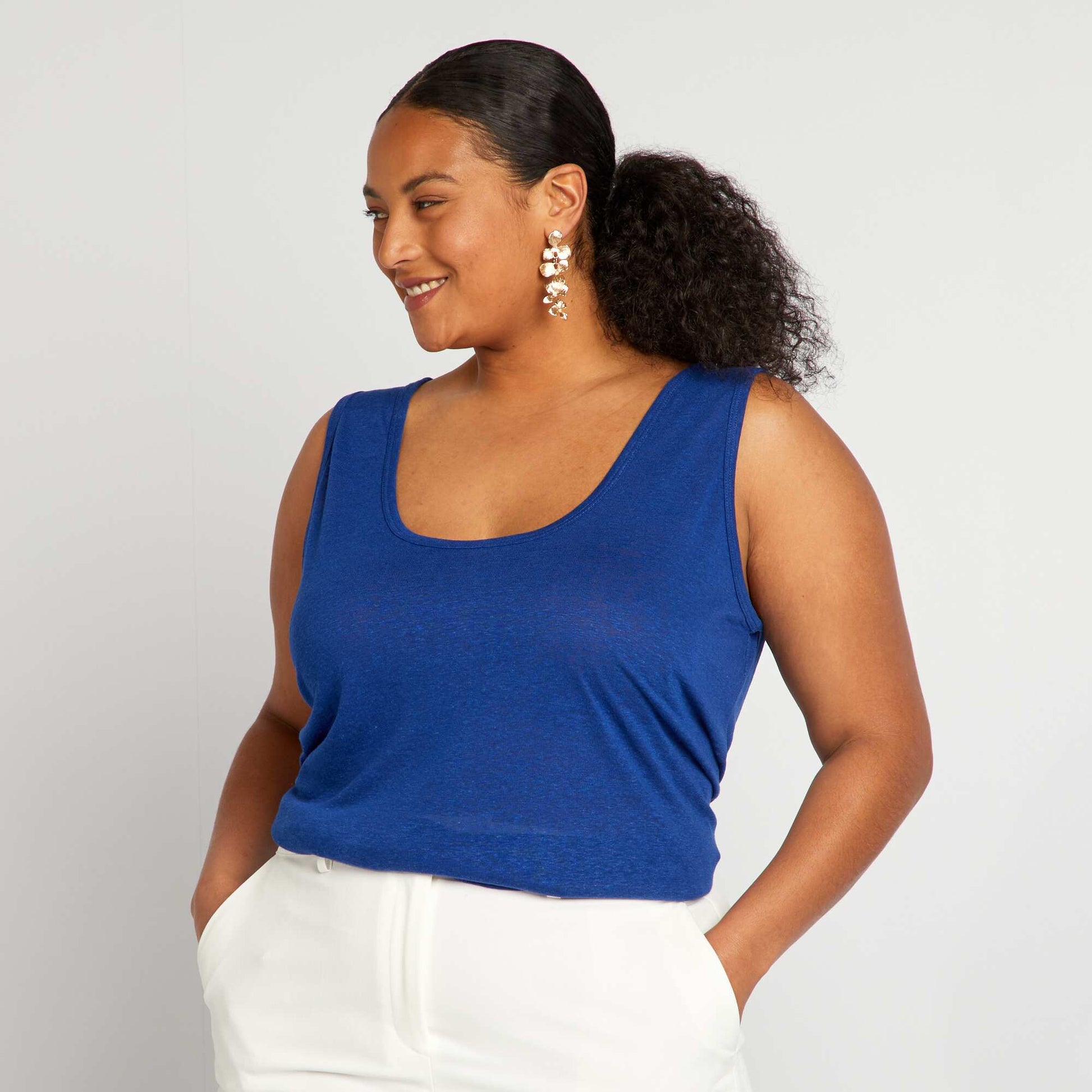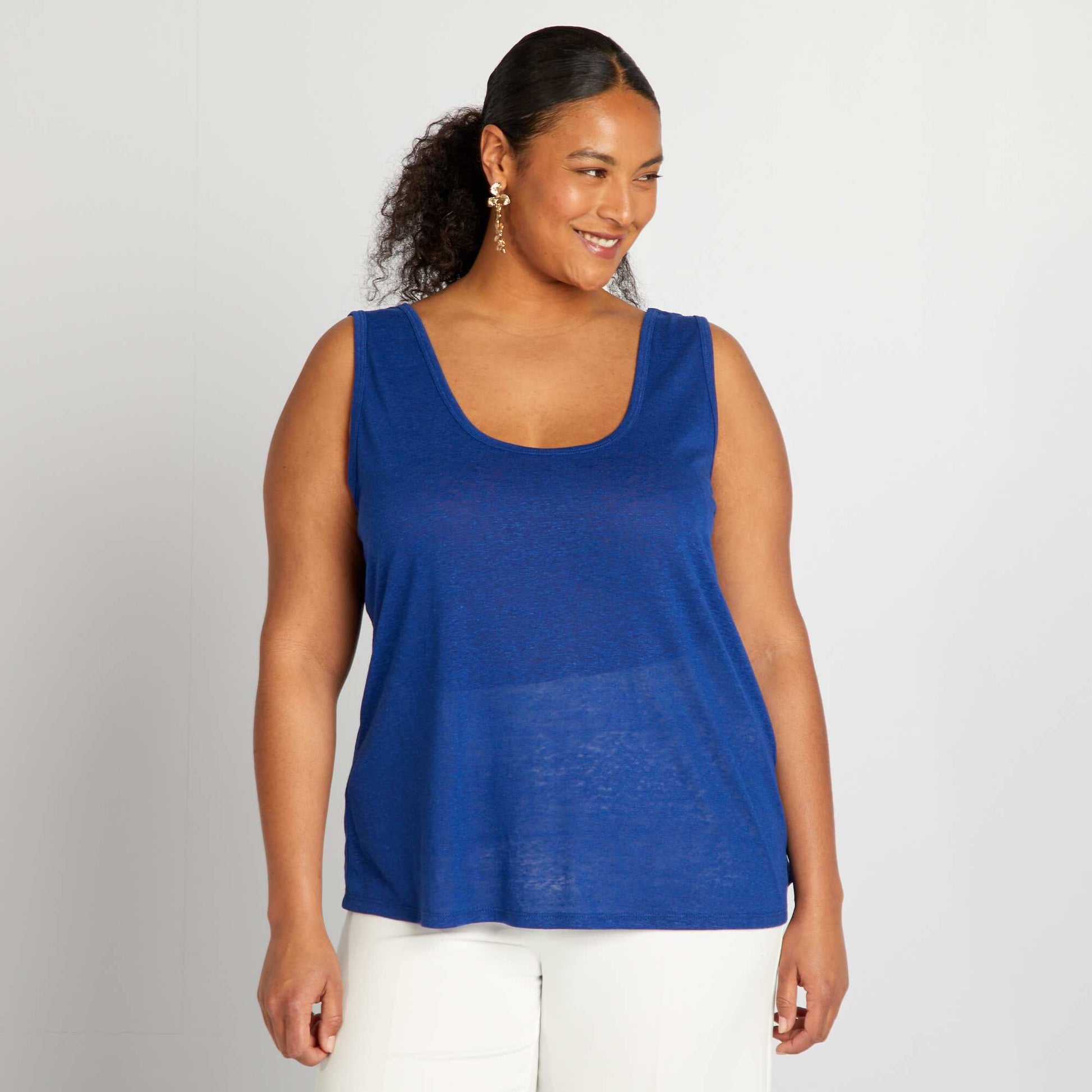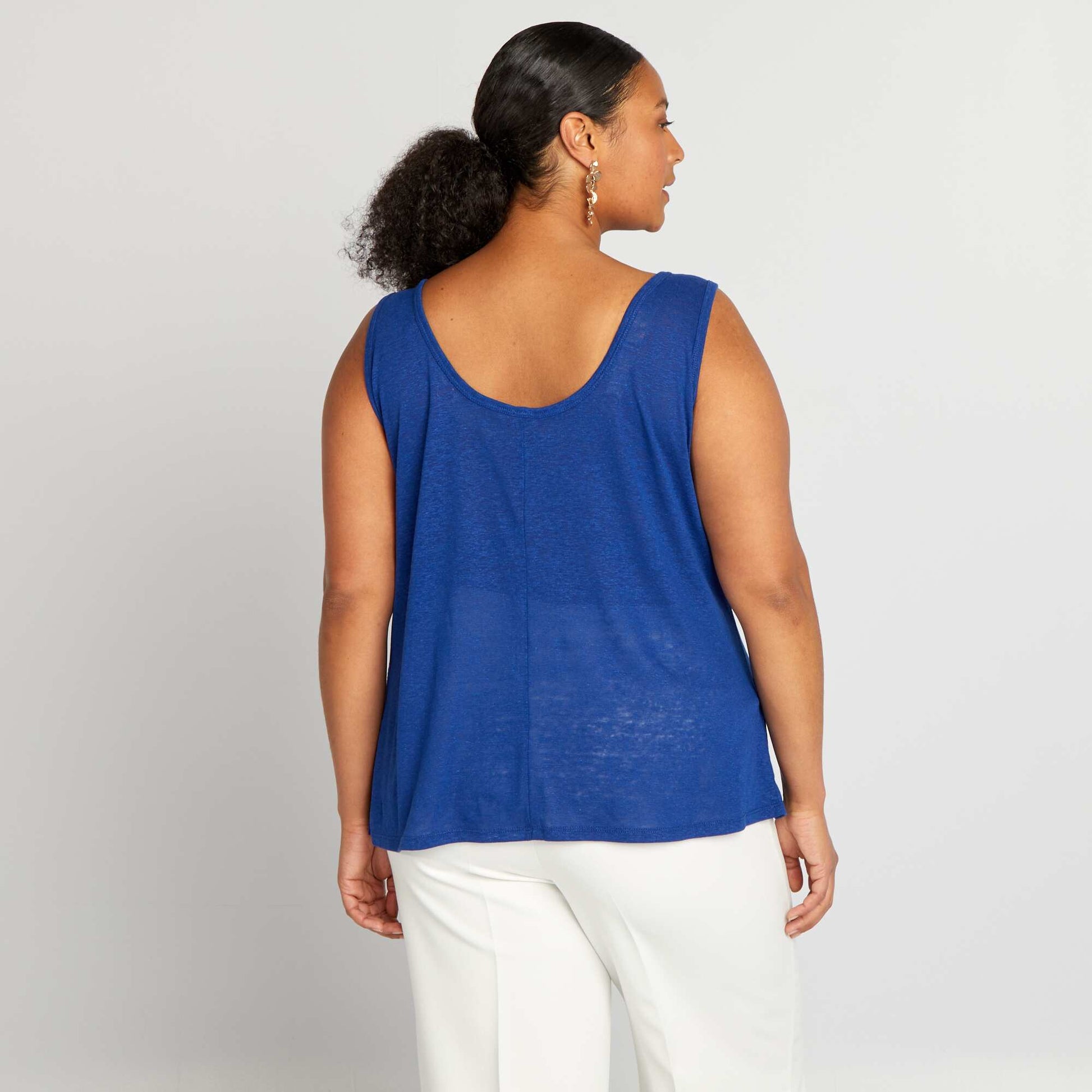 Parfait pour les journ es ensoleill es, ce haut l ger et a rien vous offre un confort optimal tout en ajoutant une touche de raffinement votre tenue. - D bardeur fluide - En lin m lang - Mati re transparente - Sans manches - Larges emmanchures - Encolure ronde - Longueur dos : 70 cm environ - Notre mannequin porte une taille XL et mesure 1m80