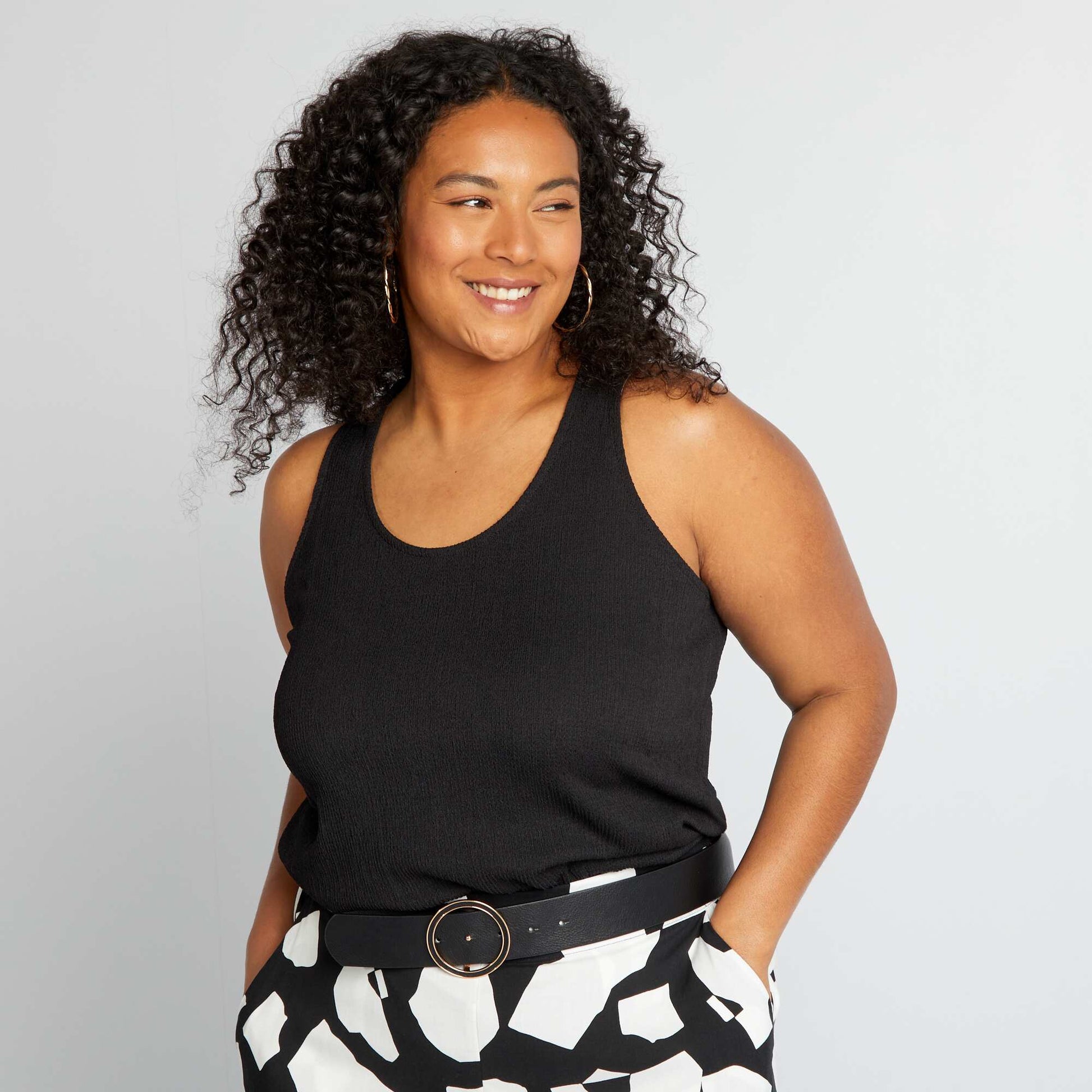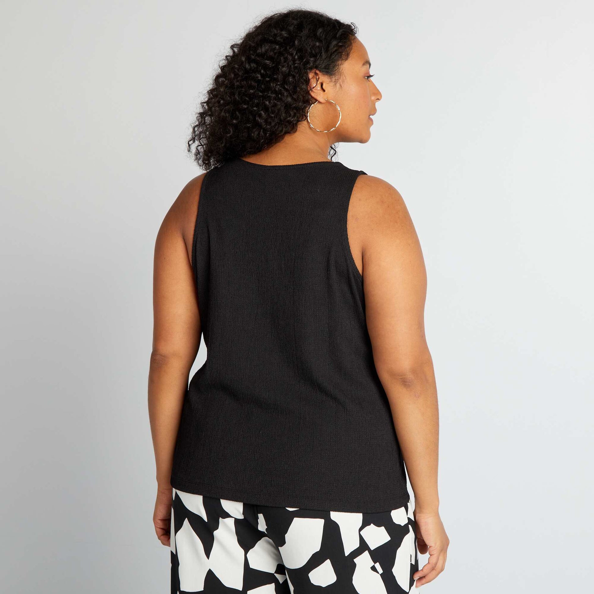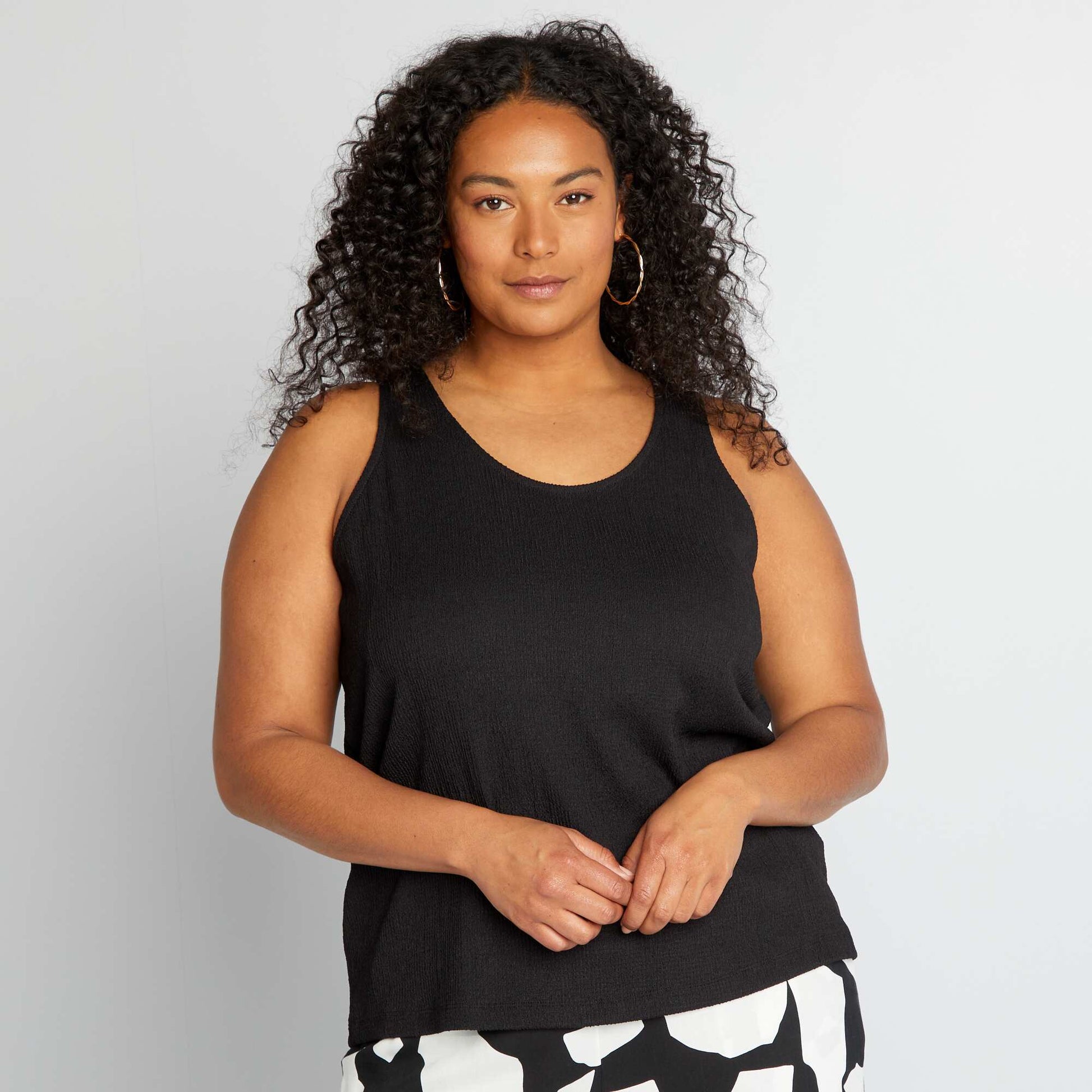 Ajoutez une texture subtile votre look pour une touche de sophistication sans effort. - D bardeur large - En maille gaufr e - Mati re stretch - Sans manches - Encolure ronde - Longueur dos : 65 cm environ - Notre mannequin porte une taille XL et mesure 1m80