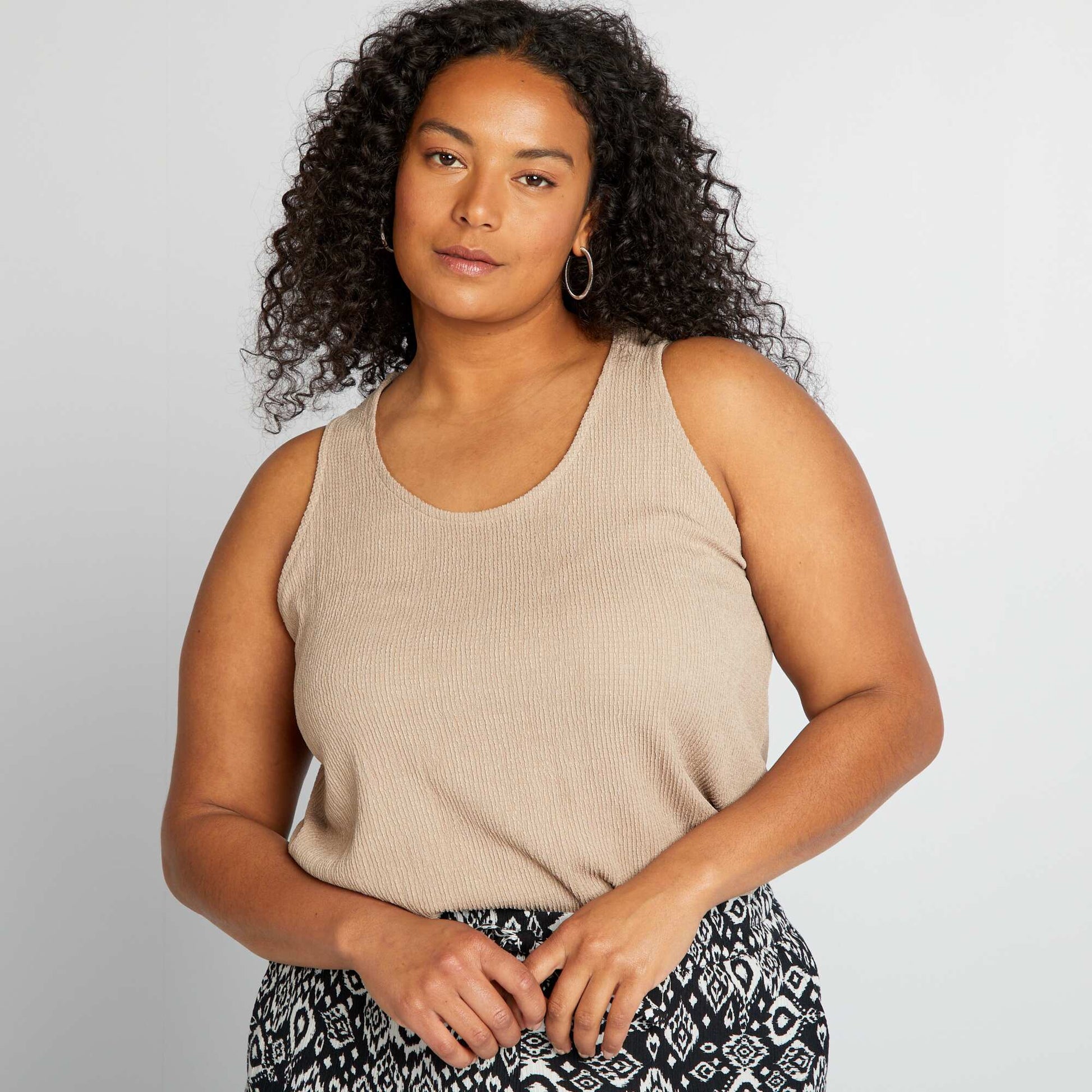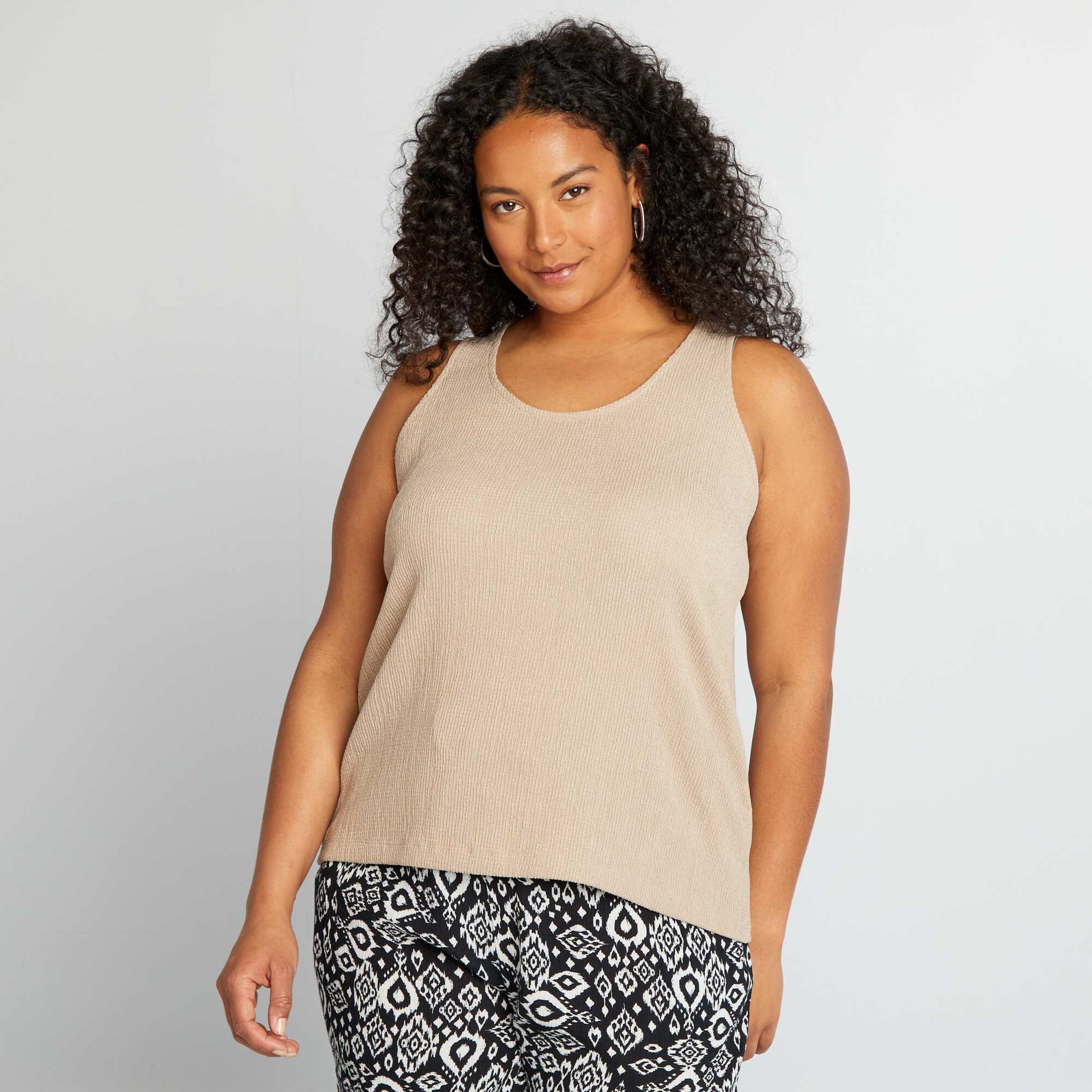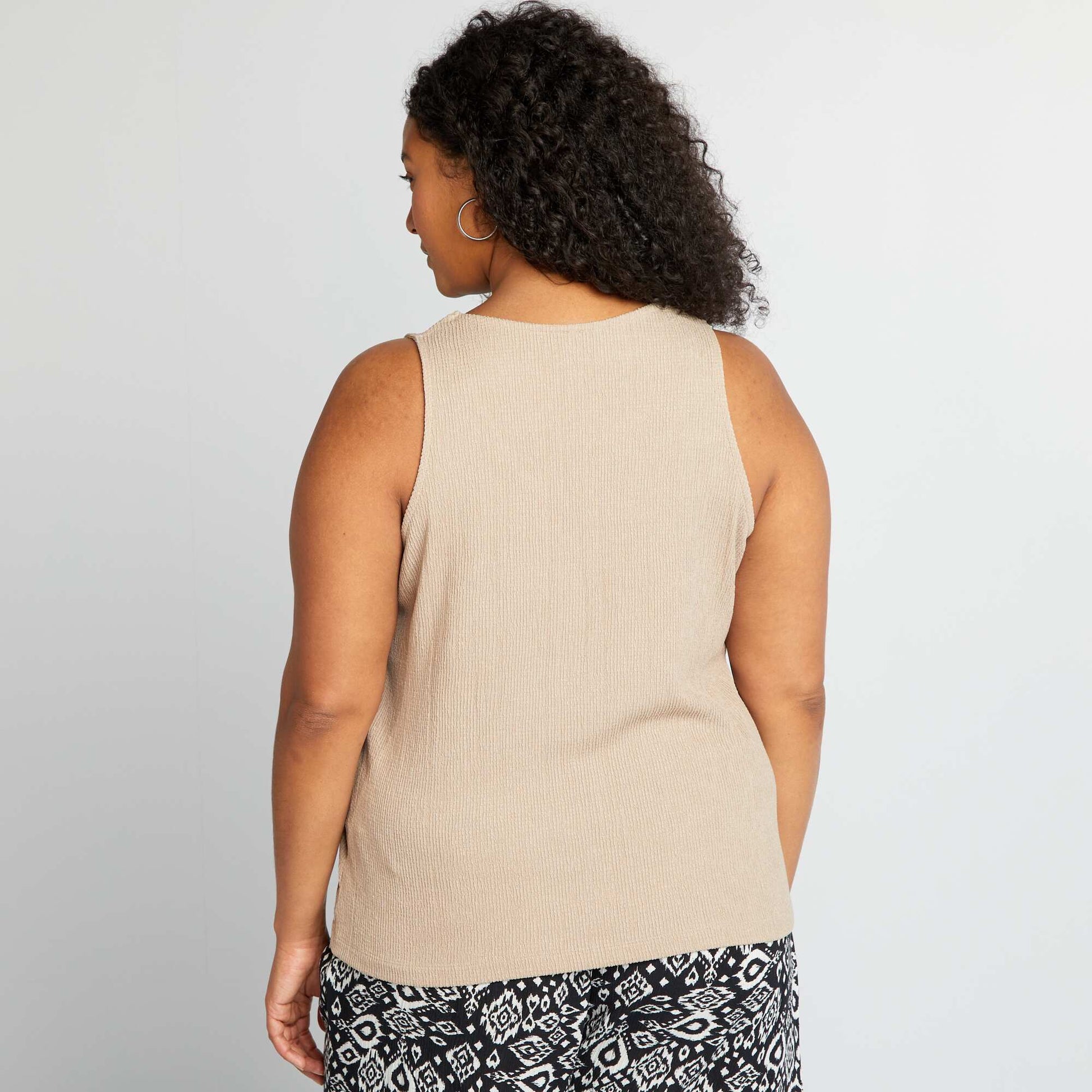 Ajoutez une texture subtile votre look pour une touche de sophistication sans effort. - D bardeur large - En maille gaufr e - Mati re stretch - Sans manches - Encolure ronde - Longueur dos : 65 cm environ - Notre mannequin porte une taille XL et mesure 1m80