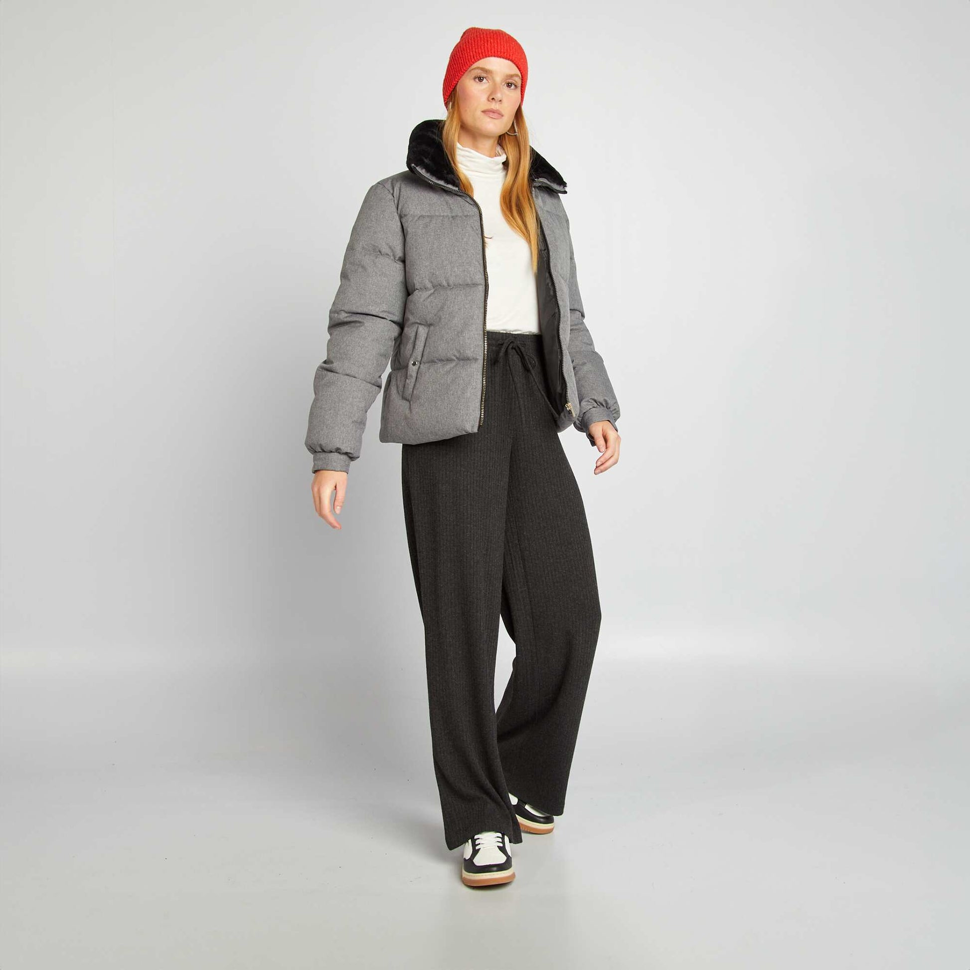Doudoune zippée en flanelle GRIS