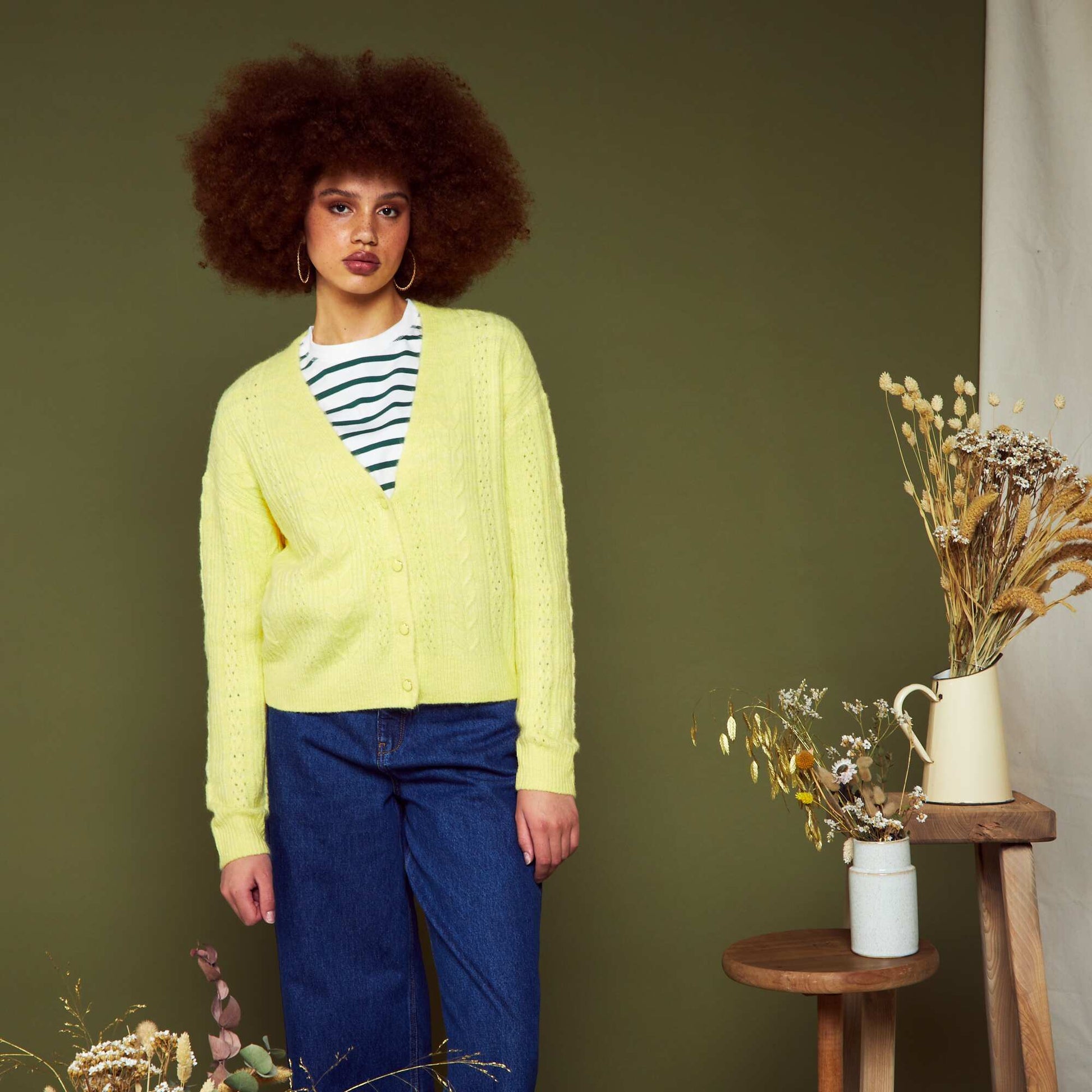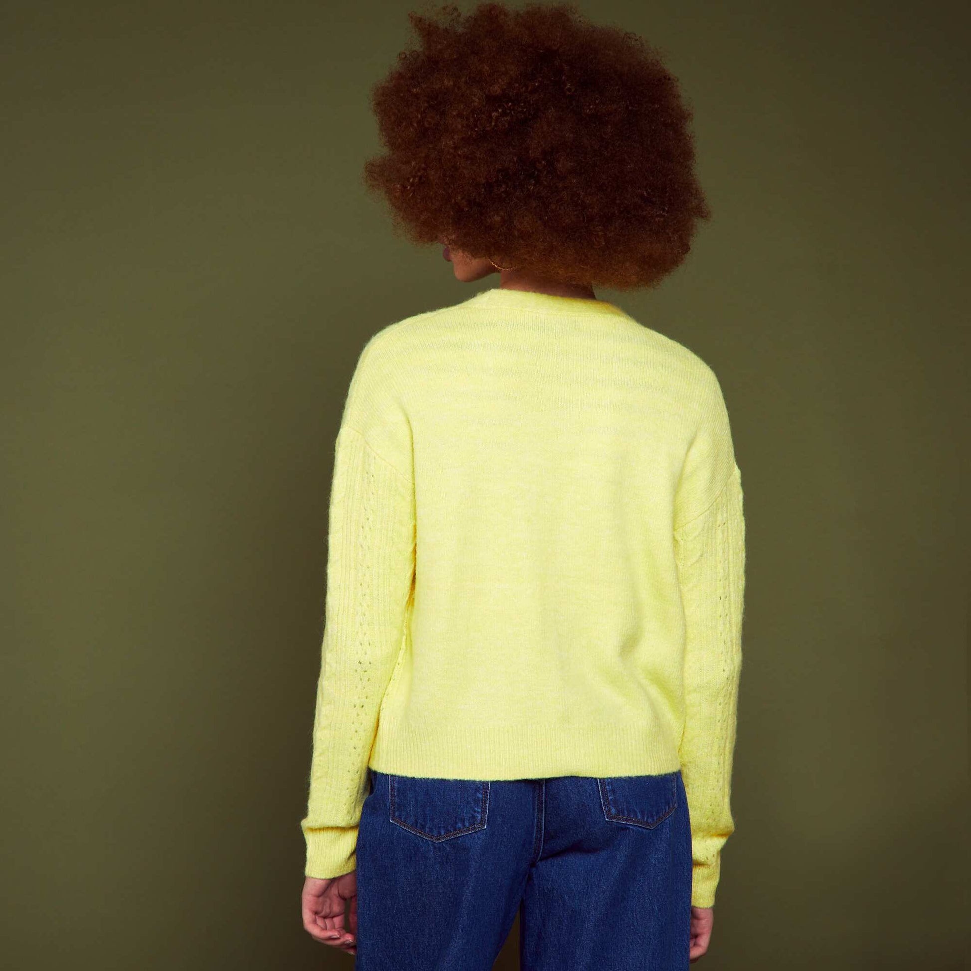 Gilet boutonn en maille ajour e Jaune