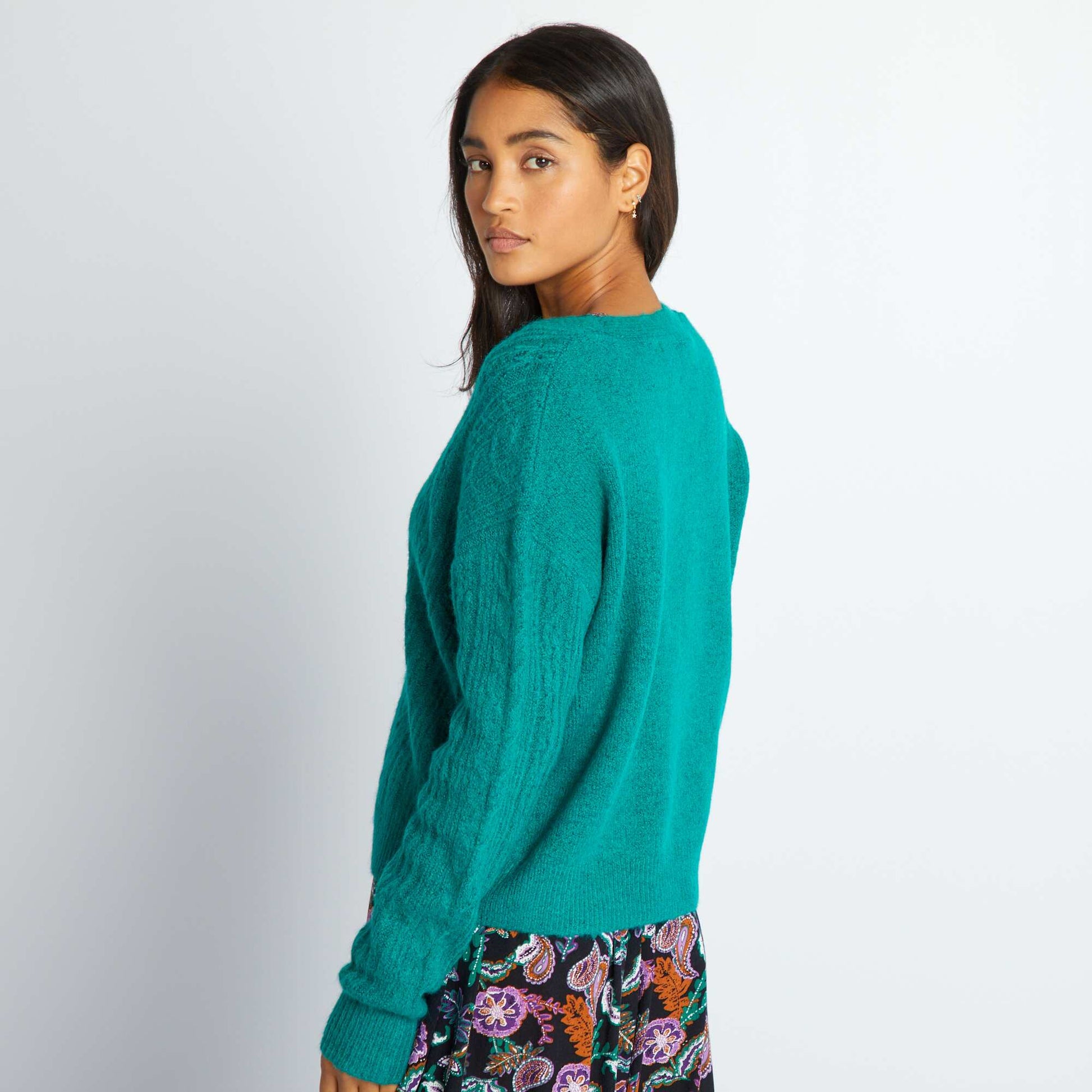 Le gilet d clin en une palette de couleurs pour l' t ! - Gilet en maille - Maille crois e et ajour e - Large encolure en V - Ouverture boutonn e ton sur ton - Finitions bords-c tes - Longueur dos : 59 cm environ - Notre mannequin porte une taille M et mesure 1m75