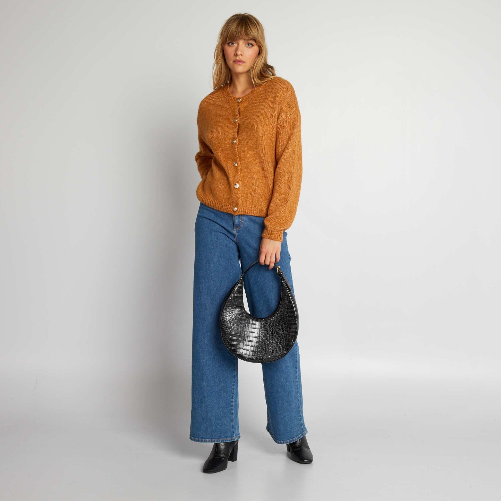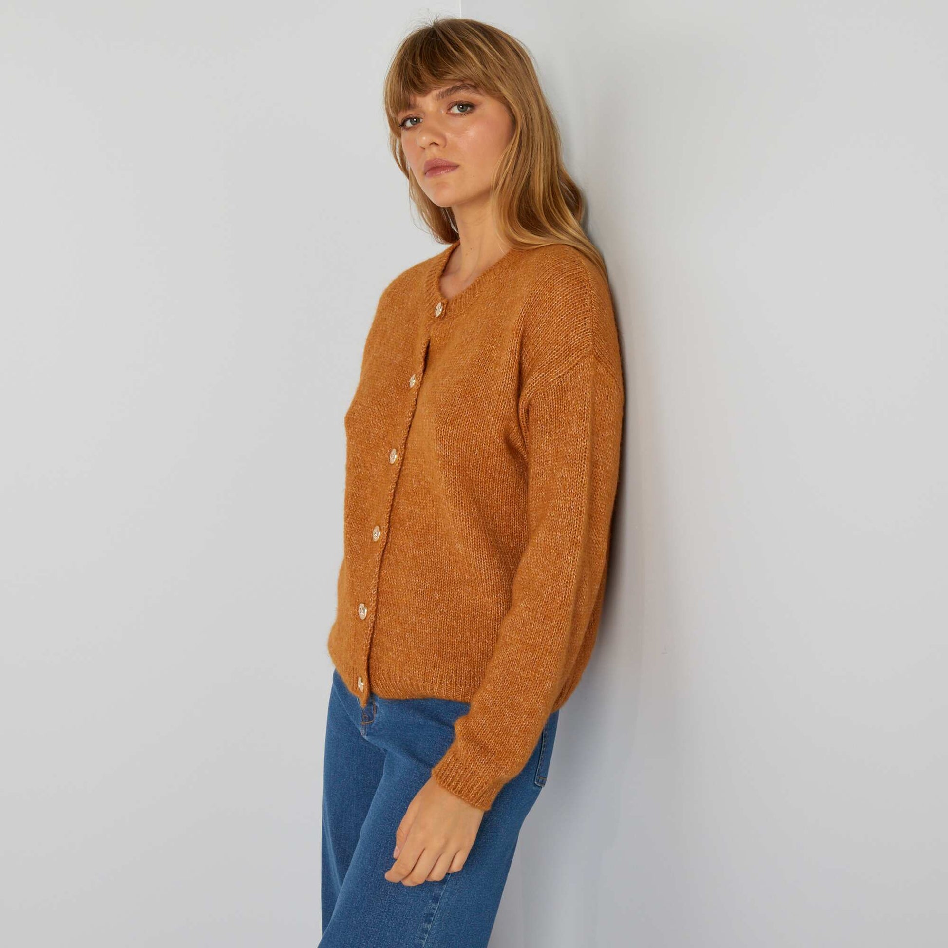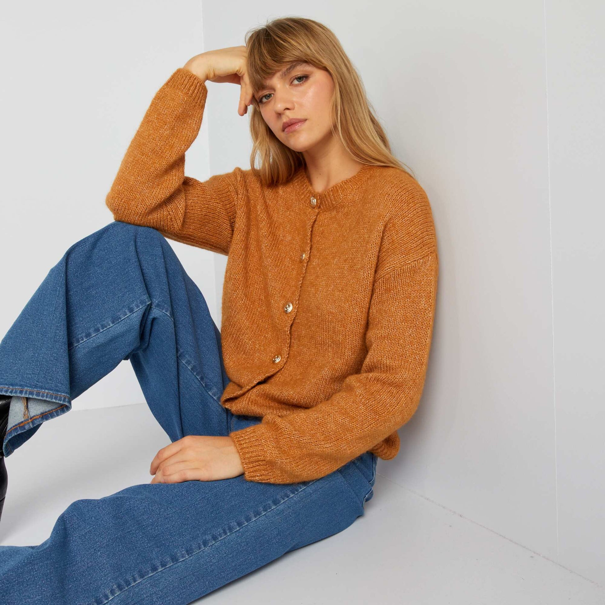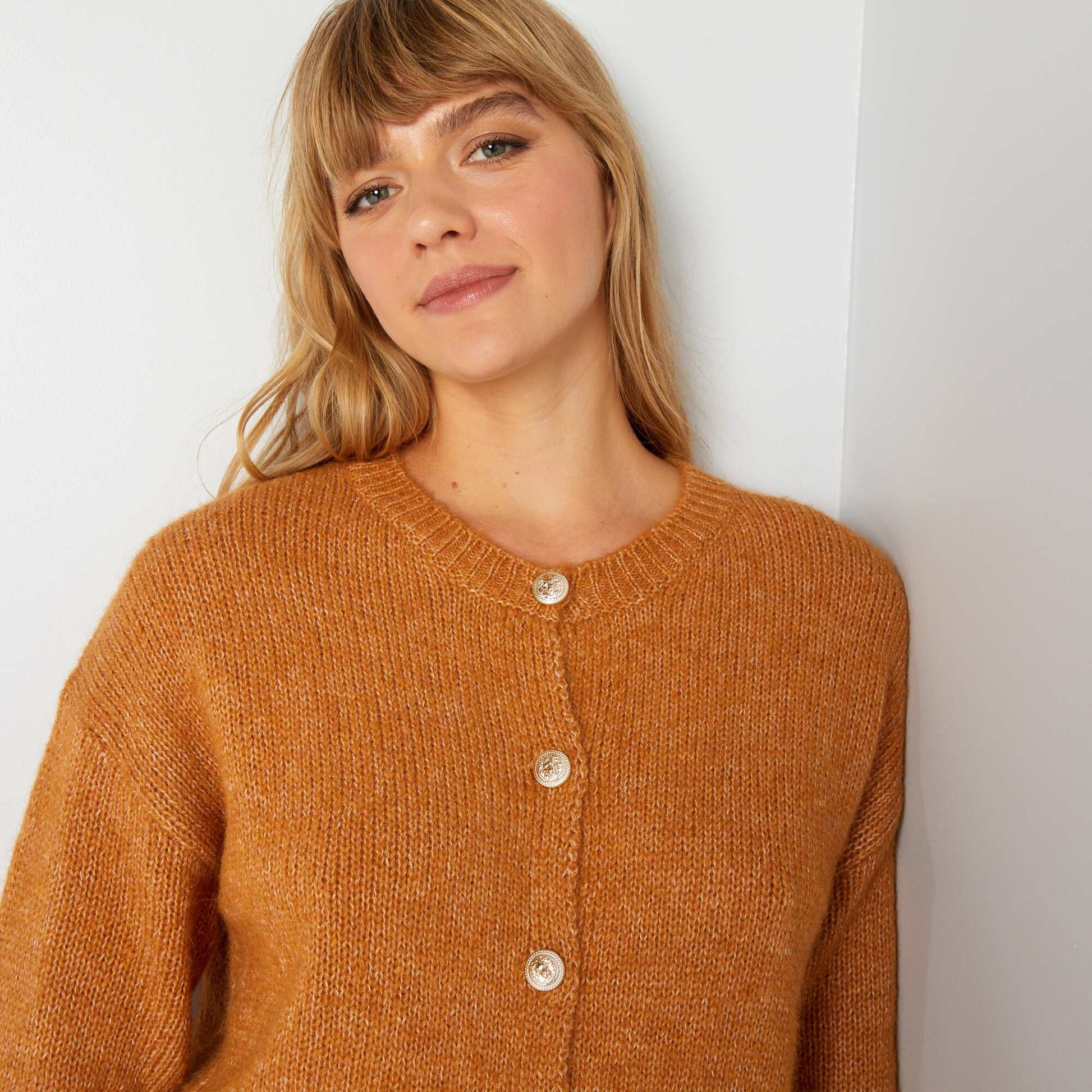 Ce gilet pour femme compl tera sans probl me une garde-robe l gante et actuelle. - Gilet en maille - Col rond - Manches longues - Ouverture boutonn e devant - Finitions bords-c tes - Couleur unie - Longueur dos : 52 cm environ - Notre mannequin porte une taille M et mesure 1m75