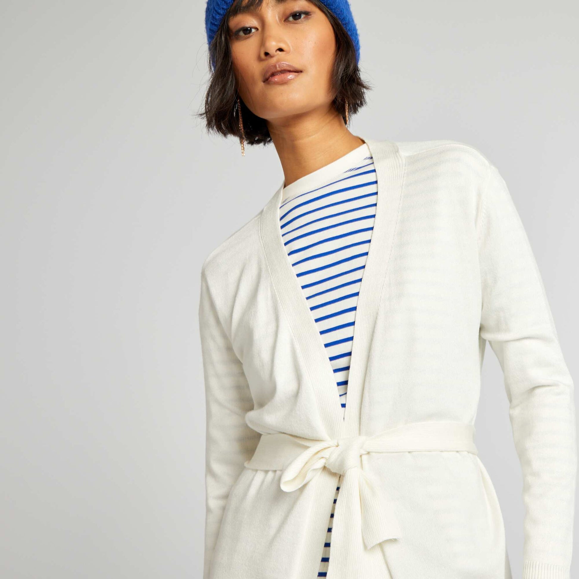 Gilet d contract et moderne : check ! - Gilet extra long ceinture - En maille - Sans col - Manches longues - Finitions bords-c tes - Couleur unie - Notre mannequin porte une taille M et mesure 1m75