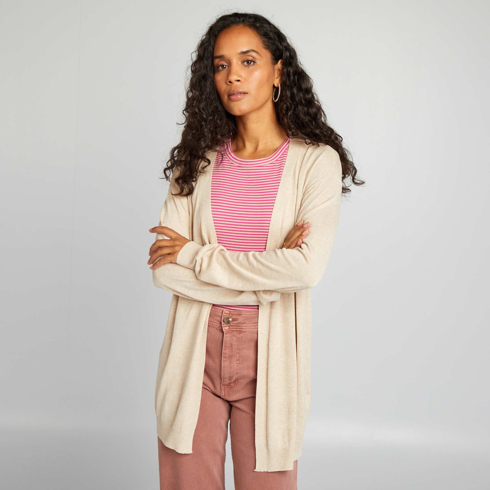 Un indispensable pour les femmes de tout ge. - Gilet long en maille fine - Manches longues - Ouvert - Couleur unie - Longueur du dos : 74 cm - Notre mannequin porte une taille S et mesure 1m75