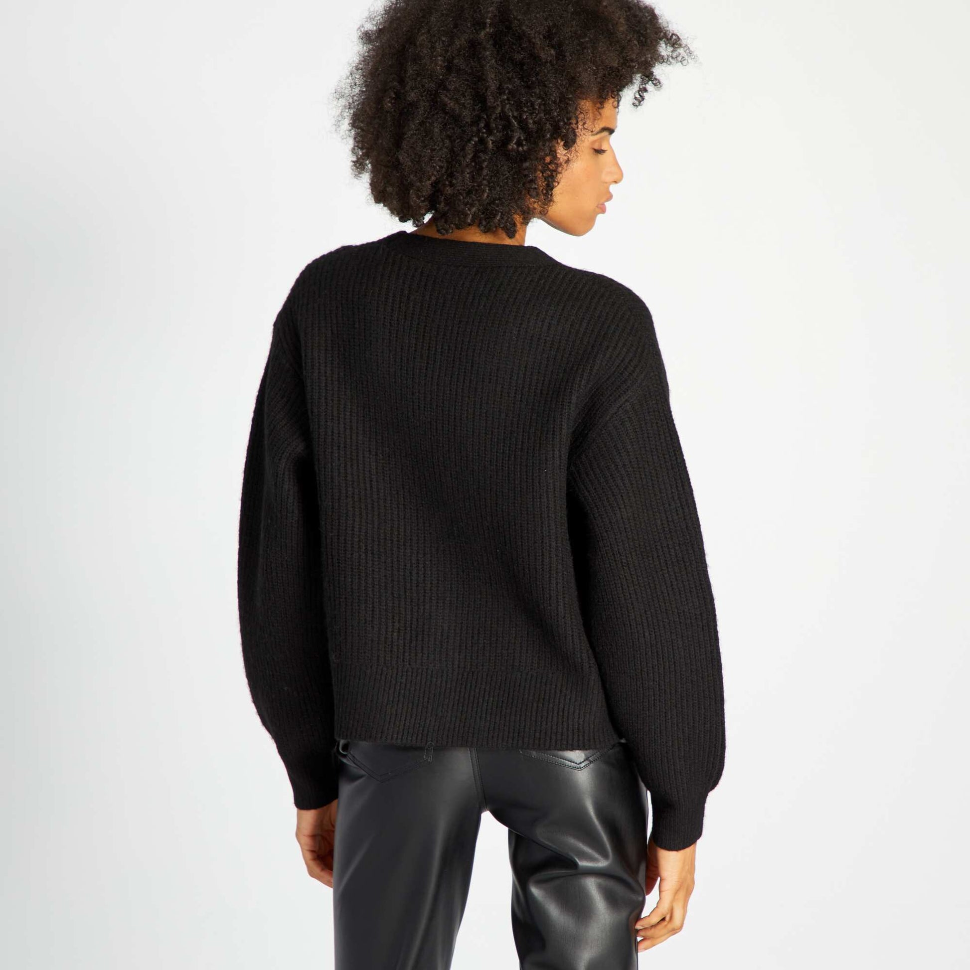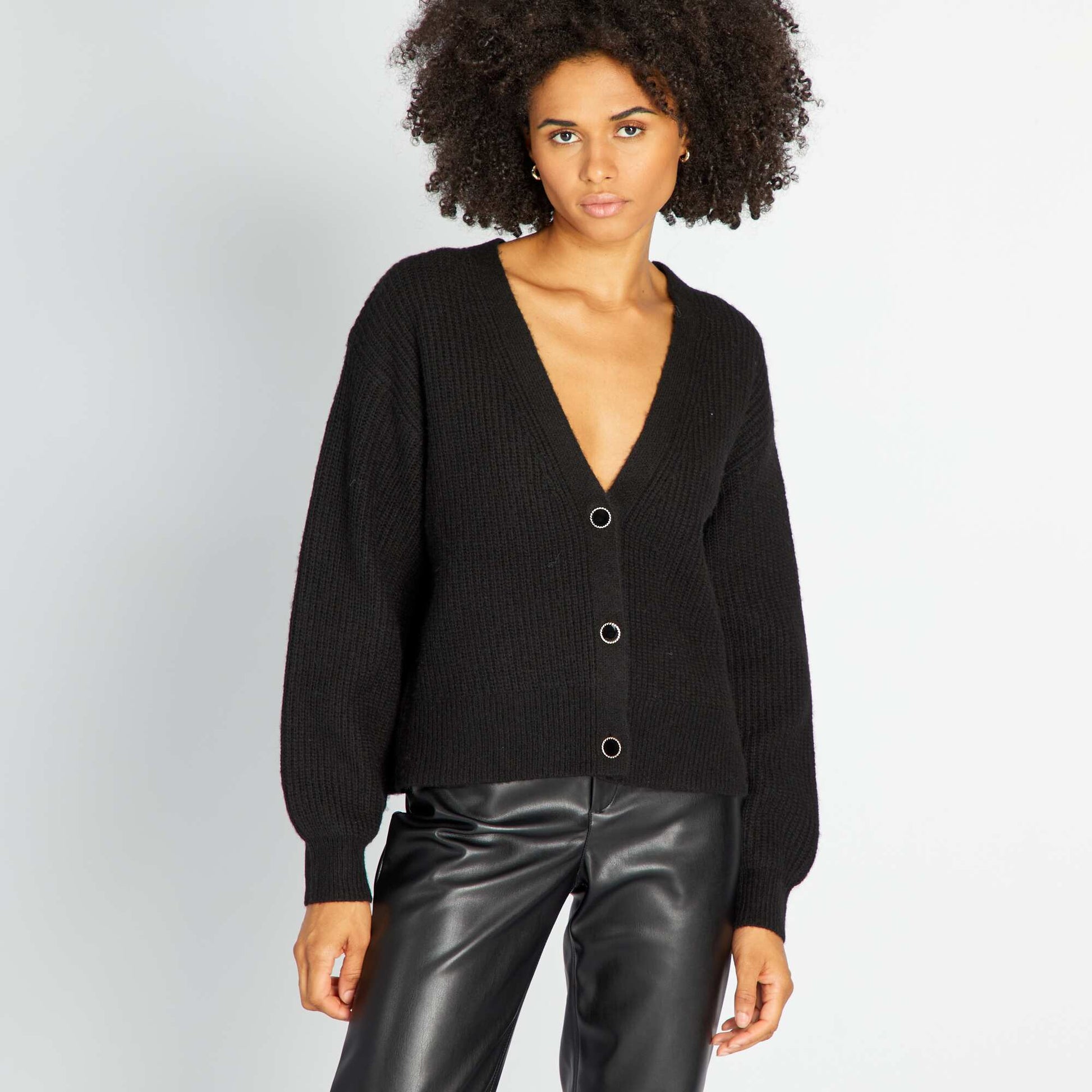 Gilet maille grosse jauge et boutons fantaisie noir
