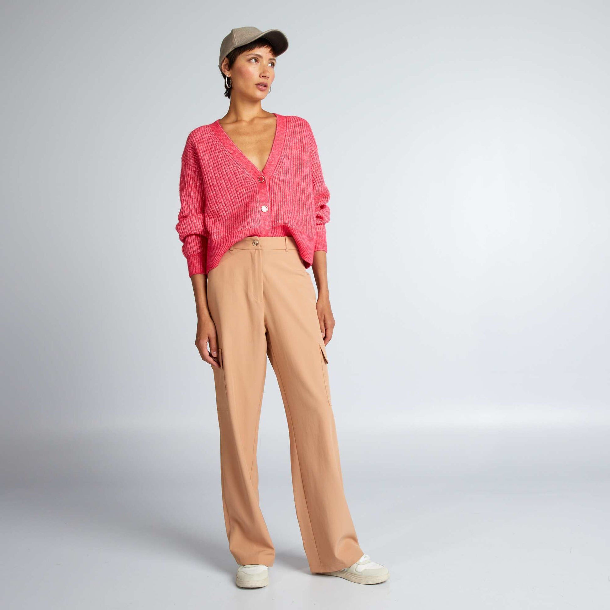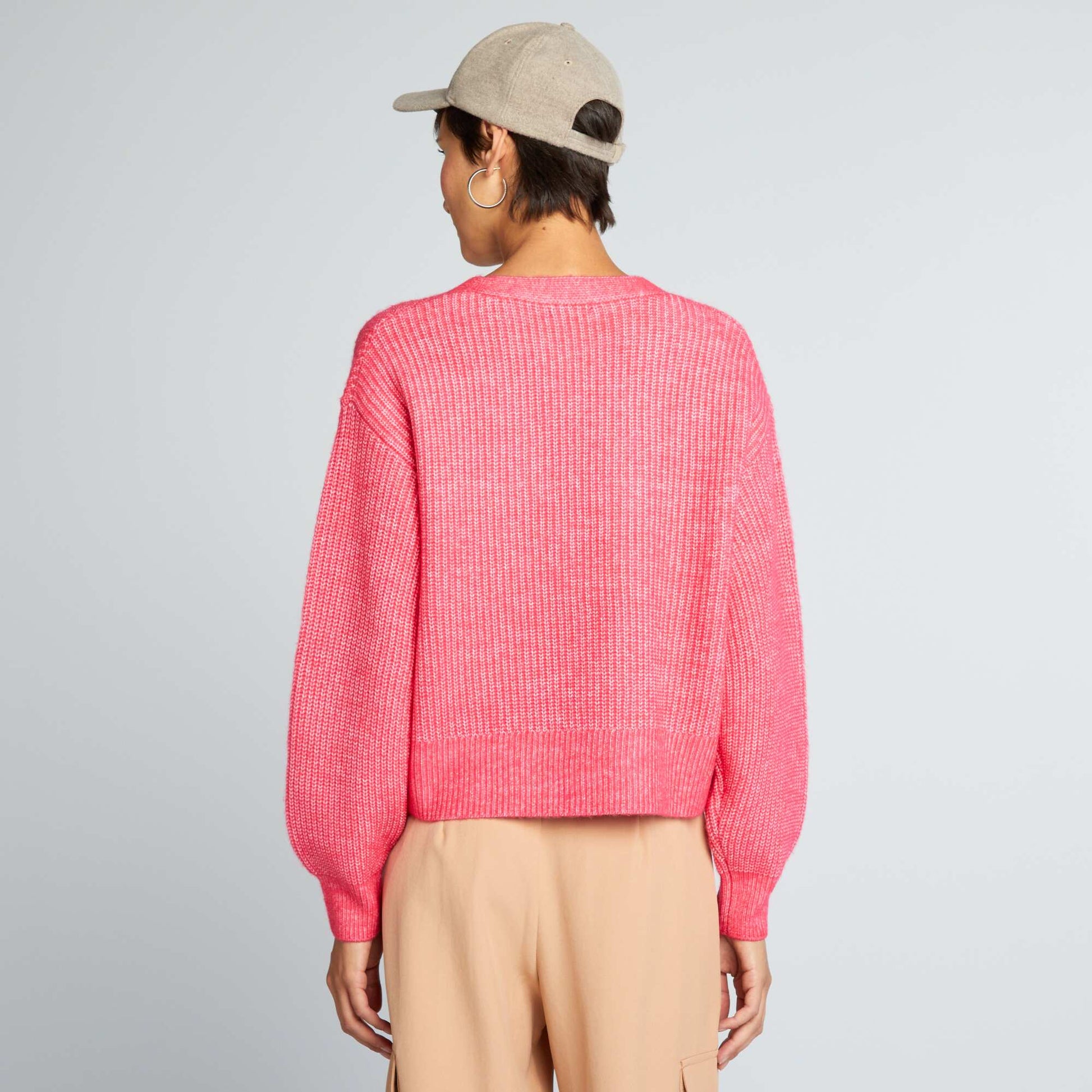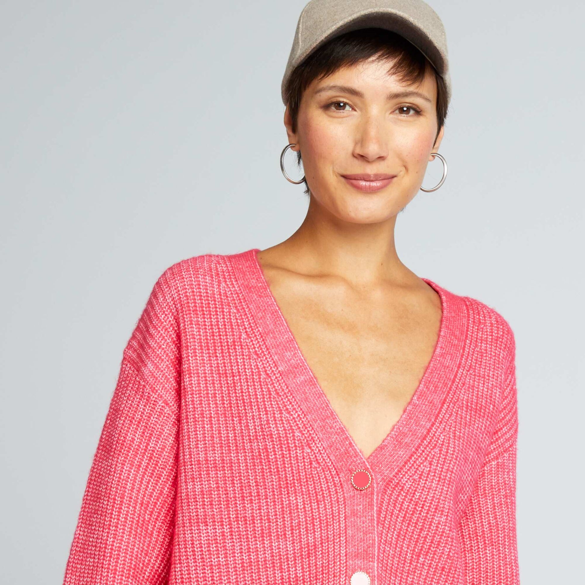 Gilet maille grosse jauge et boutons fantaisie Rose
