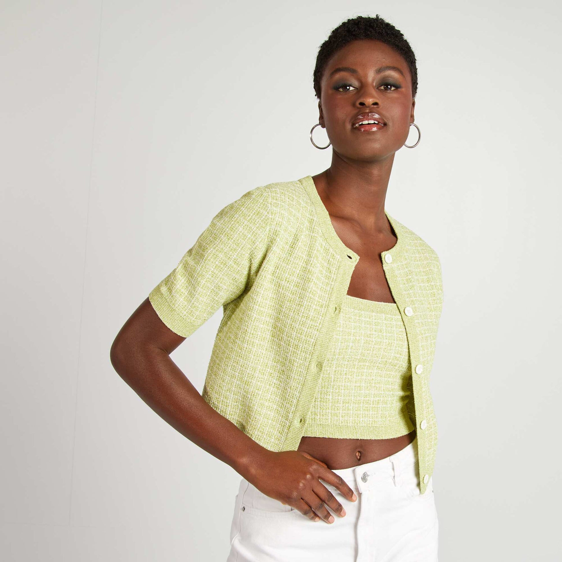 Le gilet vintage qui se modernise avec sa coupe manches courtes. - Gilet manches courtes - Maille carreaux vintage - Encolure ronde - Finitions bords-côtes - Longueur dos : 48 cm environ - Notre mannequin porte une taille S et mesure 1m78