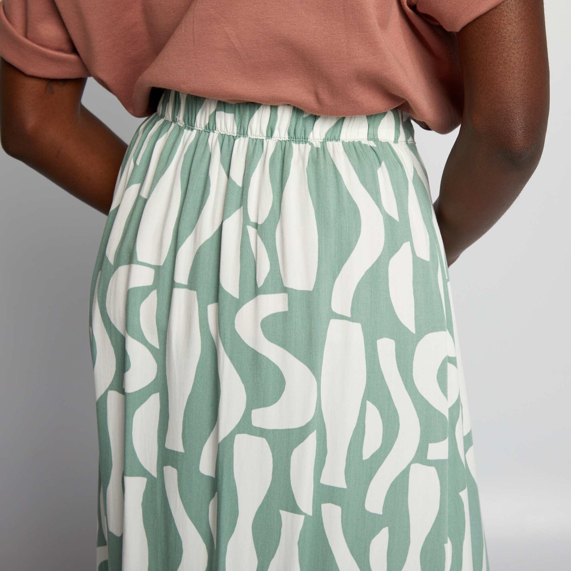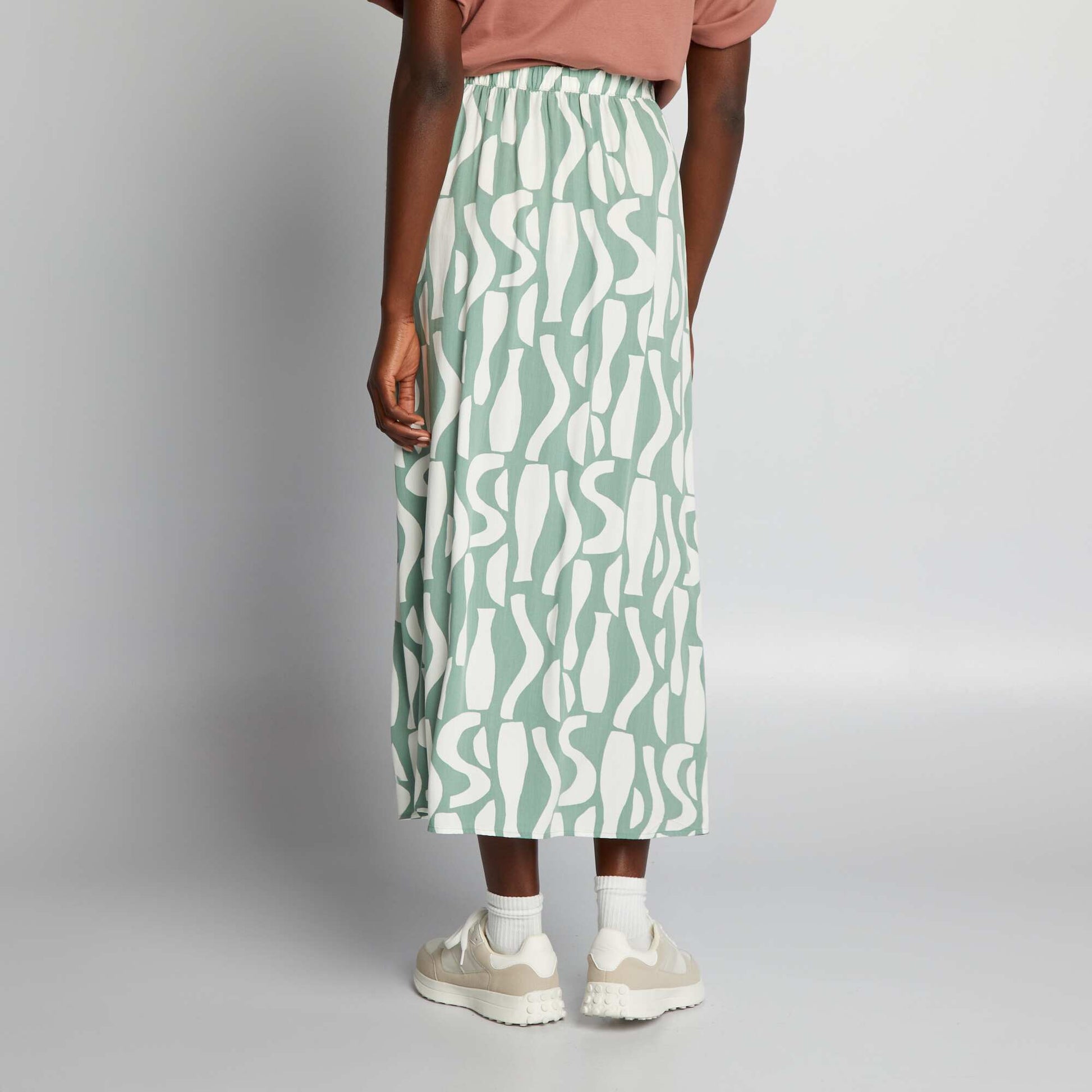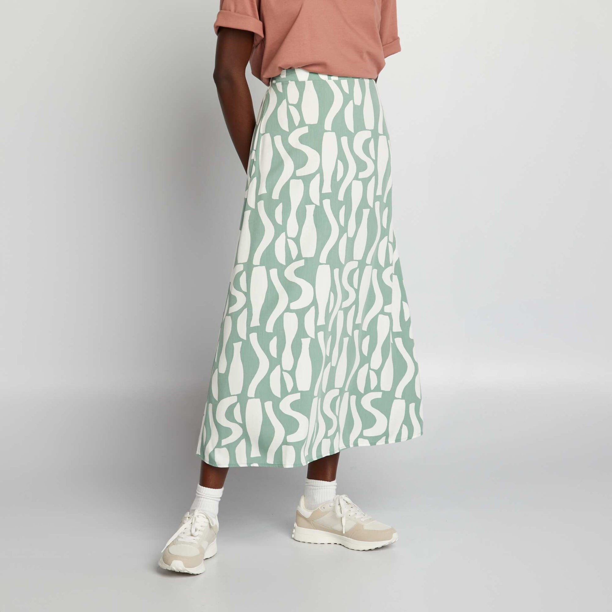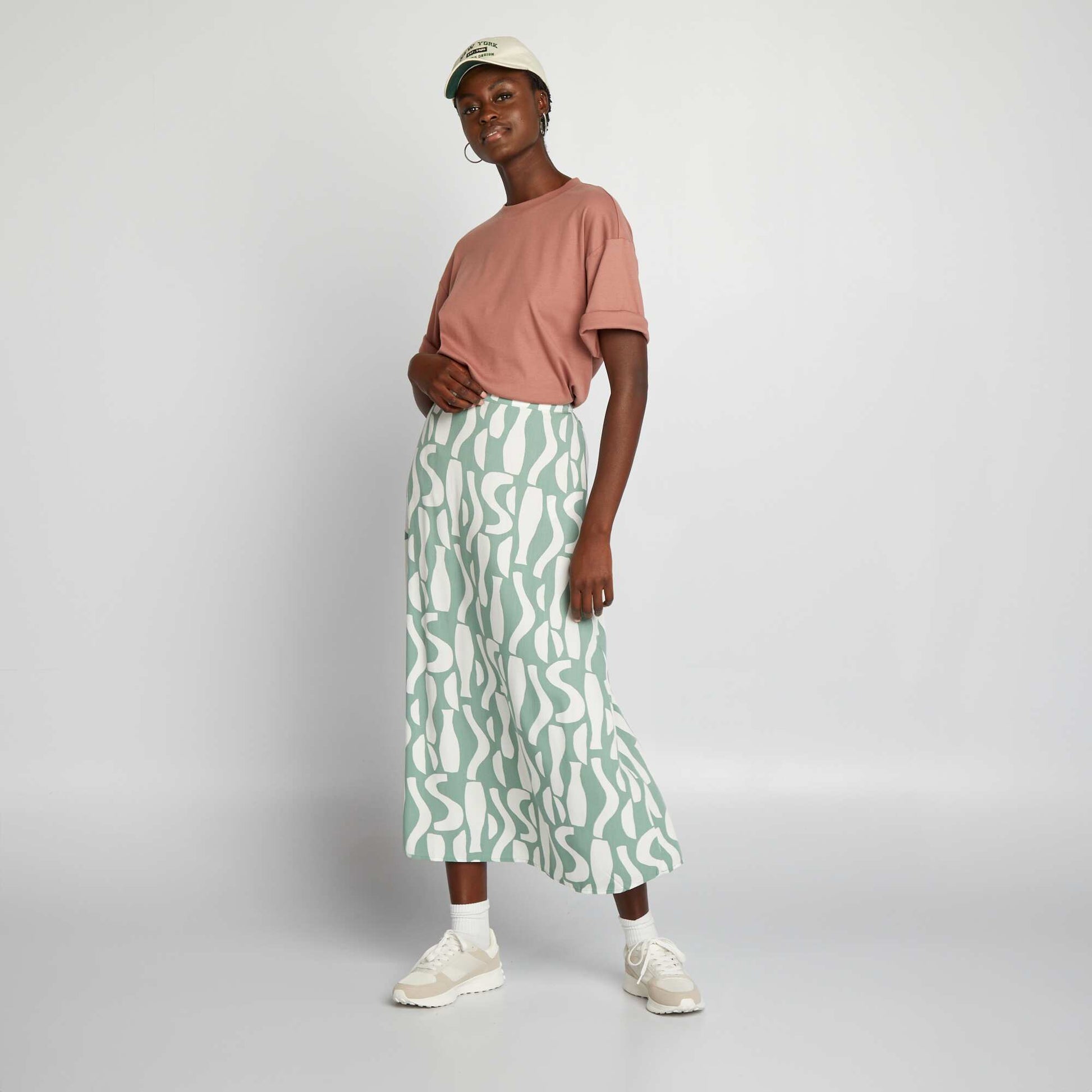 La jupe facile associer avec un tee-shirt coton ou une blouse unie ! - Jupe droite - Mati re fluide et l g re - Taille lastique - Coupe fluide - Imprim motifs - Longueur dos : 87 cm environ - Notre mannequin porte une taille M et mesure 1m75