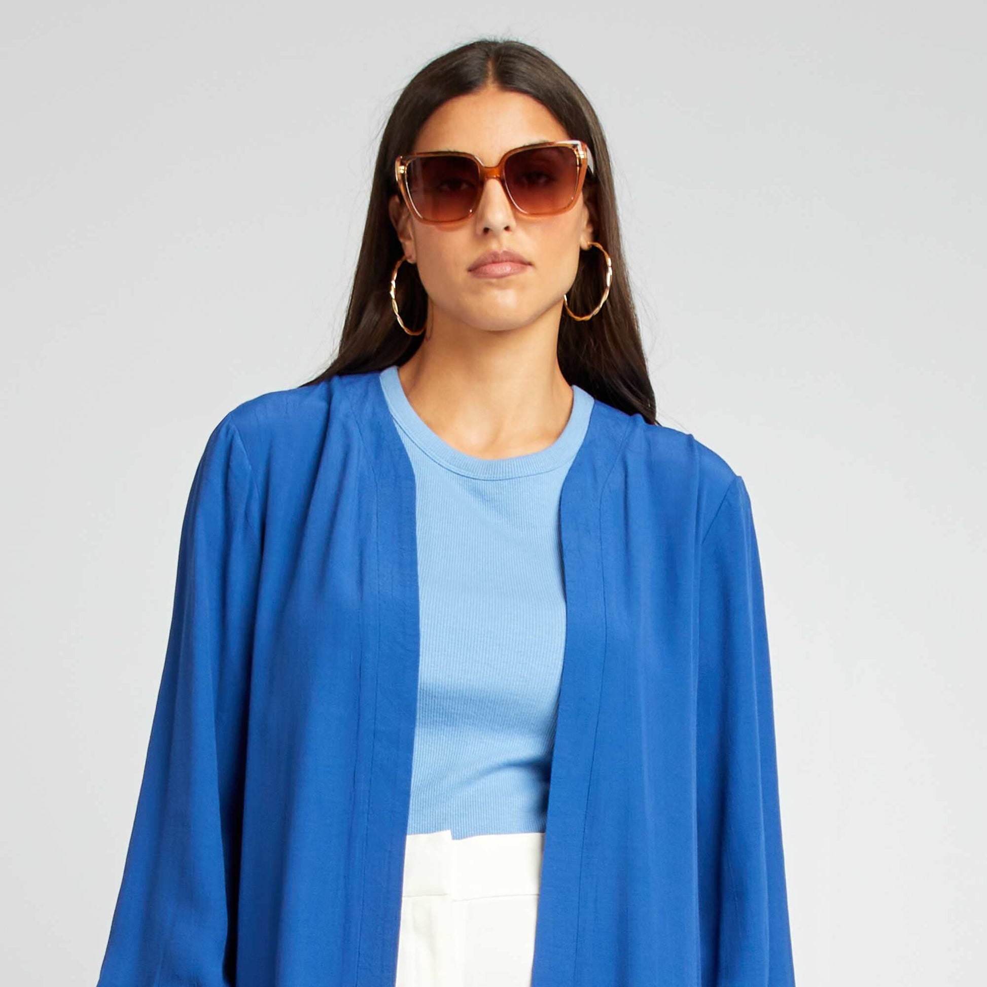 Id al pour une journ e d tente la plage ou une soir e sous les toiles, ce kimono apporte une touche d' vasion votre garde-robe estivale ! - Kimono long - Maille cr pe - Manches longues - Poignets lastiques - Mod le ouvert - Manches longues - Fendu sur les c t s - Imprim g om trique all-over - Longueur du dos : 135 cm - Notre mannequin porte une taille M et mesure 1m75