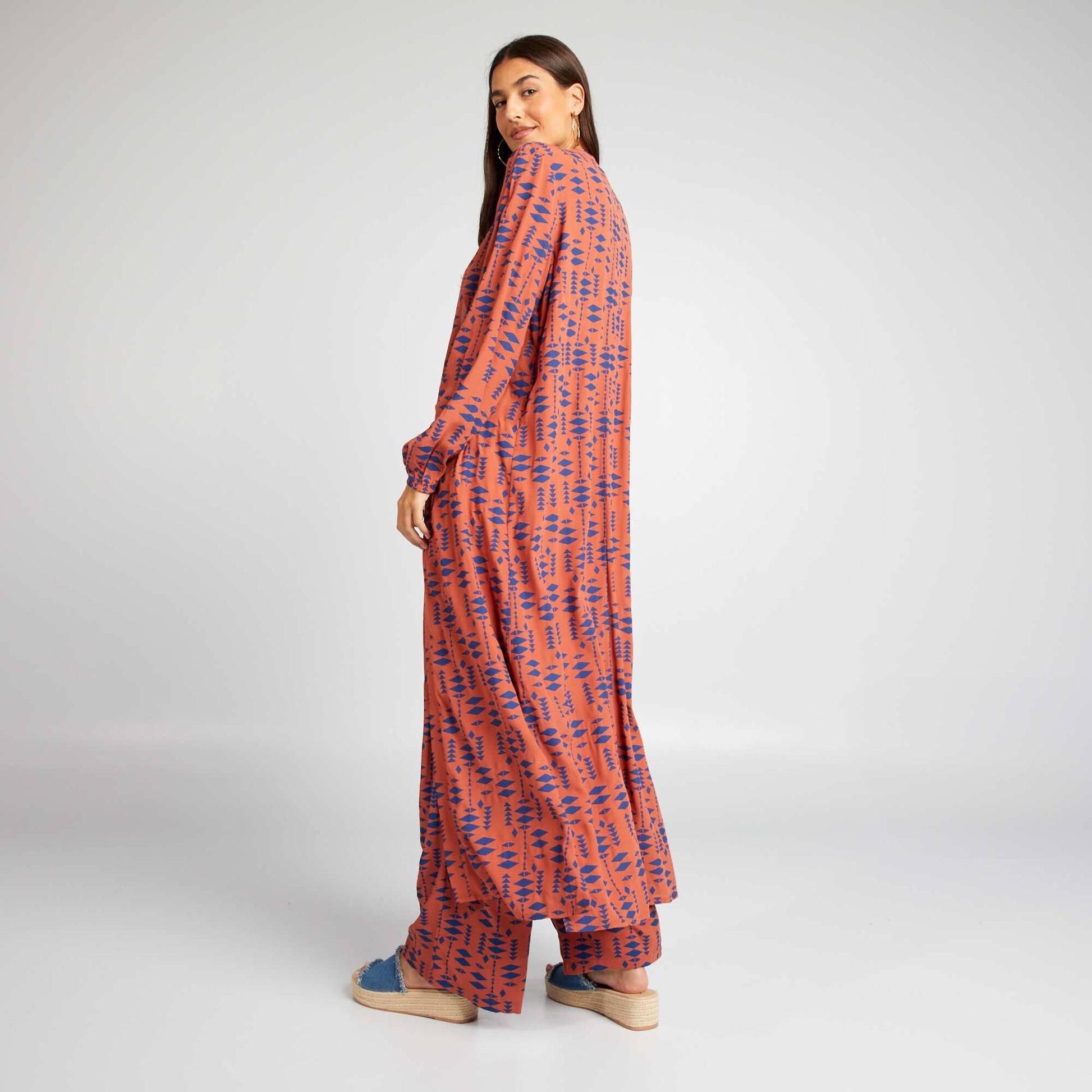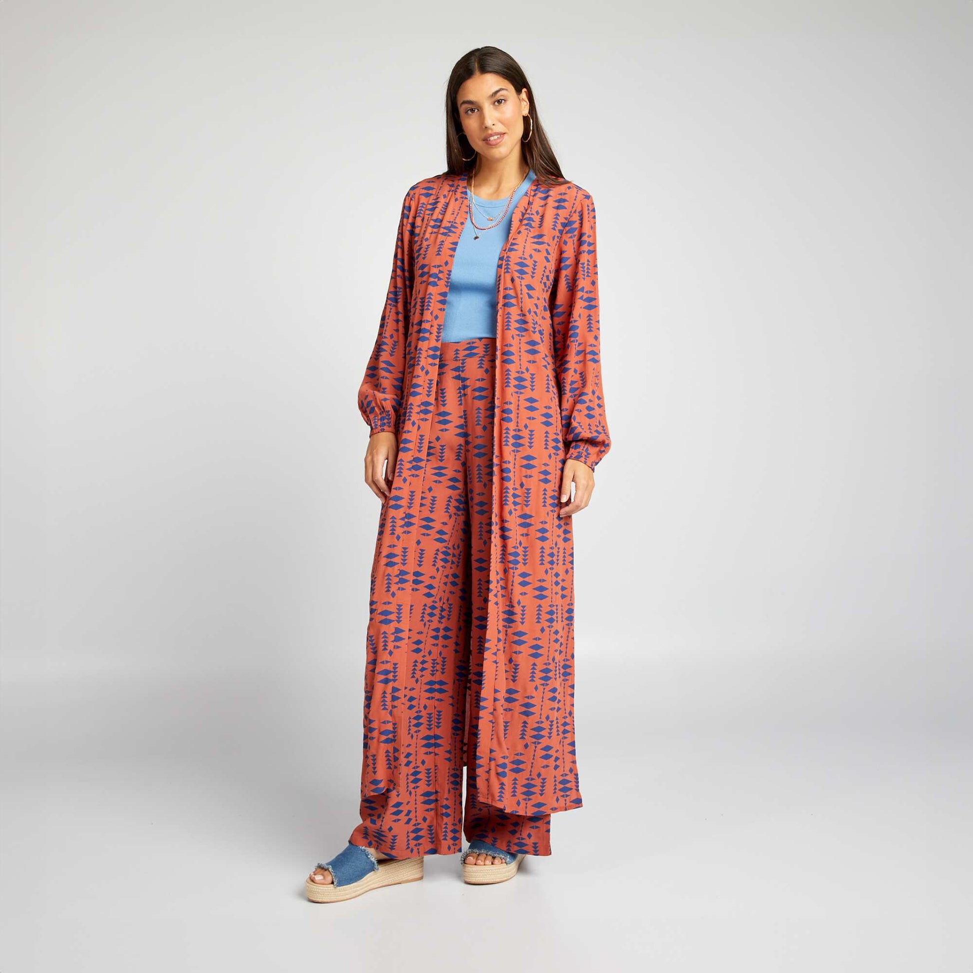 Id al pour une journ e d tente la plage ou une soir e sous les toiles, ce kimono apporte une touche d' vasion votre garde-robe estivale ! - Kimono long - Maille cr pe - Manches longues - Poignets lastiques - Mod le ouvert - Manches longues - Fendu sur les c t s - Imprim g om trique all-over - Longueur du dos : 135 cm - Notre mannequin porte une taille M et mesure 1m75
