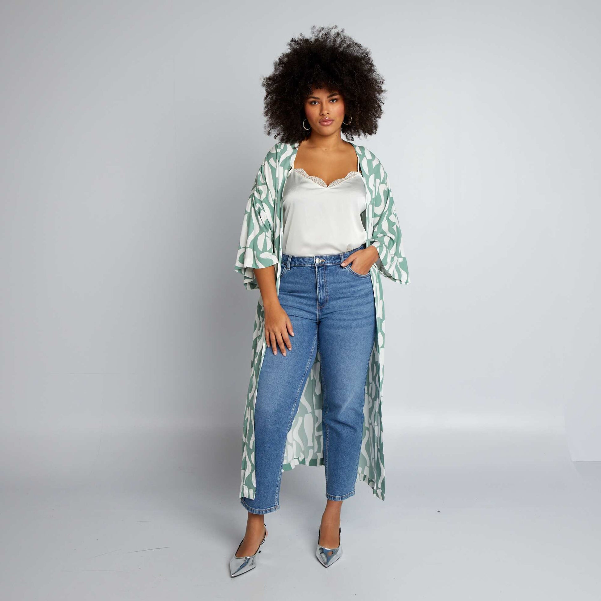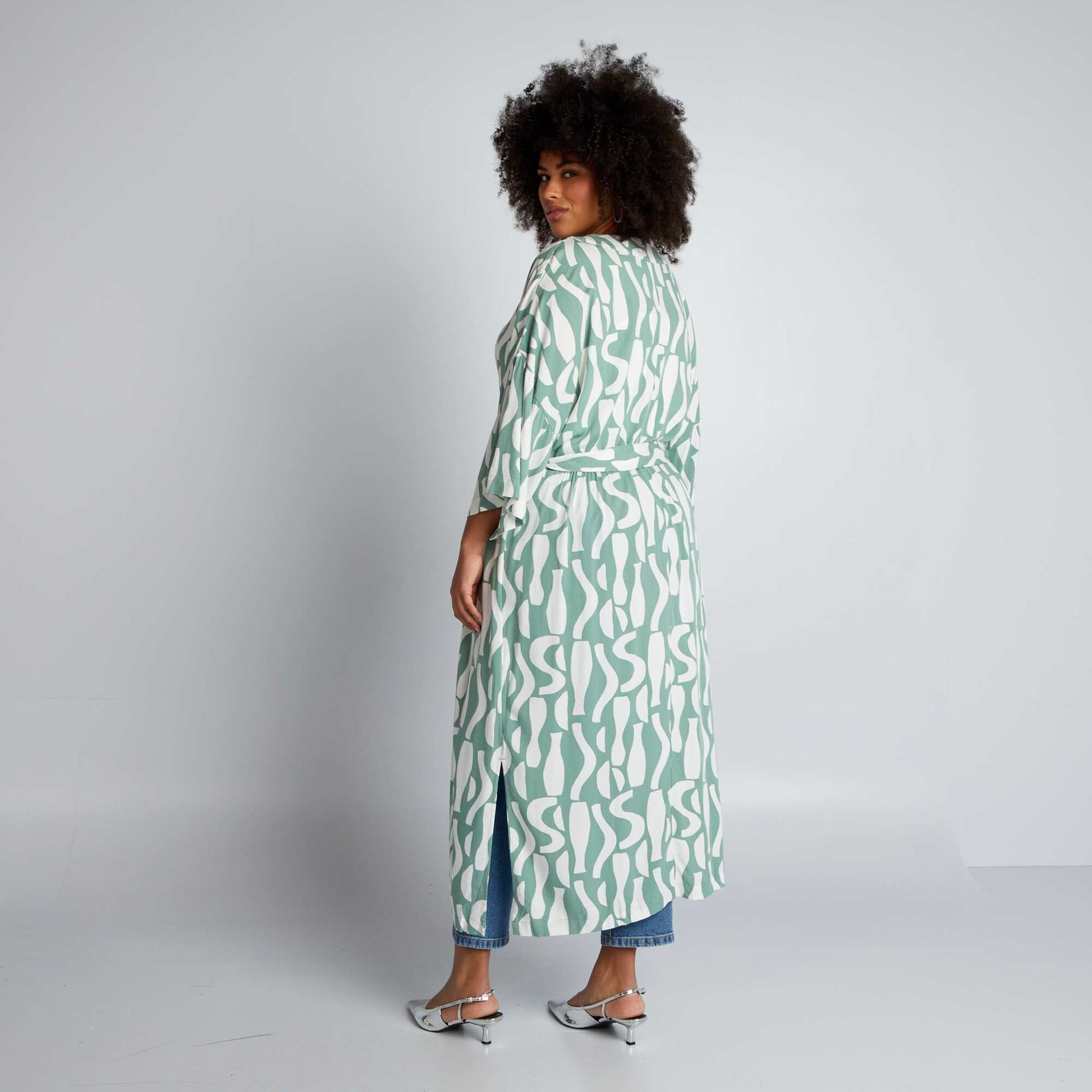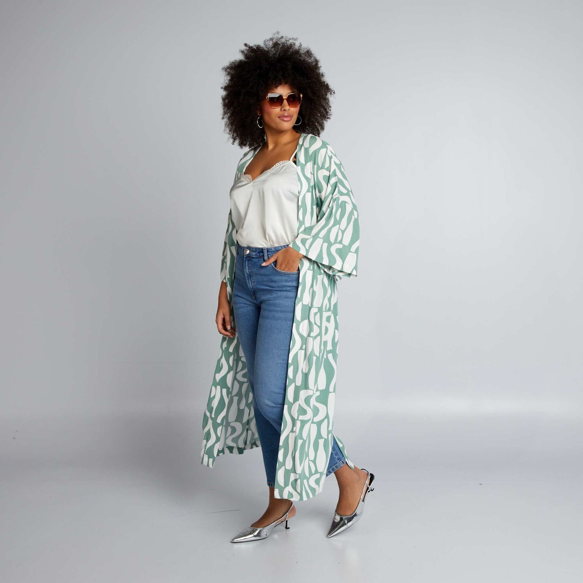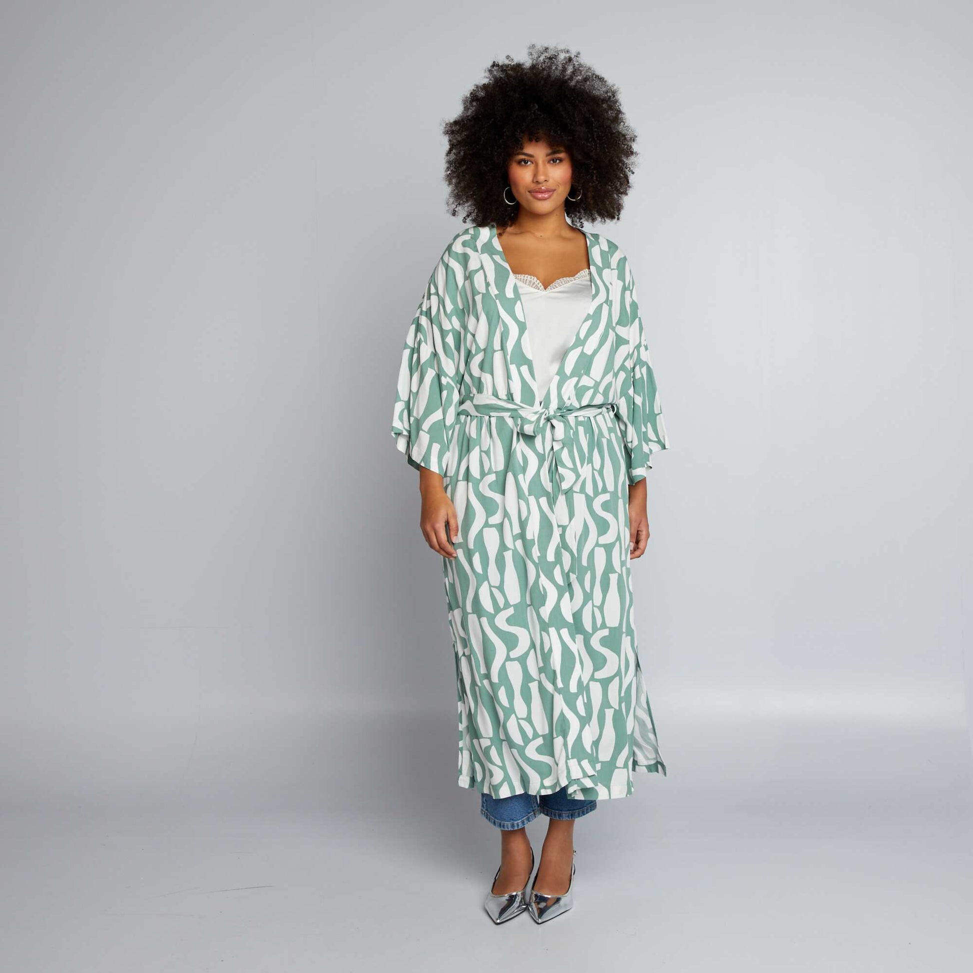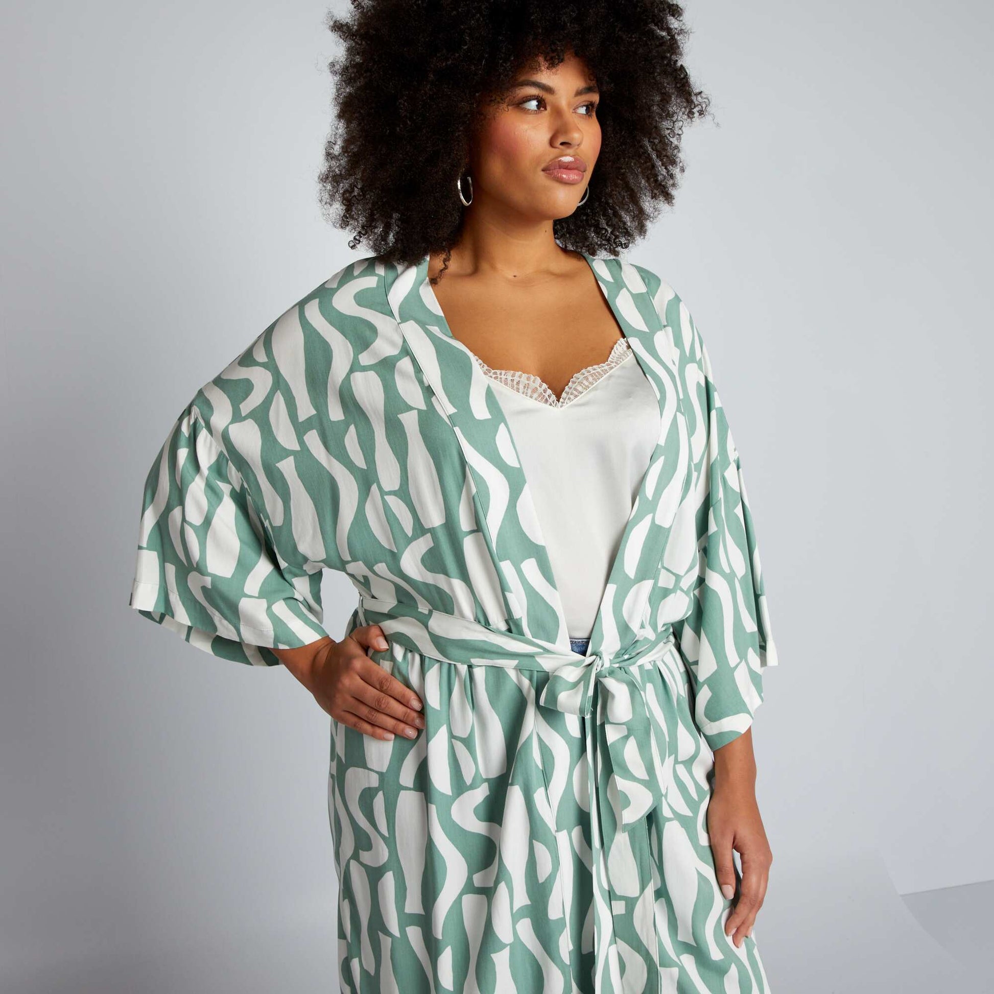 Un kimono qu'on portera pour fl ner le weekend la maison ! - Kimono long - Manches 3/4 - Ceinture nouer devant - Longueur dos : 132 cm environ - Notre mannequin porte une taille XL et mesure 1m80