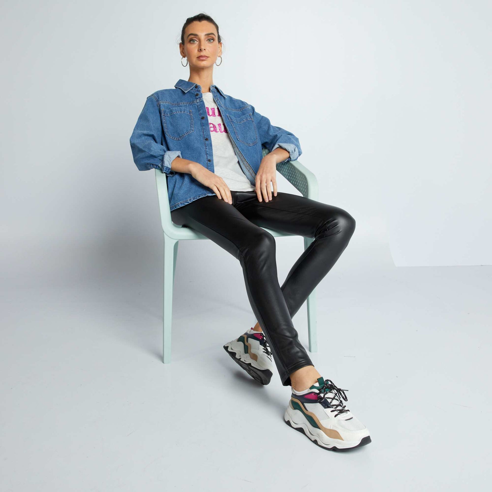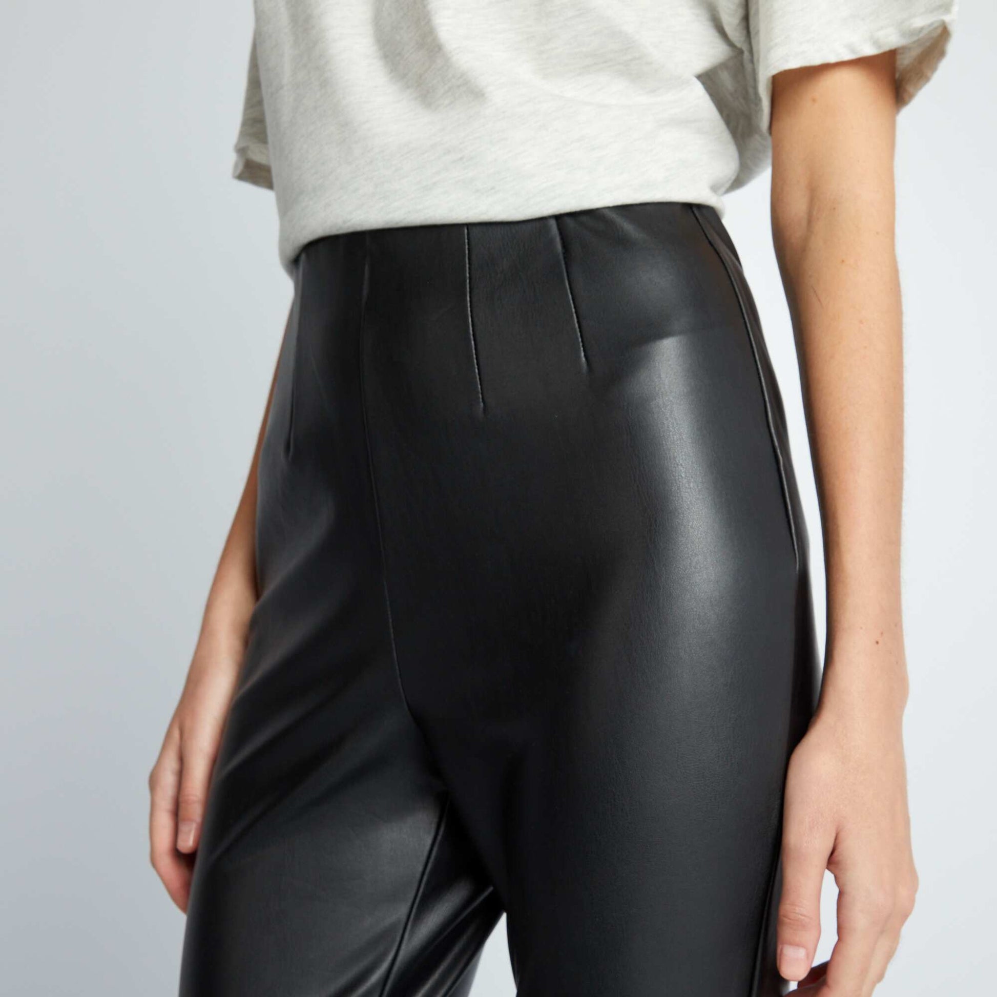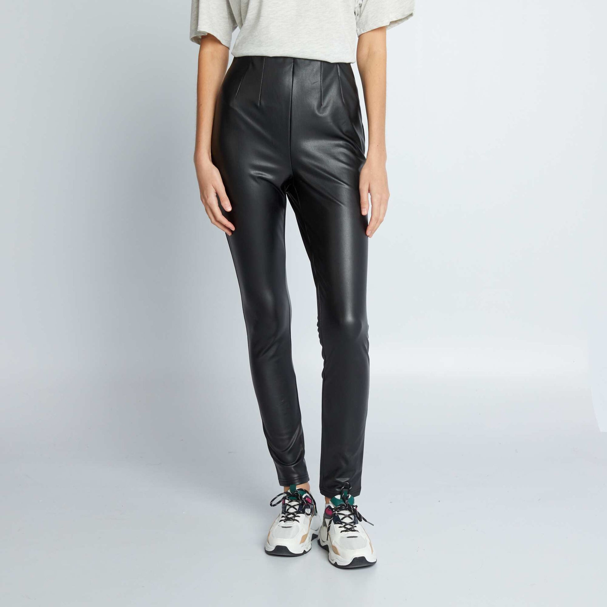 Ne manquez pas ce legging pour femme et sa coupe taille haute flatteuse ! - Legging en simili - Taille haute - Ouverture zipp e au dos - Pinces devant et au dos - Couleur unie - Longueur entrejambe : 74 cm environ - Largeur bas de jambe : 13 cm - Notre mannequin porte une taille M et mesure 1m75