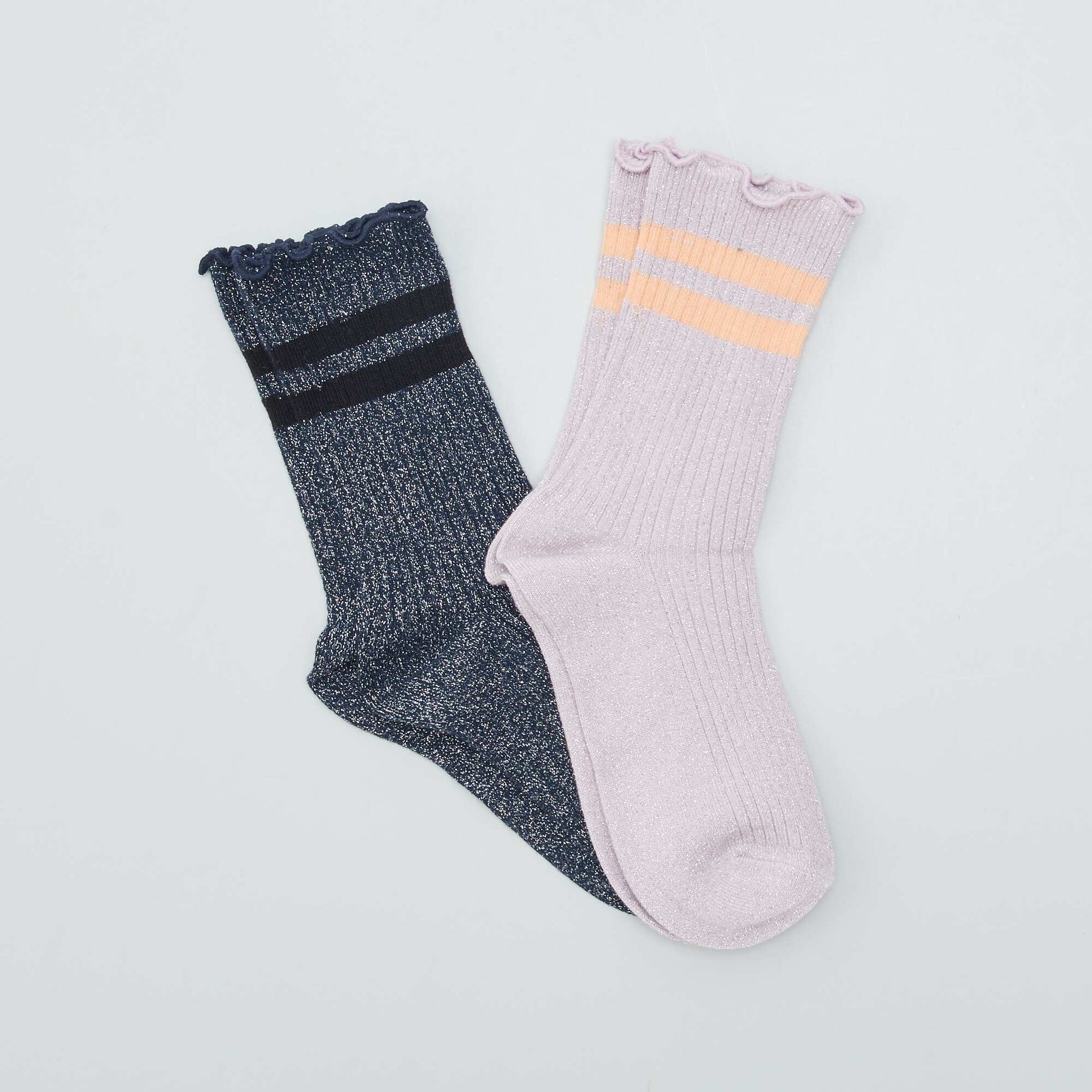 Des chaussettes qui brillent ! - Lot de 2 paires de chaussettes - Chevilles lastiqu es - Fils brillants all-over - Mati re stretch