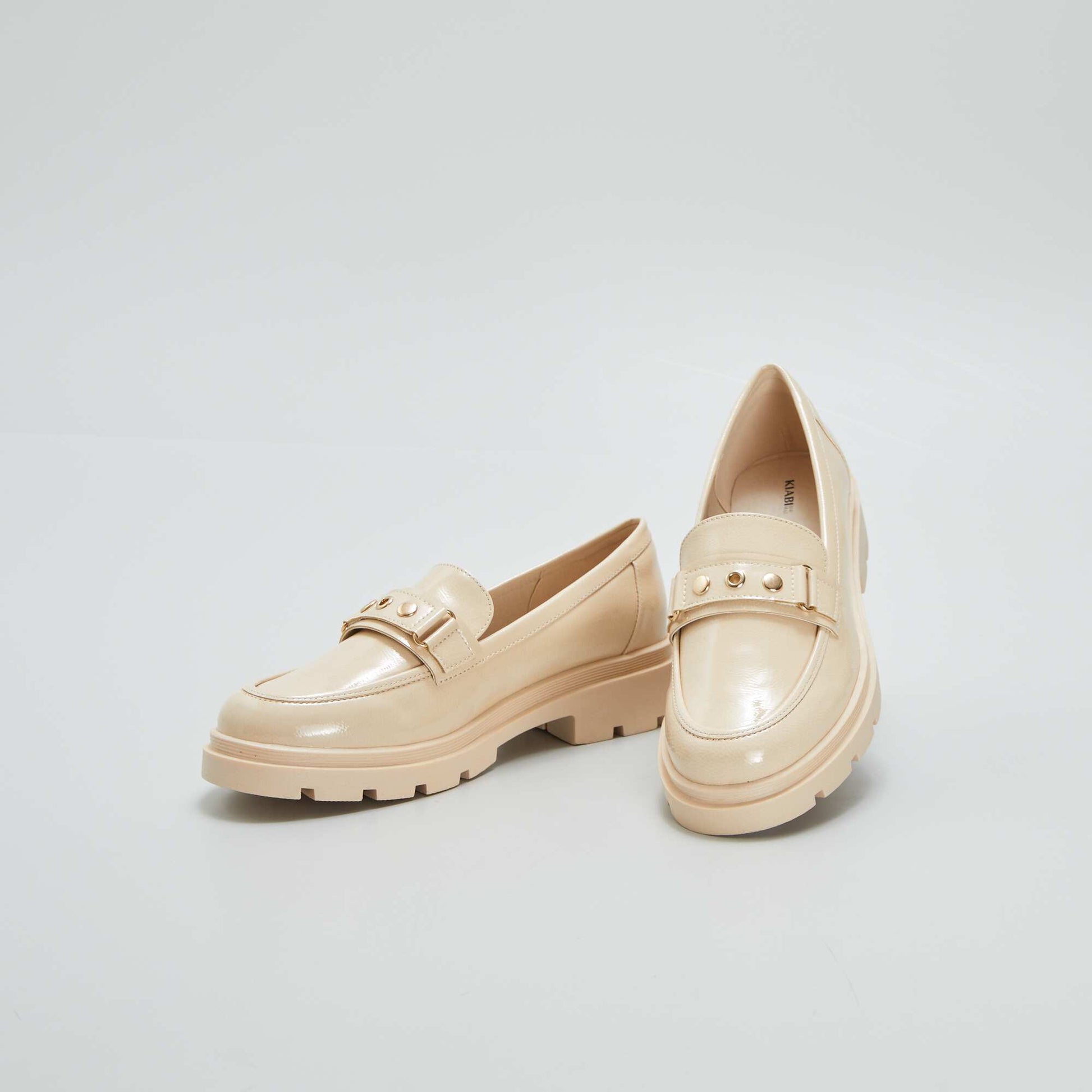 Un mod le de mocassins vraiment original ! - Mocassins en simili - Mati re vernis - Bride avec clous au-dessus - Semelle de propret en simili - Semelle d'usure paisse antid rapante - Hauteur de talon : 4,5 cm environ