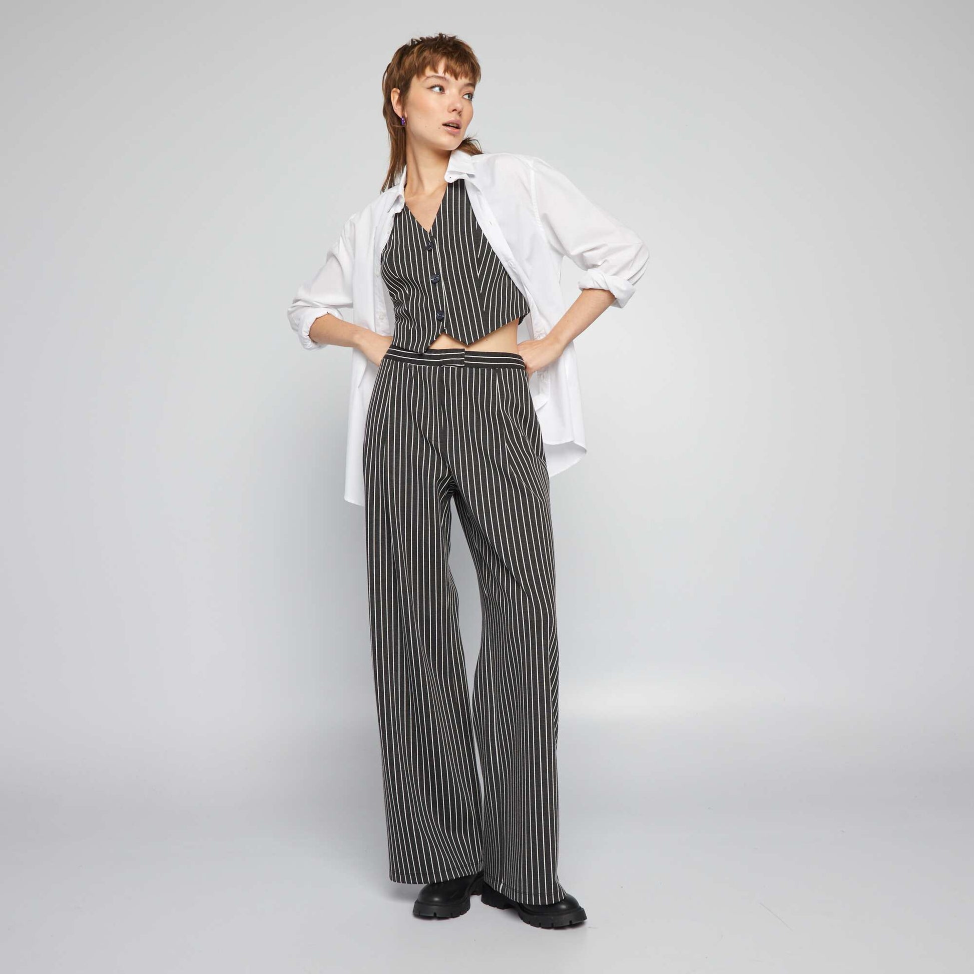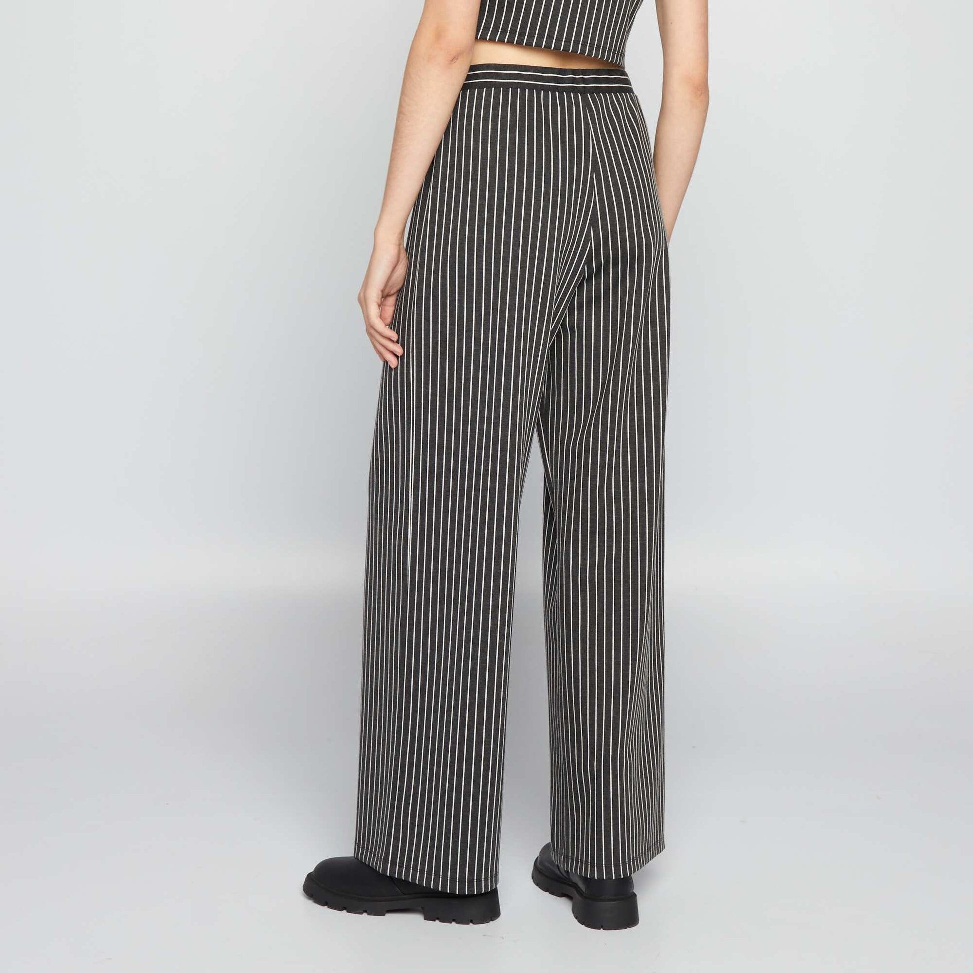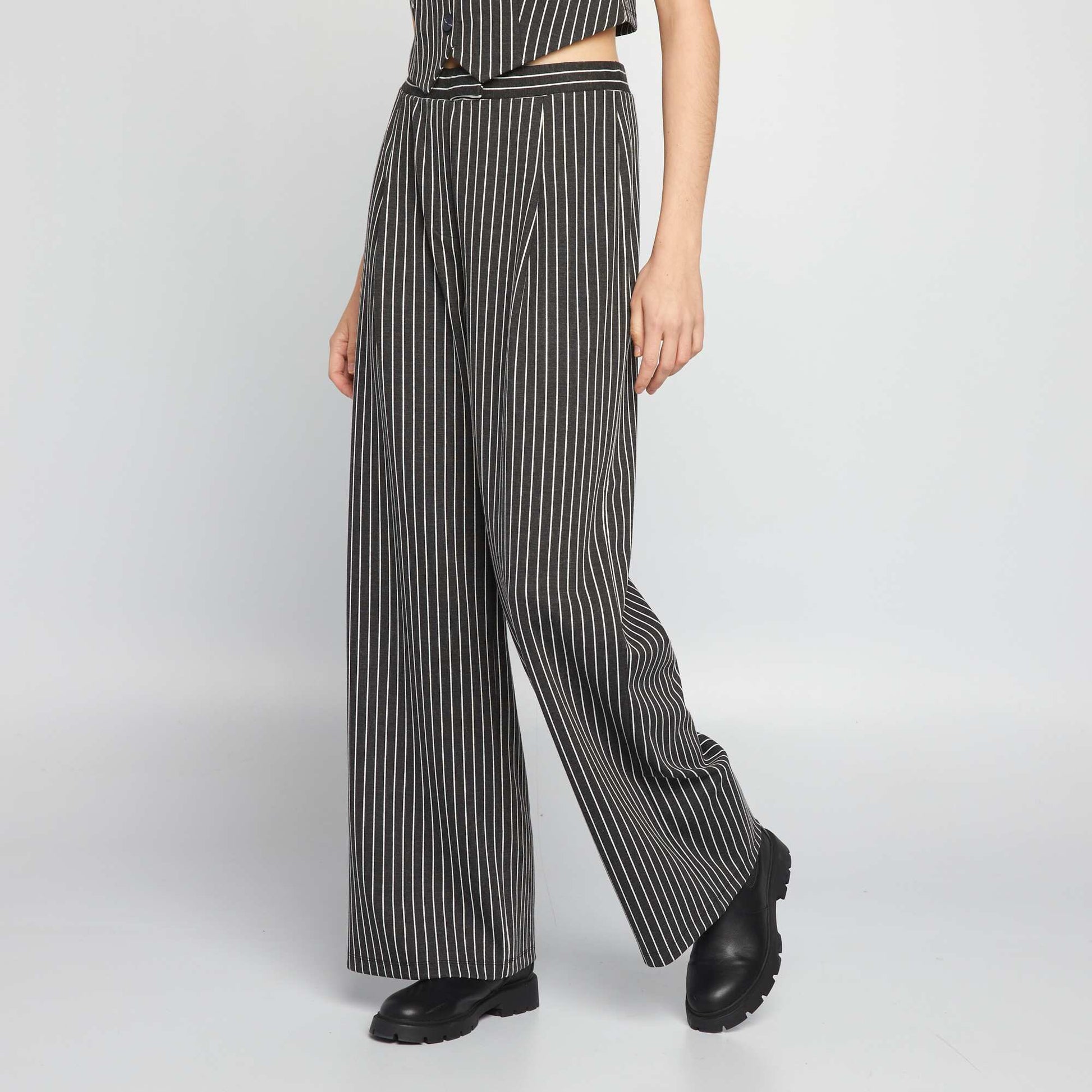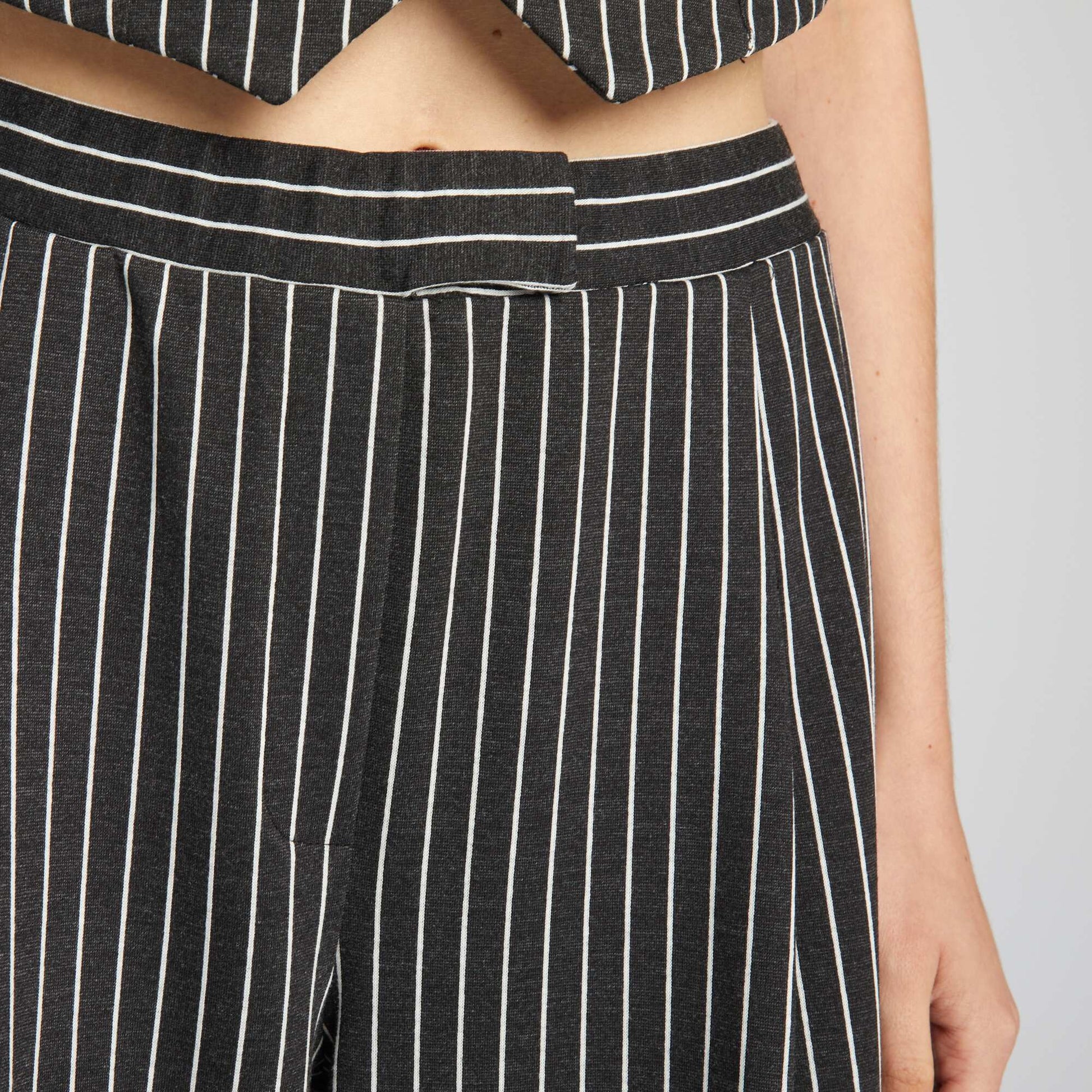 levez votre style de nouveaux sommets avec notre l gant pantalon large ray ! - Pantalon large - Ouverture par pressions et zipp e - Pinces devant - Imprim 'rayures' all-over - Couleur unie Notre mannequin porte une taille S et mesure 1m75