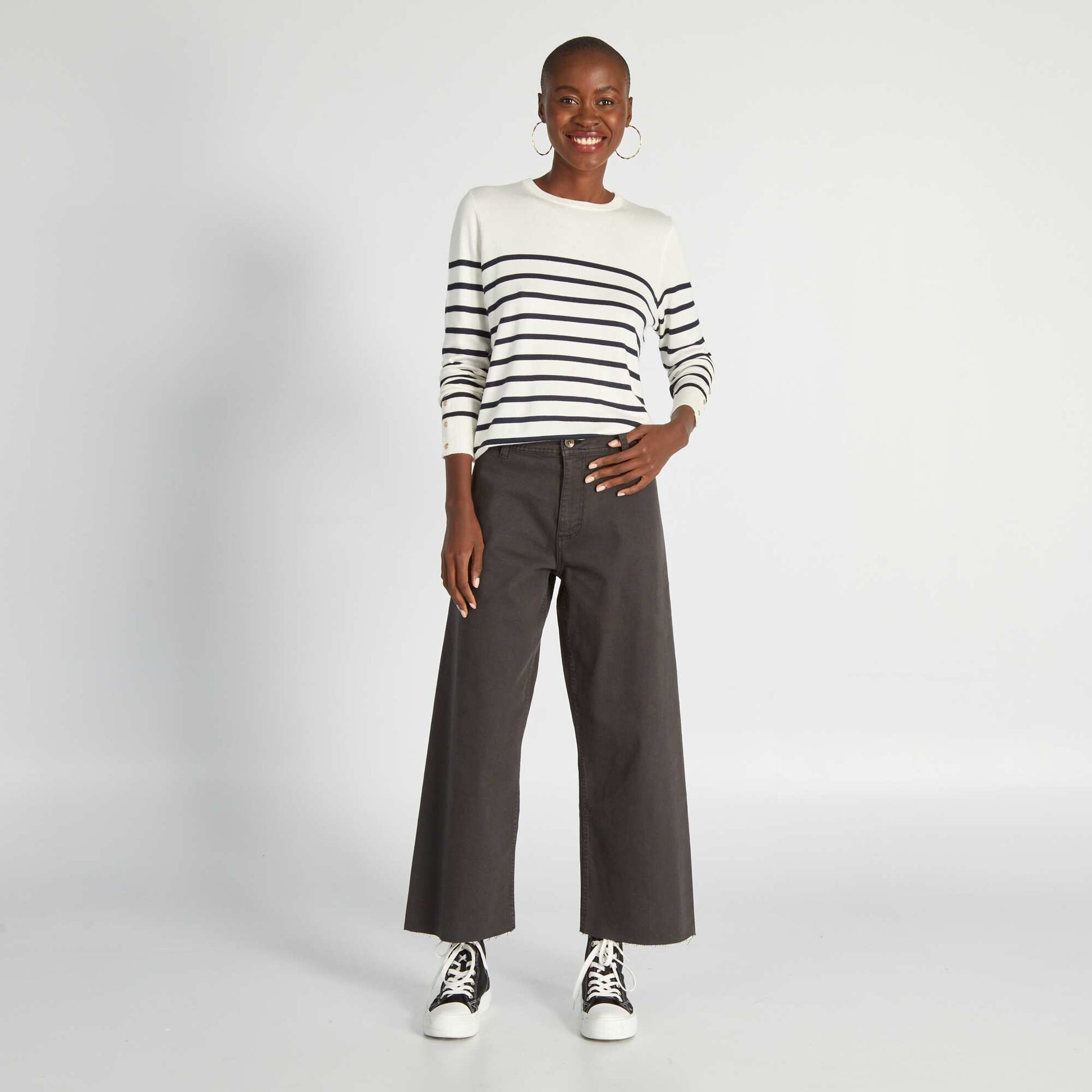 La coupe large taille haute de ce jean pour femme apporte une note d contract e votre look. - Pantalon large wide leg cropped - Coupe taille haute - Ouverture boutonn e et zipp e devant - Passants pour ceinture - 2 poches au dos - Longueur entrejambe : 67 cm environ - Largeur bas de jambe : 27 cm environ - Notre mannequin porte une taille 36 et mesure 1m78